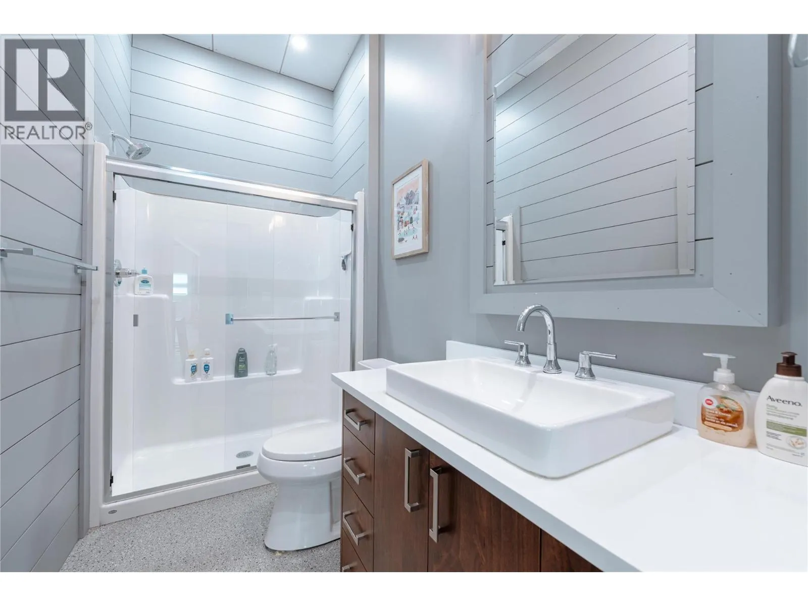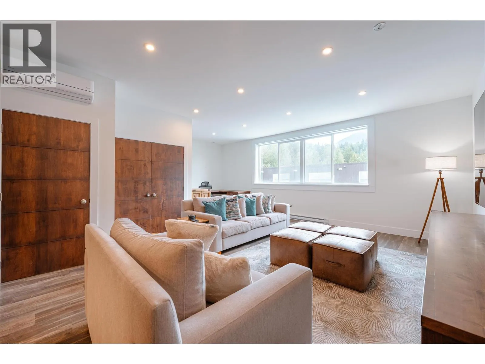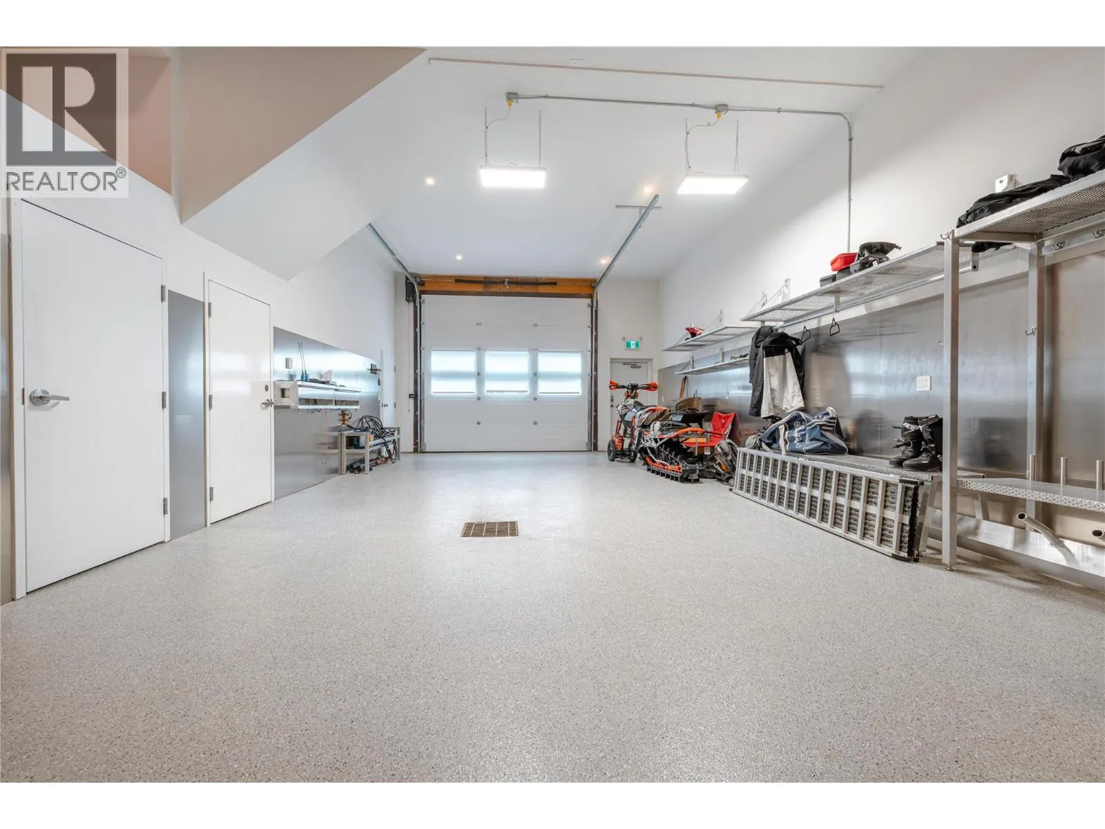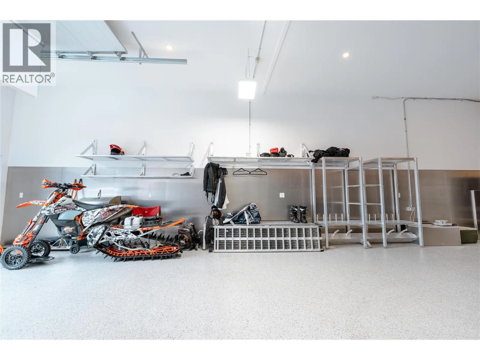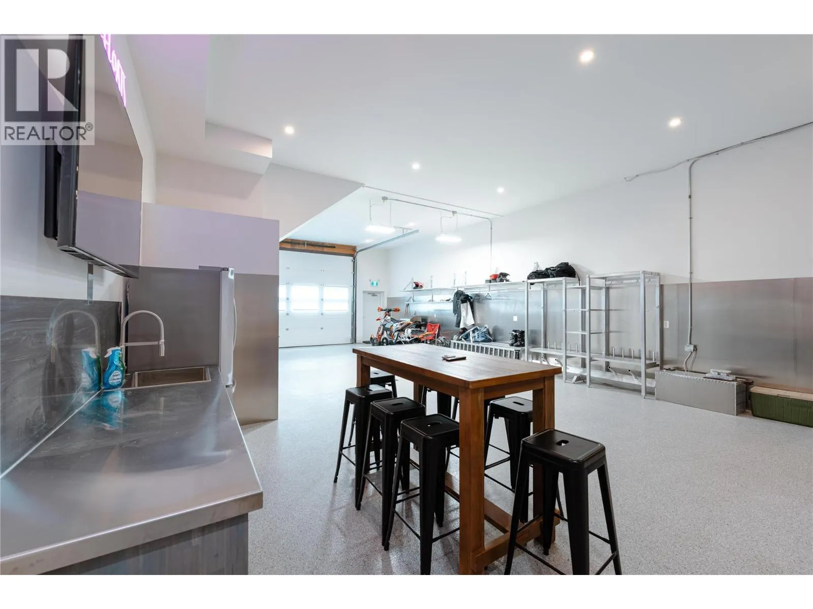 Discover a truly unique two-storey property designed with versatility, comfort, and high-end finishing throughout. The main level features an oversized high-door garage, perfect for parking vehicles, recreational equipment, or storing gear with ease. This level also offers two bedrooms, each outfitted with double bunks. Well-appointed 3-piece bathroom, half walls stainless steel, along with sink & counter, refrigerator, and enclosed stackable laundry. Thoughtful upgrades include radiant heated floors, stainless steel half walls, instant hot water, and built-in boot and glove dryers. So perfect for active lifestyles. The second floor transitions into a beautifully appointed residential space with an open-concept design. The modern kitchen, dining, and living areas are accented with barn doors, built-in cabinetry, and premium finishes throughout. Two spacious bedrooms and a full bathroom provide comfort and privacy, while five built-in appliances and elegant furnishings elevate convenience. Every detail is turnkey, with all furnishings, appliances, kitchenware, and TVs are included and ready for immediate enjoyment. Whether as a stylish family retreat, income property, or practical home base for work and play, this rare offering blends functionality with sophistication. Move in and enjoy a property tailored to modern living, adventure, and comfort. (id:27476)
