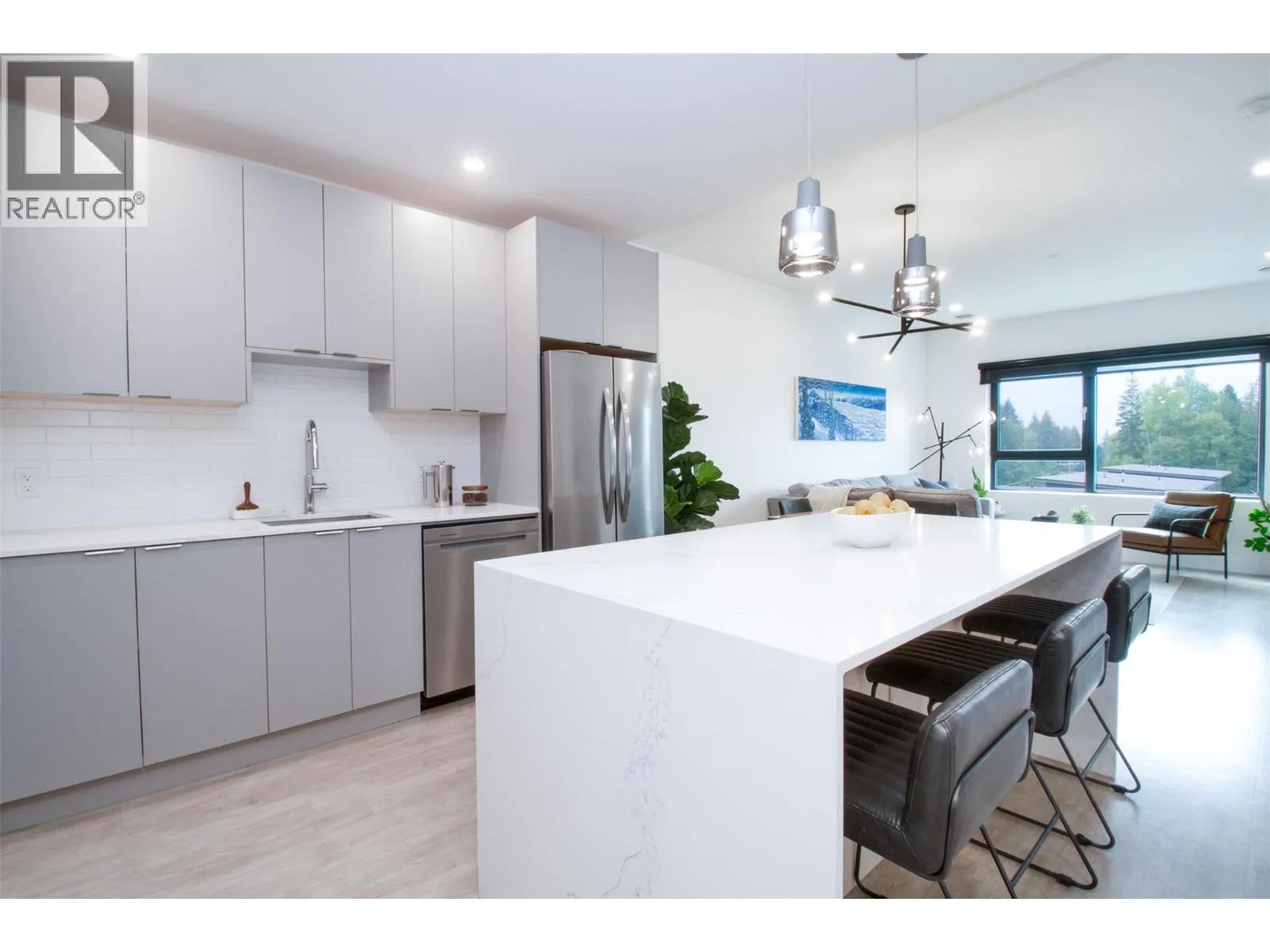 Welcome to Penthouse 4403 at Mackenzie Village - a near turnkey, luxury suite designed for both lifestyle and investment. This west-facing top-floor unit is filled with natural light and offers stunning, unobstructed views of Revelstokeâs iconic mountains and glowing sunsets. With 9â ceilings, 2 bedrooms, and 1 bathroom, the suite is finished in a modern design with details that create a sophisticated yet comfortable retreat. An ideal opportunity for investors, this suite is short-term rental zoning approved and revenue-ready. It is available fully furnished with high-end furniture and decor, premium appliances (washer, dryer, fridge, stove, dishwasher), and a private balcony with hot tub â perfect after a day of adventure. Secure underground parking, a private storage locker and dedicated bike storage for up to two bikes provides convenience and functionality. This is a hassle-free investment in a market seeing strong growth. Everything is done, and all the benefits are yours. The location is unbeatable: just minutes from Revelstoke Mountain Resort and steps from future world-class amenities, including the upcoming Cabot Golf Course, adding even more long-term value. Whether you're investing in a hands-off income generator, seeking your own alpine sanctuary, or both, this penthouse delivers unmatched lifestyle, location, and potential. BUYER INCENTIVE!!! Seller will pay $8,000 to the Buyer for closing costs upon Closing. (id:27476)