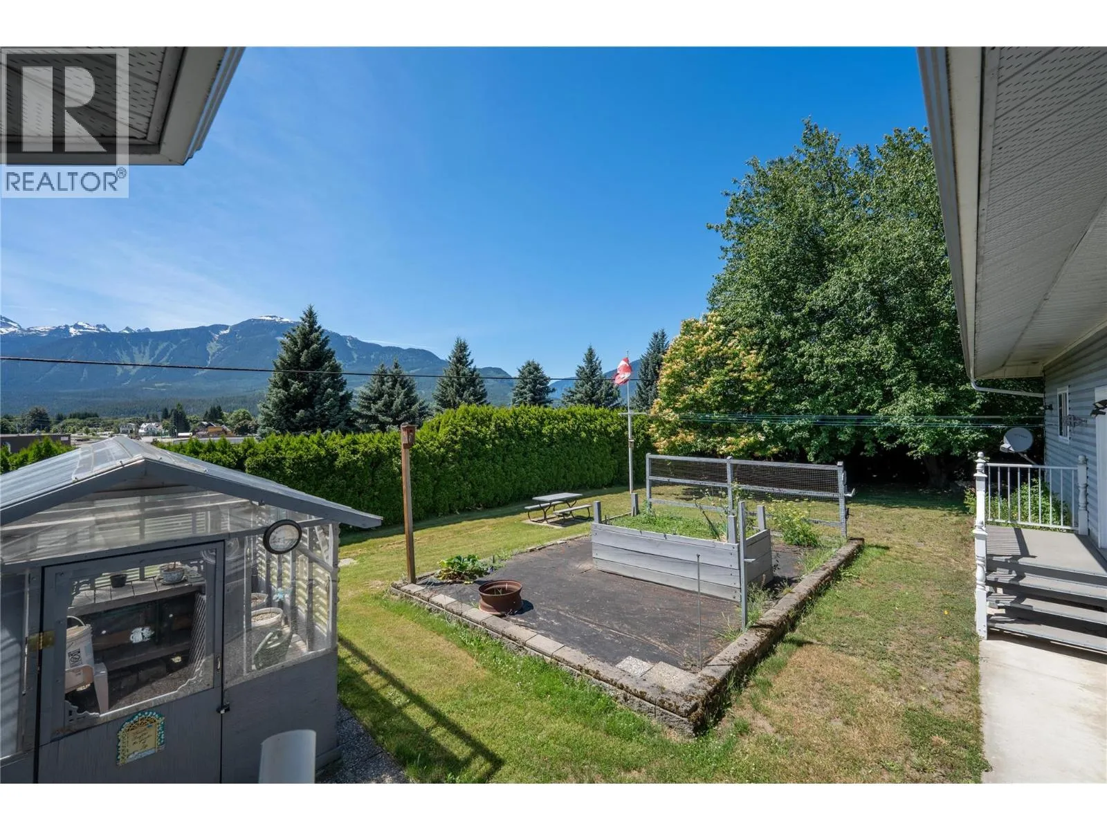 This is a rare Revelstoke offering where an impressive triple-plus garage and full workshop truly stand out. Ideal for hobbyists, tradespeople, or anyone needing substantial storage and workspace, this home delivers exceptional functionality on a private .36-acre lot in the heart of town. This spacious ranch-style home with a full walk-up/out basement has been meticulously maintained. The 4-bedroom, 3-bath layout features bright, open living areas enhanced by skylights and numerous thoughtful upgrades. Step onto the semi-covered deck and enjoy year-round outdoor living with sweeping mountain views. The garage and workshop are the star feature: expansive parking, generous workspace, and excellent storage options that are directly connected to the lower level and main level for seamless access. The walk-out basement expands the homeâs versatility, offering a large living area with a second fridge, sink, countertop, and cabinetry with an ideal foundation for a summer kitchen or potential secondary suite. The yard is well laid out with mature hedging, a neatly bordered garden area, a garden shed, and inviting outdoor spaces that maximize the usable lot. Just a short stroll from downtown Revelstoke, youâll enjoy convenient access to restaurants, pubs, shopping, and local amenities. With functionality, location, and an outstanding garage/workshop setup, this property offers a combination rarely found within city limits. (id:27476)