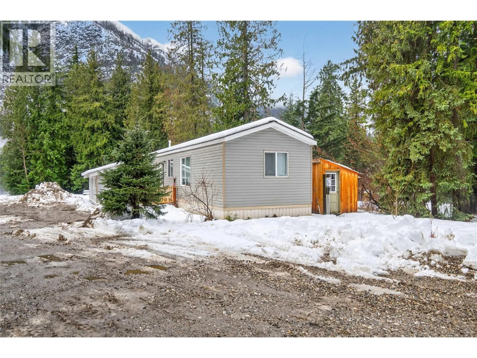 Vacant and available for quick possession, this large private acreage of 2.54 buildable acres is nestled in a mountain valley at the end of a quiet road & cul-de-sac just 2 minutes outside Revelstoke city limits. Offering exceptional privacy & breathtaking views, the level land, permissive Small Holdings zoning & 2 connecting driveways combine to provide access and flexibility by supporting multiple dwellings, diverse future development options, or expanded accessory uses like building your dream shop and a home to match. The property includes a move-in ready mobile home w/ an addition, offering immediate accommodation while you plan further improvements on three potential building sites. Recent upgrades include a new John Wood hot water tank (2025), a new front deck, removal of old outbuildings, added gravel and rock fill, graded & improved driveways, selective tree clearing, & the creation of gravel sites for parking all your toys. 30 amp service is available at the private well house for plugging in your RV or toy haulers. The property's zoning & layout create outstanding flexibility for lifestyle buyers, investors, or those looking to expand into income-producing opportunities. Located outside city limits, at the bottom of sledder's paradise Boulder Mountain, the property benefits from lower taxes while remaining within easy reach of Revelstoke amenities. This is a rare opportunity to secure a versatile acreage with meaningful improvements already completed. (id:27476)