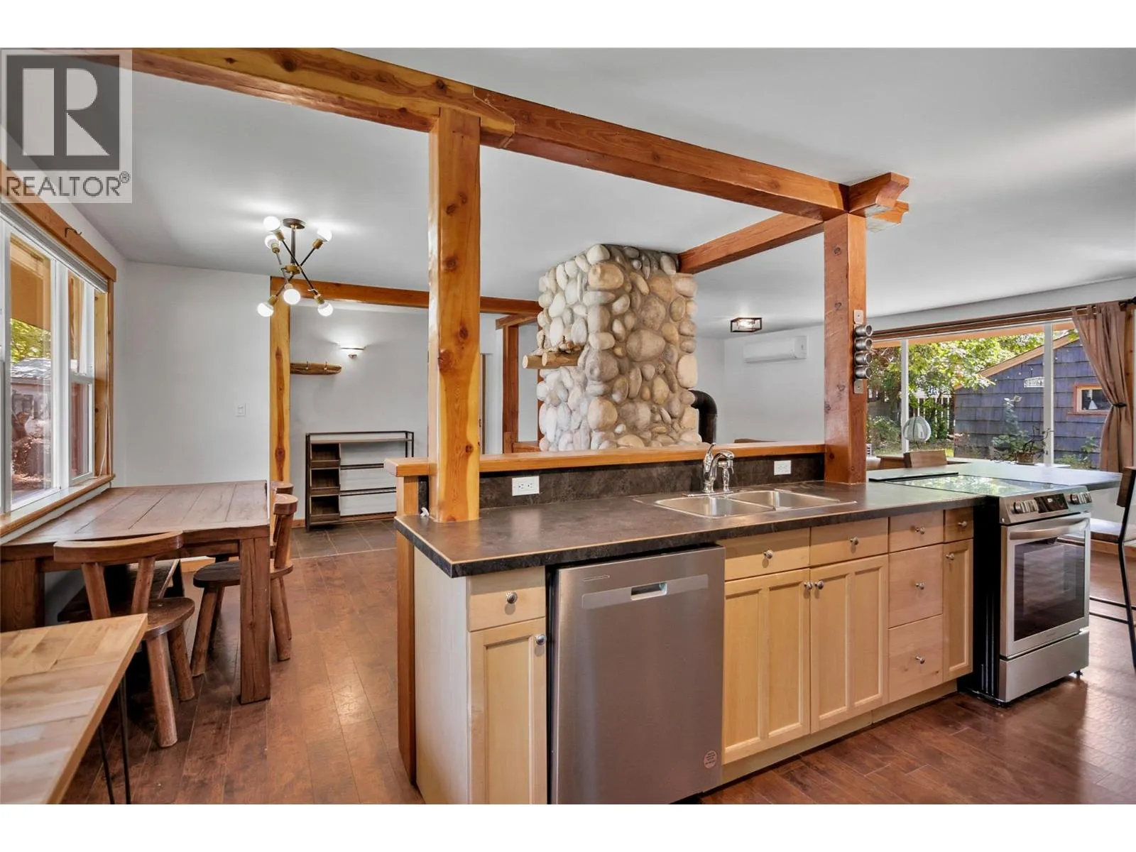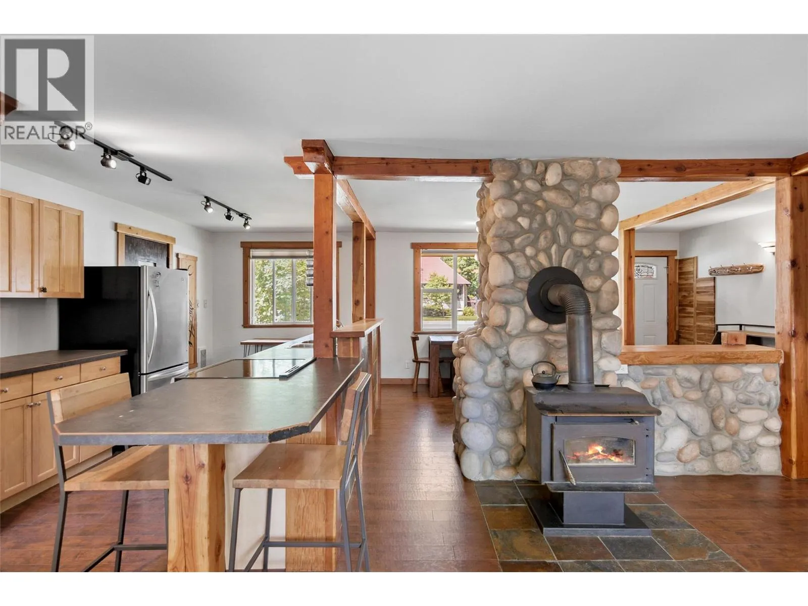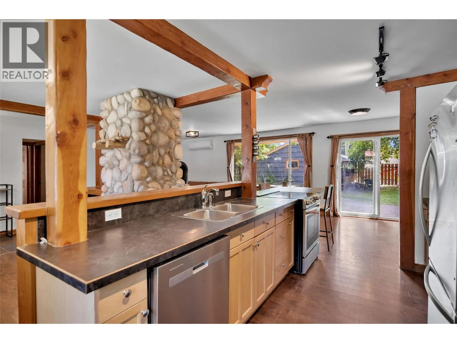 This charming grade-entry bungalow offers single-level living on Revelstokeâs most iconic street. Set on three separately titled lots with 62.5 feetof frontage, itâs a rare find with generous outdoor space and future development potential â all just two blocks from downtown and Revelstoke'slauded shopping, dining and entertainment core. At just under 1,200 sq ft, this 2-bedroom, 1-bathroom home features a bright, functionallayout and numerous recent upgrades, including a new roof (2022), mini-split heat pump (2020), water heater (2021), and fresh interior paint(2025). The open-concept kitchen and living area is ideal for entertaining, anchored by a large stone hearth that serves as the heart of thehome. Beautiful custom fir accents throughout add natural warmth and timeless mountain style. Step outside to a quiet walk-out patio andprivate backyard. With views of Mount Mackenzie and Mount Macpherson, the space is perfect for relaxing or hosting. Whether you're looking fora move-in-ready home, a vacation retreat, or a prime investment, this Mackenzie Avenue gem offers location, character, and long-term value (id:27476)