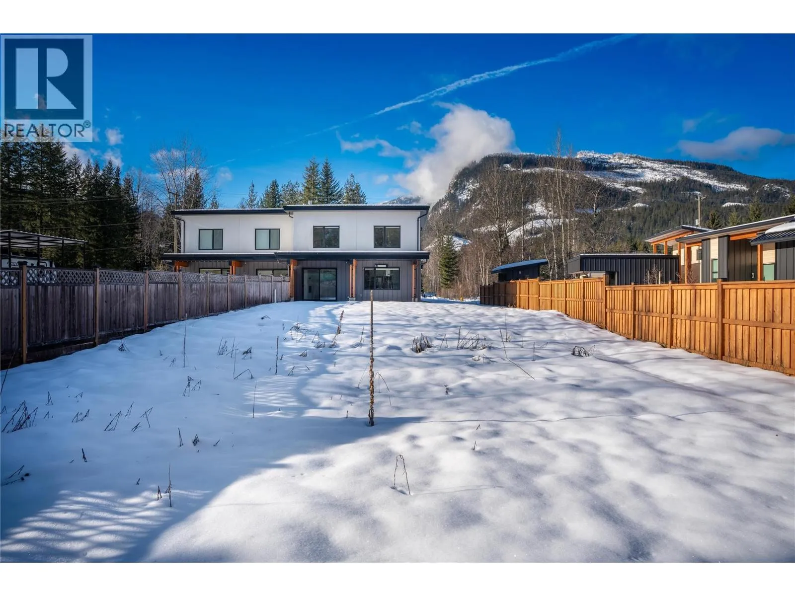 Mountain modern duplex in Revelstoke's desirable Big Eddy area. This bright, open-concept home features oversized windows, a spacious kitchen with a large island and built-in appliances, and a seamless flow from the dining room to the living room, with a covered deck leading to the backyard. Upstairs offers 3 bedrooms, 2 baths, a laundry room, and a primary suite with a private deck and serene mountain views. Set on an expansive lot, ideal for enjoying the outdoor lifestyle that Revelstoke is known for. (id:27476)