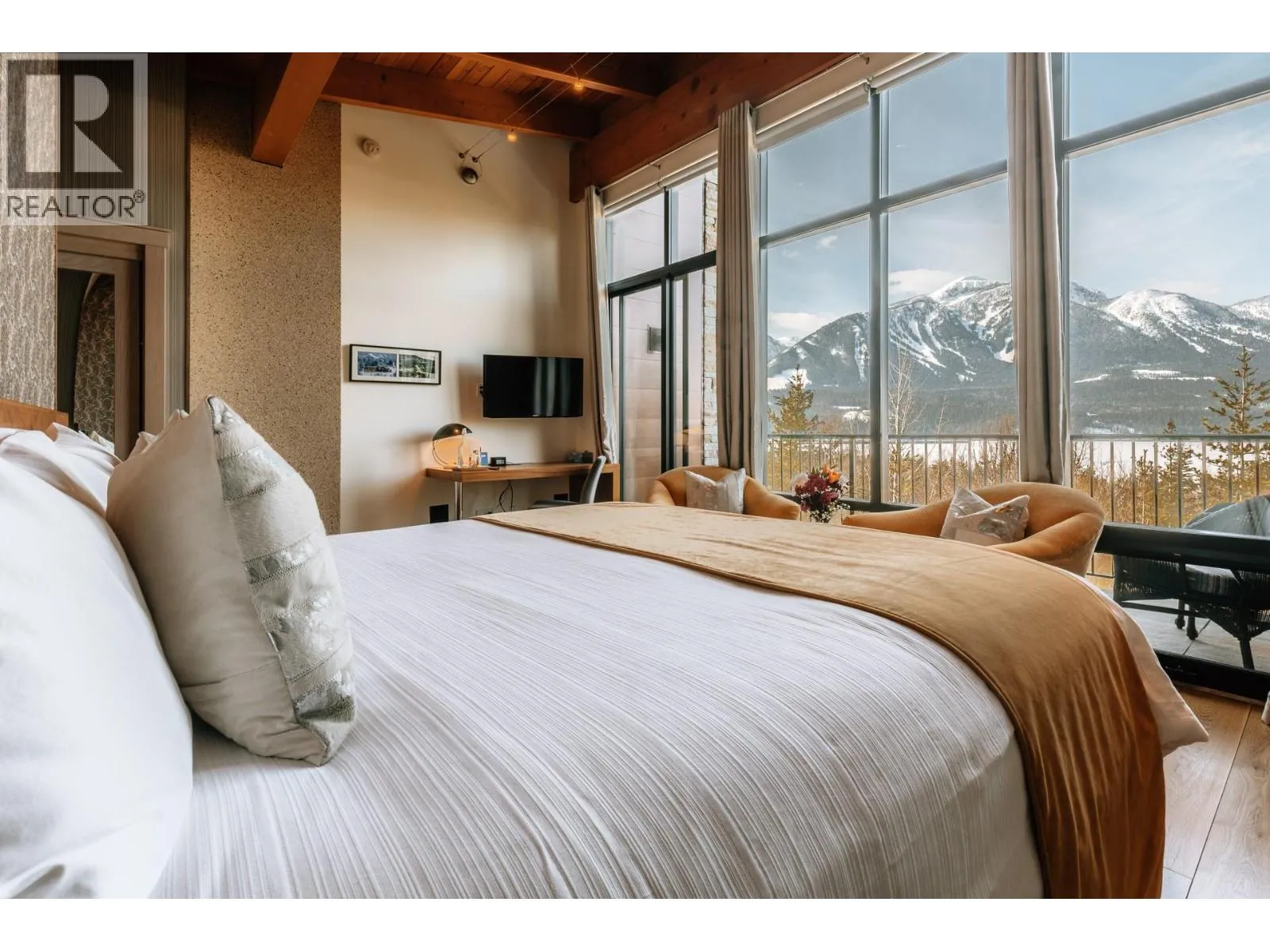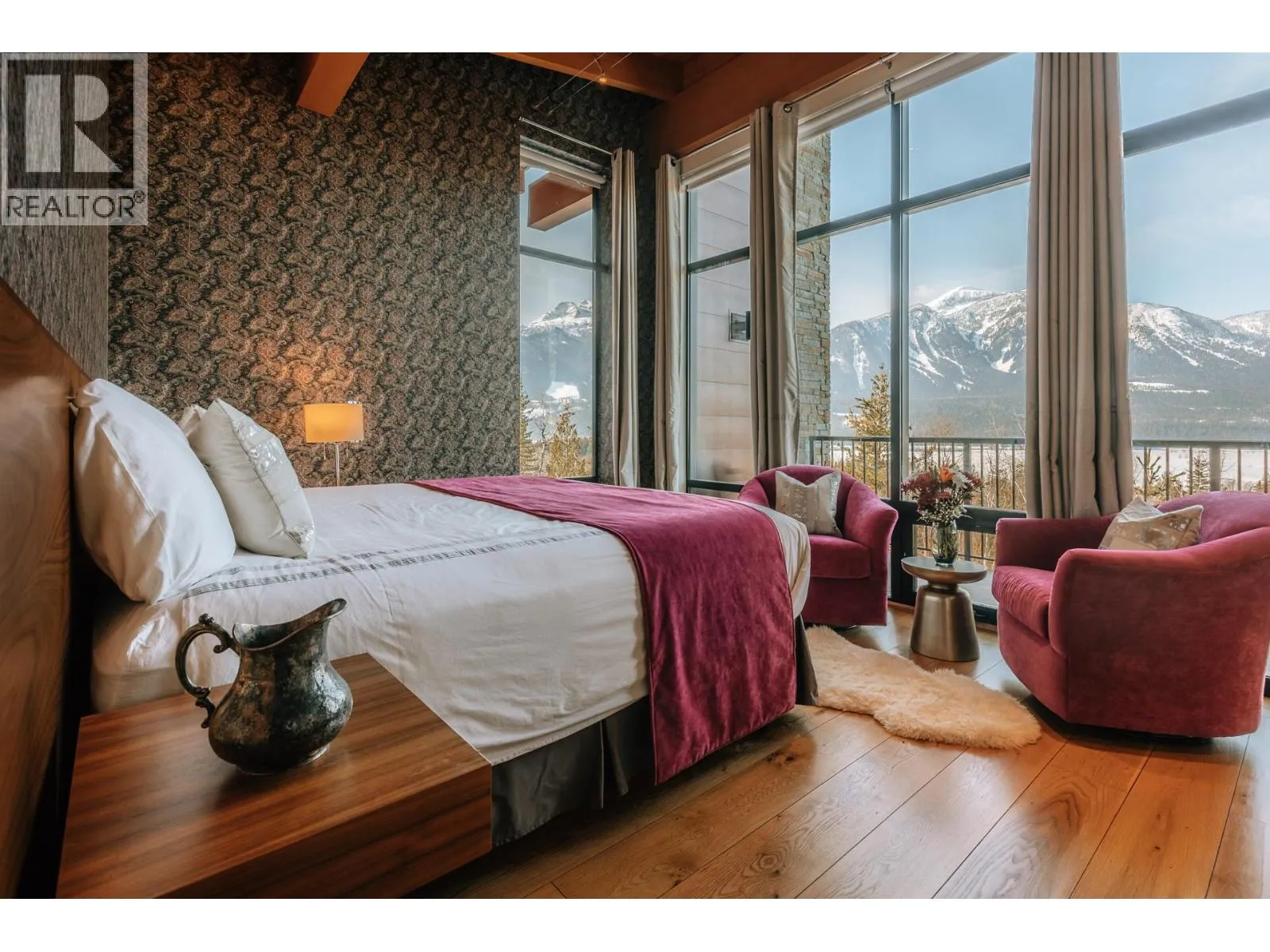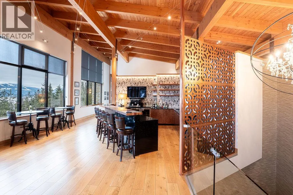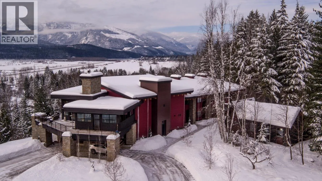 Voted Canada's Best Ski Chalet 2020 through 2023, Five Peaks Lodge offers unparalleled privacy and jaw-dropping views of the Columbia Valley and Monashee Mountains from every room. Tucked away on 4.5 acres below Revelstoke Mountain Resort and just a stone's throw to the soon-to-be completed Cabot Golf Course, this one-of-a-kind property blends contemporary architecture and curated interiors creating one of British Columbia's premier estates. Custom-built in 2014 and completed in 2015, the homeâs North Wing features five luxurious master suites, each with their own ensuite and private balcony overlooking the iconic Mount Begbie. The South Wing boasts a spacious, open-concept living area that seamlessly extends to an expansive upper deck, perfect for entertaining or quiet reflection. Adjacent to the main residence, the original A-frame building has been artfully transformed into a wellness retreat. This tranquil facility includes two massage treatment rooms, a gym, a sauna, a bathroom and laundry amenities. The propertyâs natural beauty is further enhanced by a mature forest and a peaceful creek that winds along the perimeter. C3 zoning allows one to continue operating the highly acclaimed Five Peaks Chalet, or create your own exclusive mountain retreat. A manager's office and staff bedroom suite allow for 24 hour oversight of this spectacular property. This rare offering represents a unique opportunity to invest in one of North Americaâs premiere resort destinations. (id:27476)
