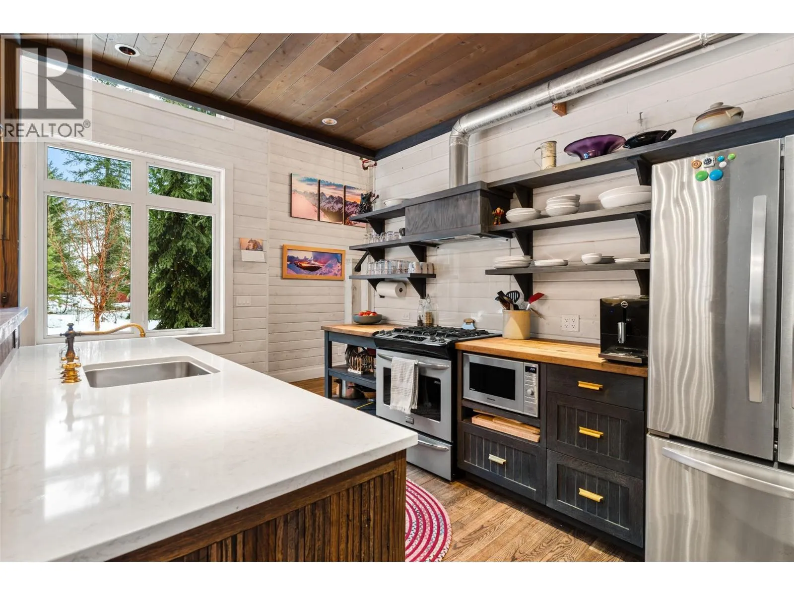 This home is of a calibre rarely seen in Revelstoke. Offering up a rustic/modern architectural aesthetic, this home sits on a 1/3 of an acre and has 3 separate residences with a total of 3462 square feet of living space - all with licensed income potential. Open floor plan with vaulted and wood panelled ceilings, whitewashed wood panelled walls, dark reclaimed oak floors & salvaged doors/hardware throughout. A full gourmet kitchen with marble counters, Kenmore appliances, including a gas cook-top/electric oven, eating bar, and pantry flow seamlessly into the dining & living area. A sweeping wall of windows overlooks the landscaped yard. 2 large master suites & a sleeping/lounging loft with adjoining bathrooms, each with stone counters, dual sinks and big showers, 1 with a gorgeous claw-foot tub. The upstairs suite is 672 sq/ft & has 1 bed, sleeping loft, 1 bath/shower, pantry/full laundry. A large patio with mountain views adjoins the living area. The separate studio has 500 sf & is a flexible space. Living area is open w/ private patio, 1 bed & 1 full bath/shower. Other perks of this property are a high-end Jacuzzi brand hot tub in a covered area adjoining a larger covered patio with a gas fire pit & an in-line gas 3 burner BBQ. Dedicated gear room with ample storage & boot dryers for 8. The 2-car garage has custom racks for everyoneâs gear, and a pro tuning bench. Homes like this are a rarity in Revelstoke and this is a must see. (id:27476)