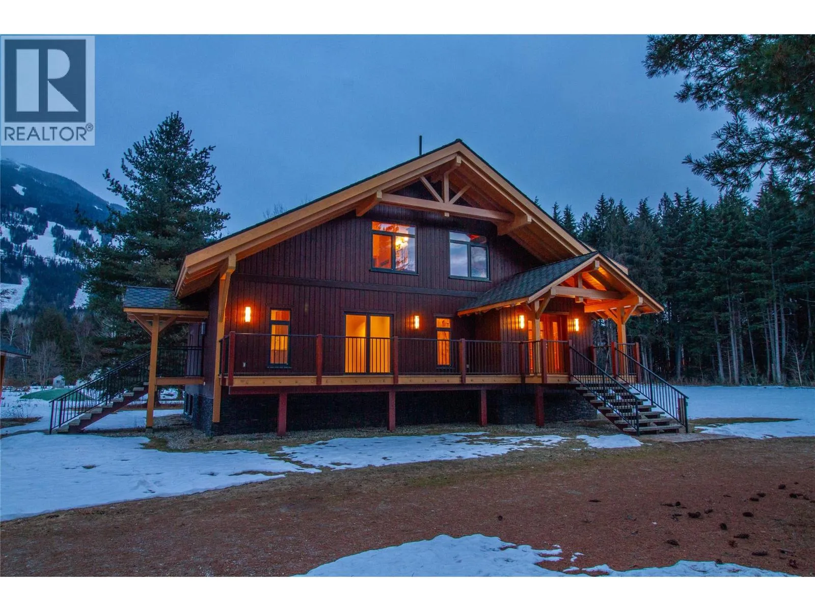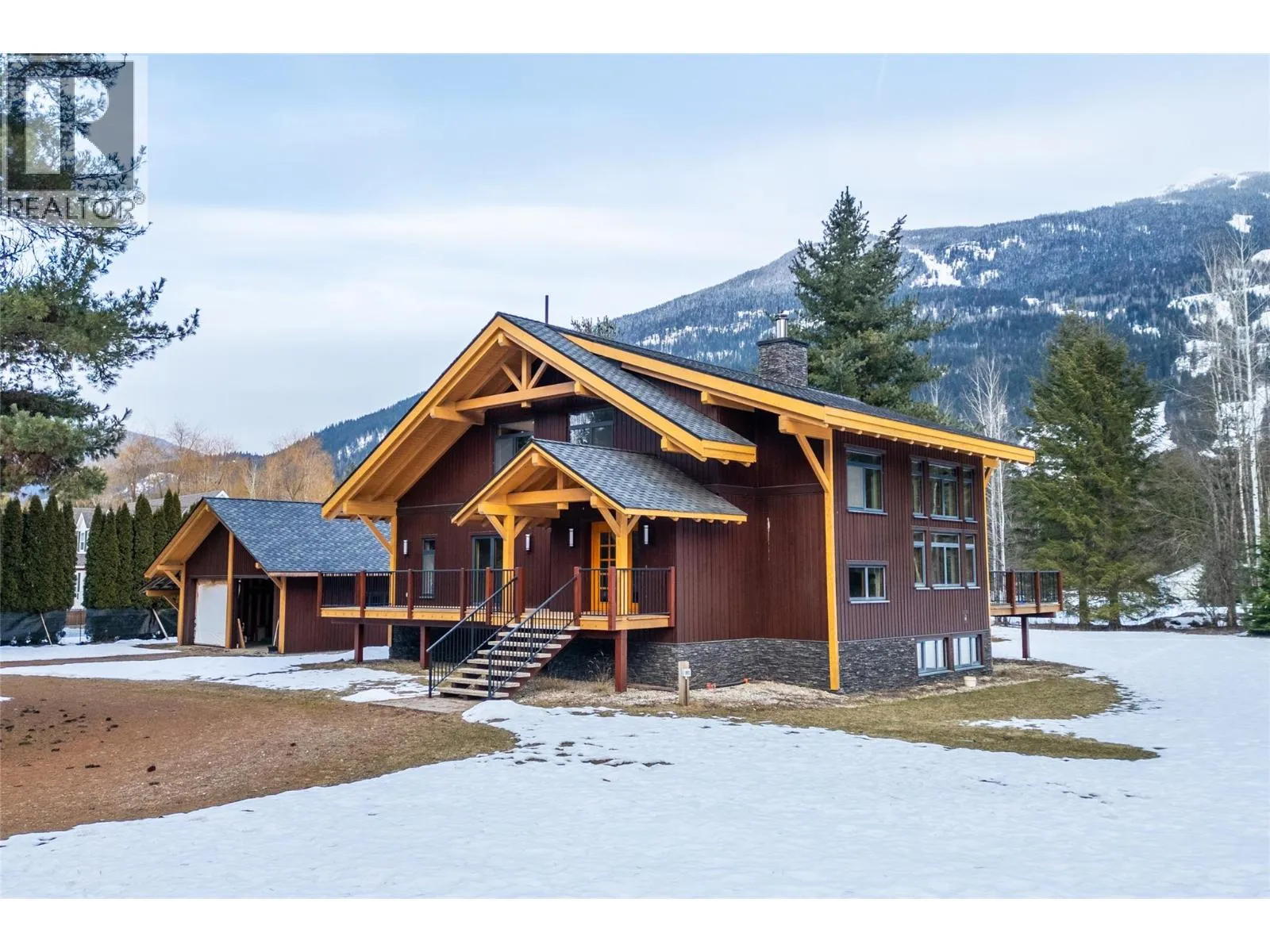 Set on 2.09 private acres in Revelstokeâs sought-after resort community, this custom 4,300 sq. ft. timber frame estate offers an exceptional blend of refined mountain living and world-class surroundings. Just moments from Revelstoke Mountain Resort and the future Cabot Revelstoke Golf Course, year-round adventure is truly at your doorstep.Thoughtfully designed to complement its alpine setting, the home features timeless Swiss-crafted post-and-beam construction, soaring ceilings, and expansive windows framing unobstructed mountain views. The grand great room and chefâs kitchen open seamlessly to generous outdoor decks, perfect for après-ski gatherings, summer entertaining, or quiet mornings in nature.The primary suite is a private retreat with a luxurious five-piece ensuite and walk-in dressing room, while a secondary main-floor suite offers comfort and privacy for guests. Triple-glazed imported windows and geothermal heating provide exceptional energy efficiency and consistent year-round comfort. Revelstoke is defined by lifestyle, legendary powder skiing in winter; hiking, mountain biking, lake life, and golf in summer ,all complemented by a vibrant downtown just minutes away. Acreage properties in this coveted location are rare, offering a remarkable balance of privacy and proximity in one of Western Canadaâs most dynamic mountain destinations. (id:27476)