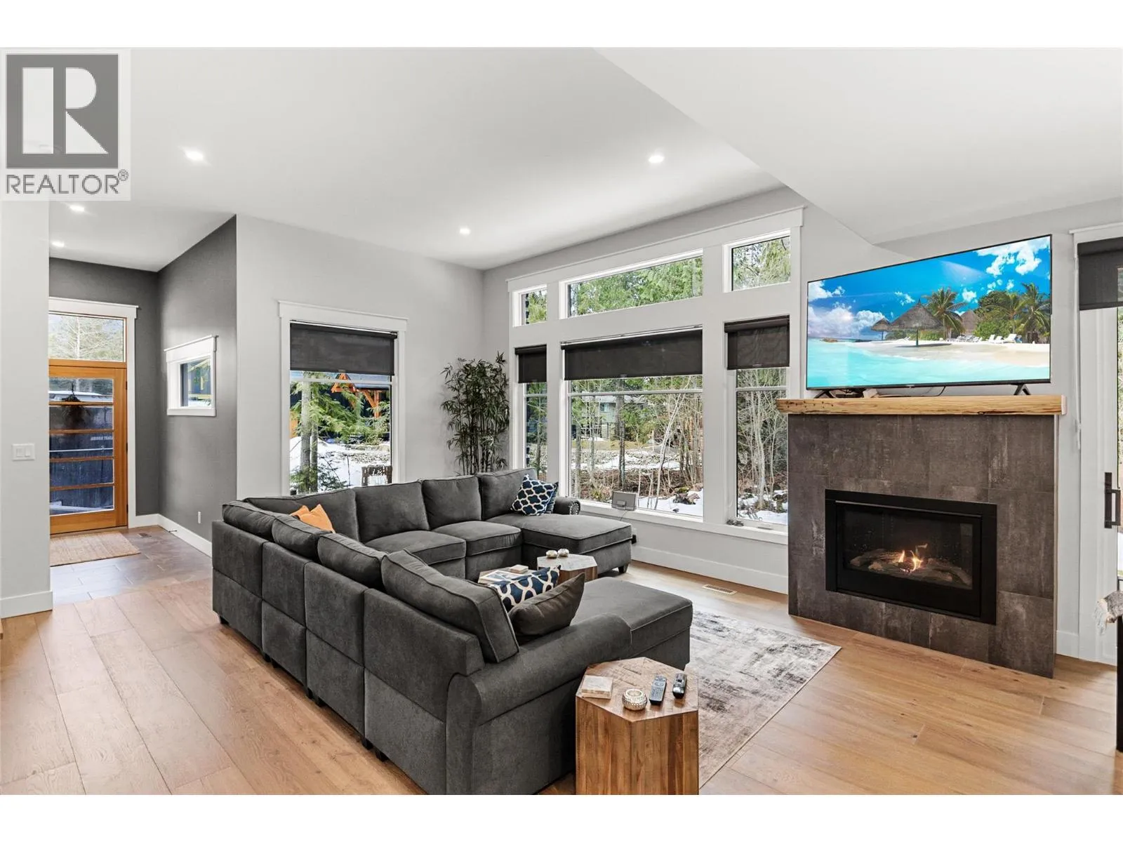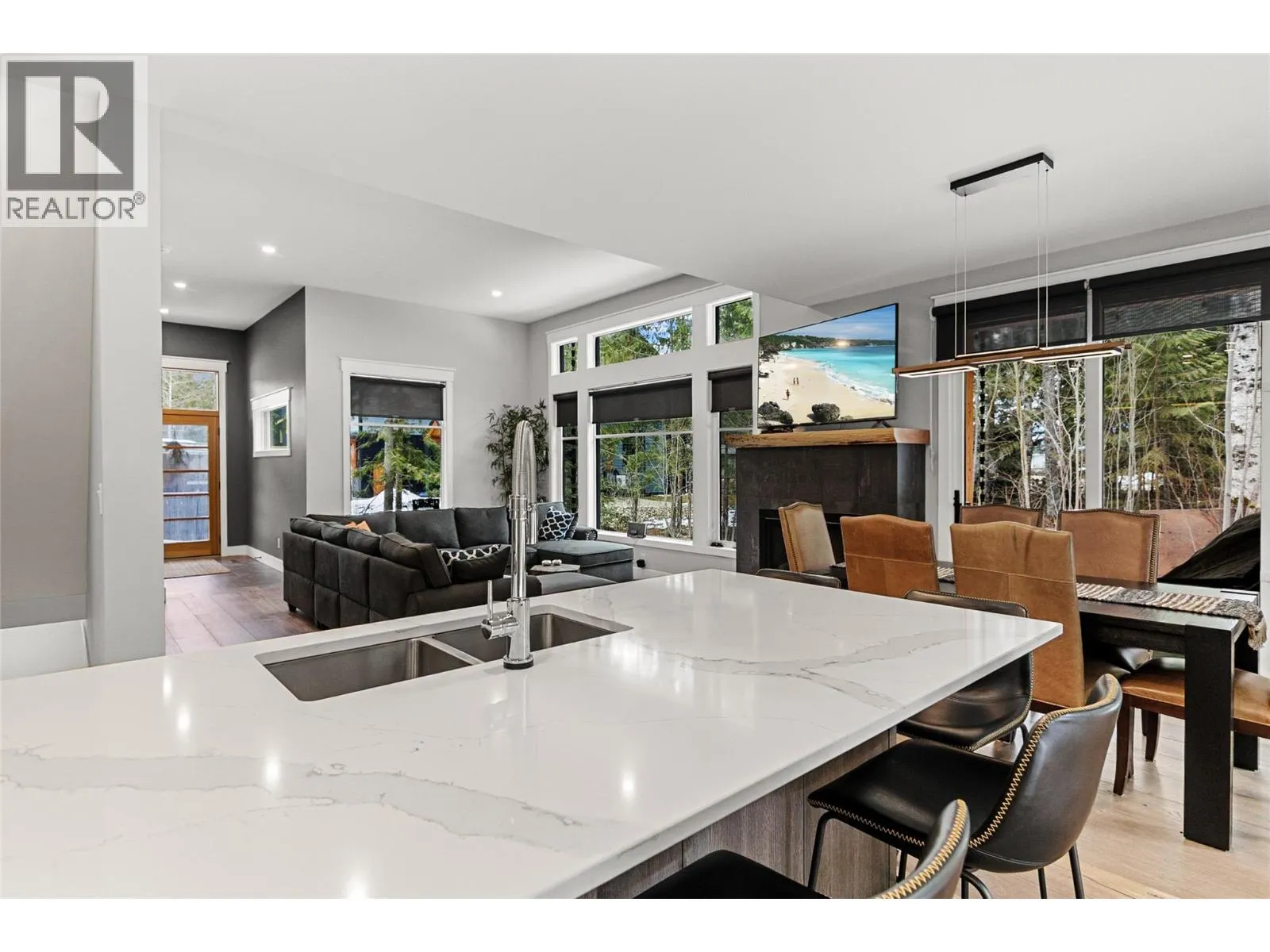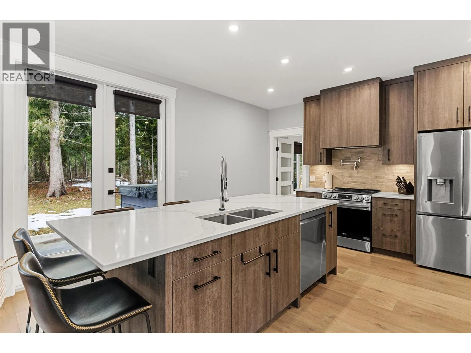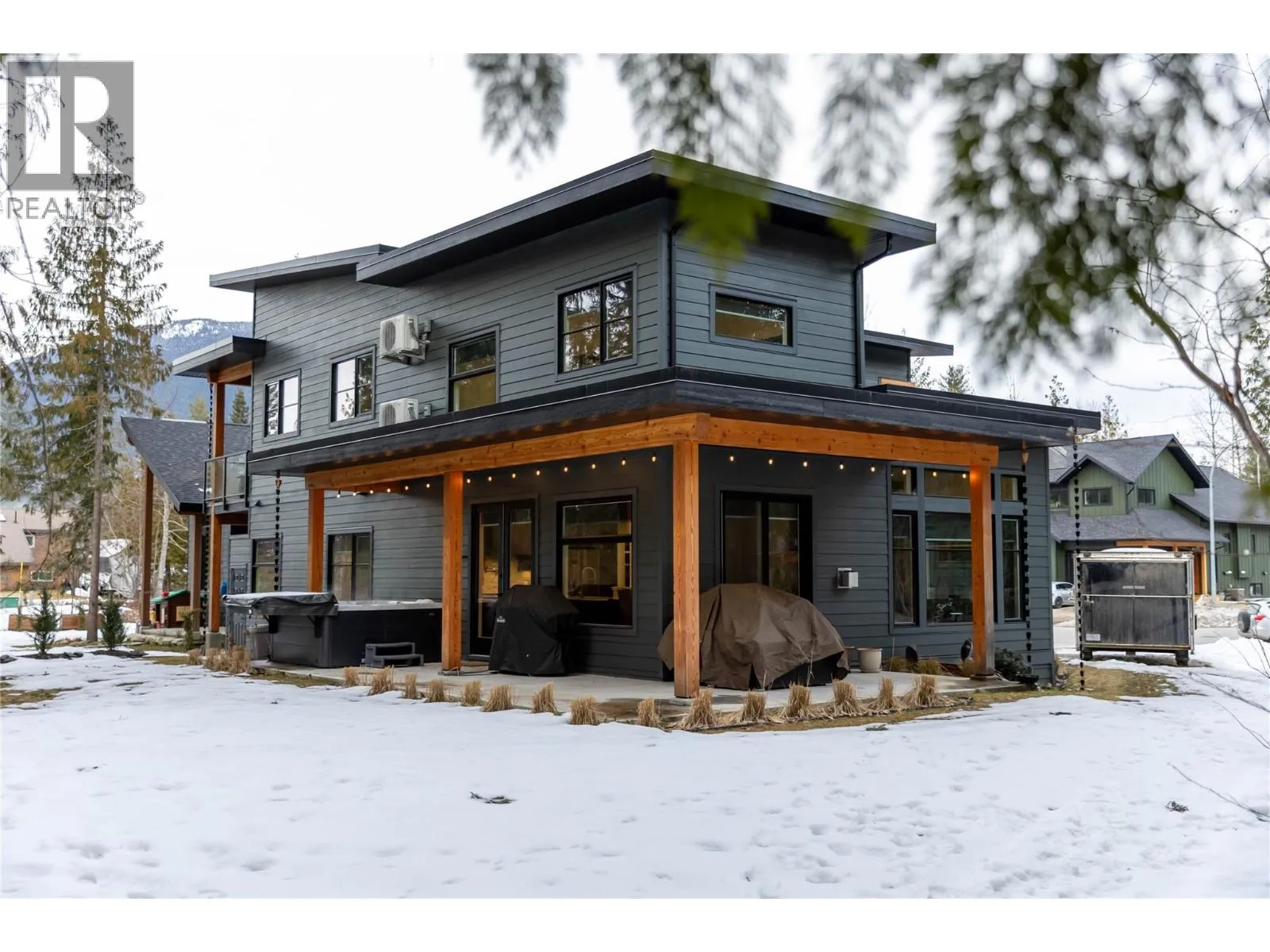 High-end custom 4 bedroom / 4 bathroom Arrow Heights home with a legal 2 bedroom suite now available. Completed in 2024 in Revelstoke's coveted Cashato Bench area, this spectacular modern property is surrounded by new builds and backs onto a forested parkland providing an upscale yet natural feel. The open concept main living area is perfect for entertaining where high ceilings and expansive windows welcome natural light. The main living area spills onto a large covered back patio complete with its own hot tub in a tranquil forest setting. The adjacent primary bedroom is a showstopper with a large walk-in closet and a modern ensuite complete with a gorgeous soaker tub with forest views. Upstairs you'll find 2 more bedrooms, a full bathroom and a bonus reading room with views of the forest. Downstairs you'll find a 4th bedroom, a full bath and one of the coolest rec rooms around - the ideal spot for the family or guests to spread out. The 2 bedroom suite offers many of the quality finishes found in the main home and also boasts vaulted ceilings and 2 large decks (1 with its own hot tub). Special features of this home are too many to list, but include abundant exterior timber framing, high-end millwork, in-floor heating, high efficiency heat pumps, engineered hard wood flooring and an underground irrigation system. And don't forget the epic 836 sq ft garage with in-floor heat - the perfect home for all your Revelstoke toys. Your dream mountain home awaits. Call for info today! (id:27476)