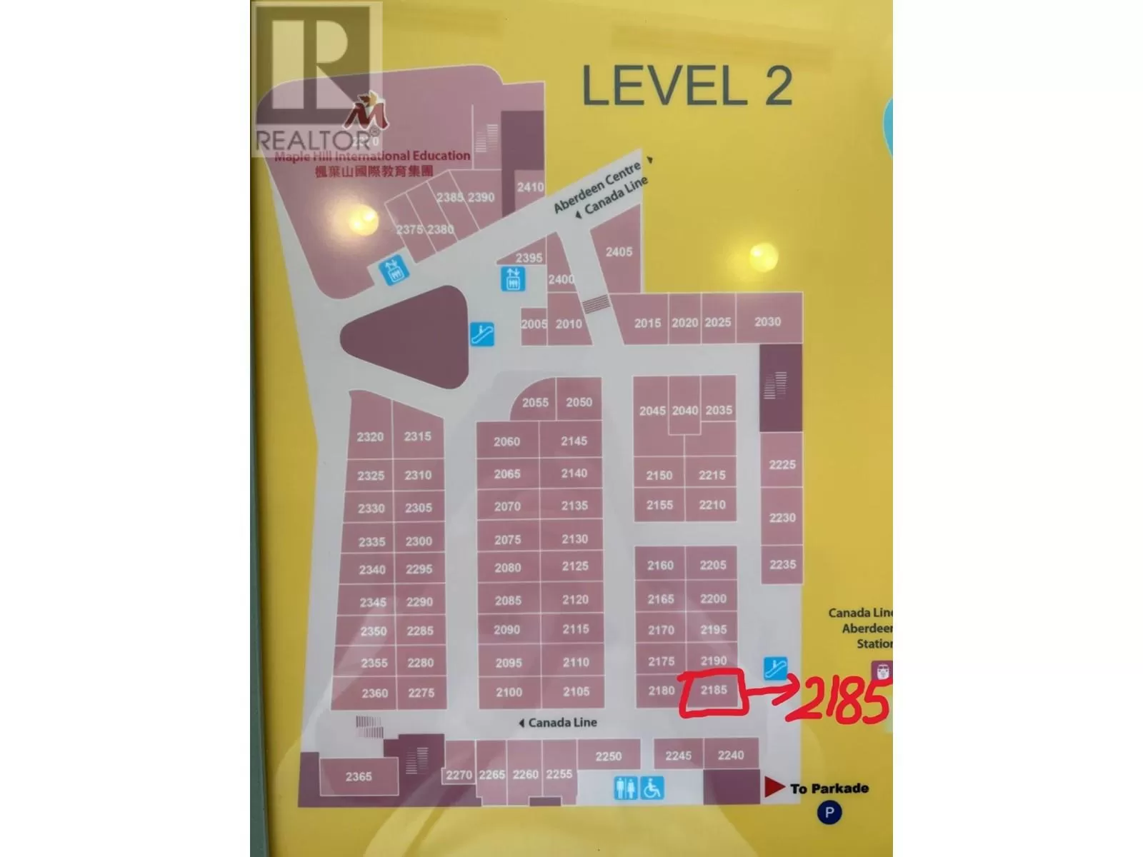 Excellent and central location in this mall. 332 SQFT corner unit retail located on main corridor of Aberdeen Square 2nd floor. The unit is in the best location of the mall. Next to the escalator with direct access to the Canada Line Station, parking lot, and Aberdeen Centre. The Unit is used as a pet supplies store. Best opportunity to own your storefront, an office or to lease out for investment. The Aberdeen Square is at the Corner of NO.3 Road and Cambie ST in the heart of Richmond with 10 minutes to Vancouver International Airport,20 minutes to downtown Vancouver. VR link: https://my.matterport.com/show/?m=ywBy22RzrEY (id:27476)