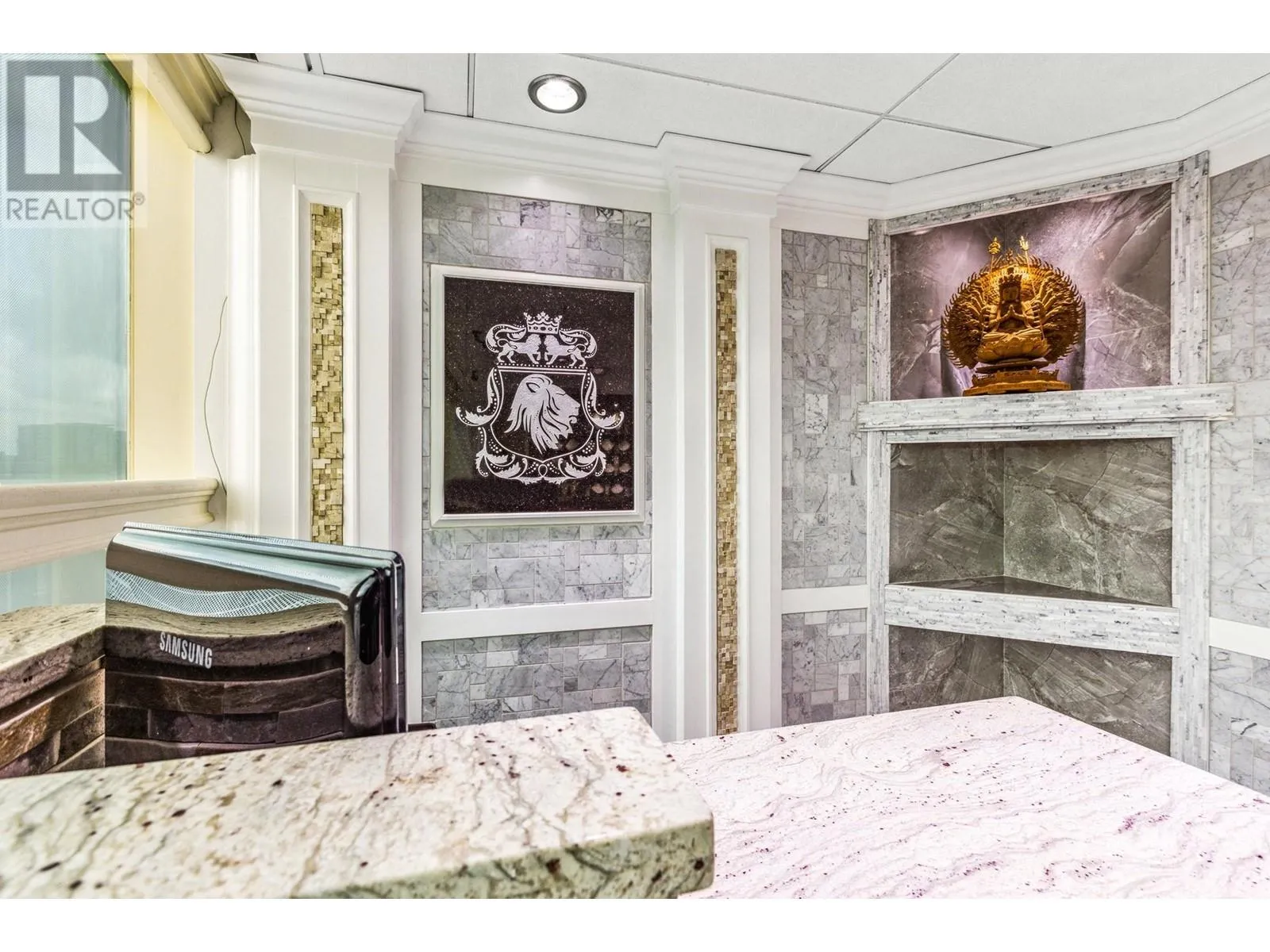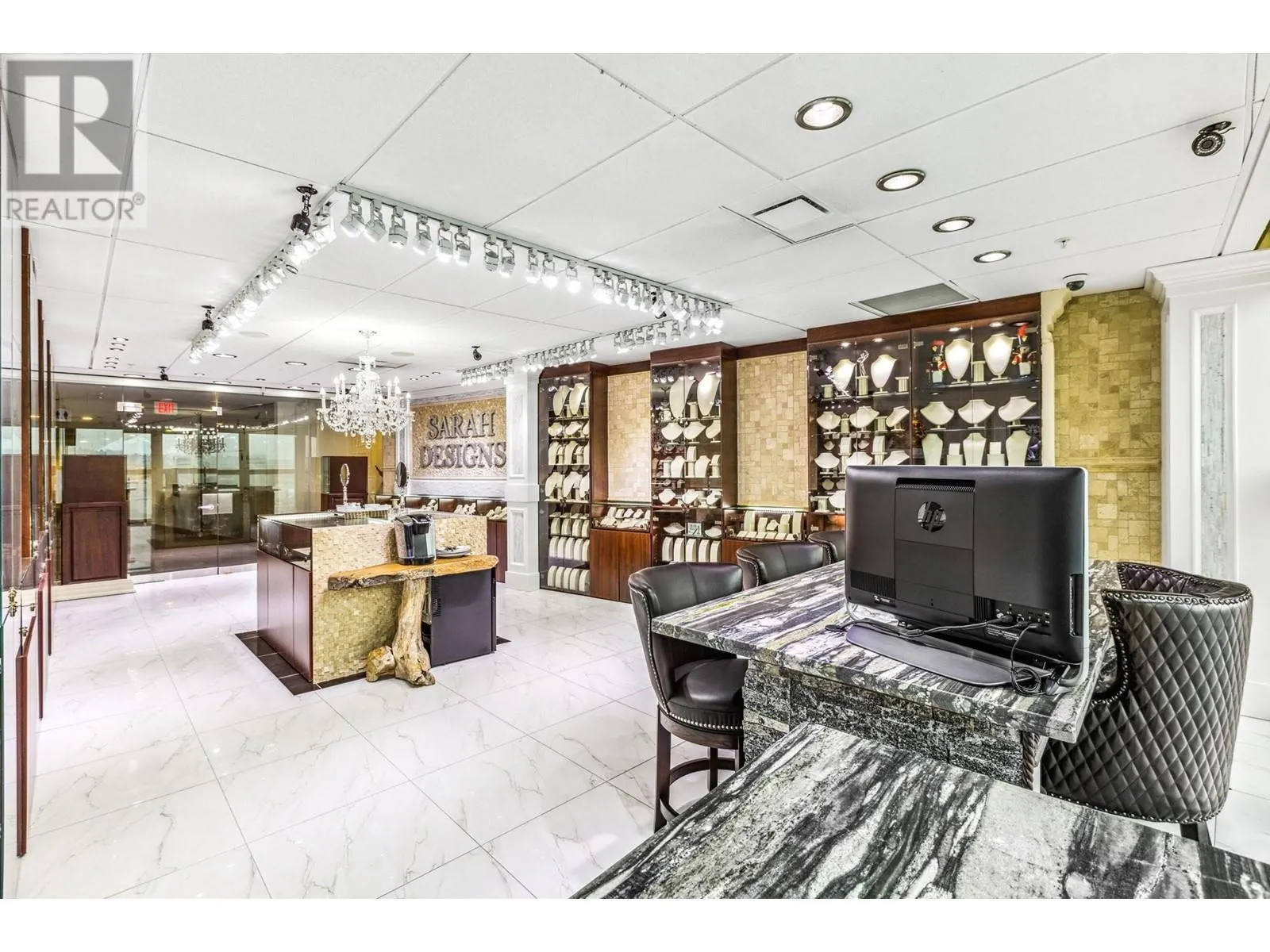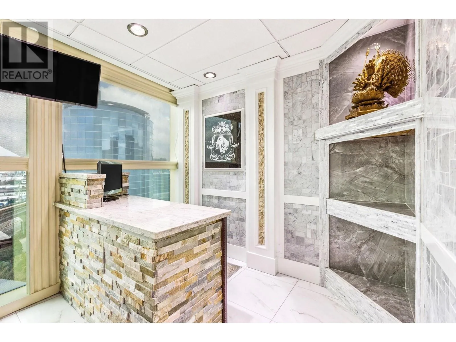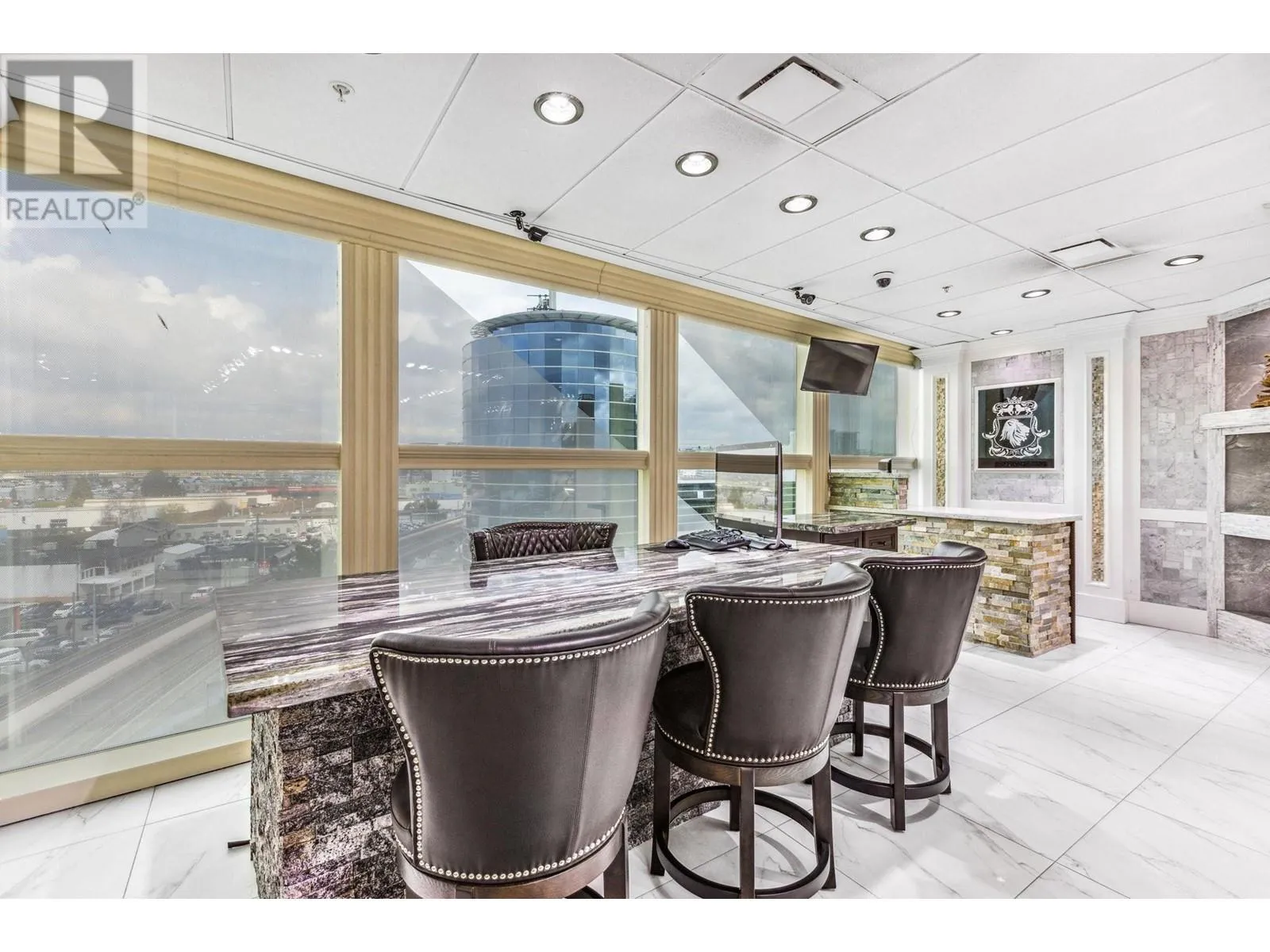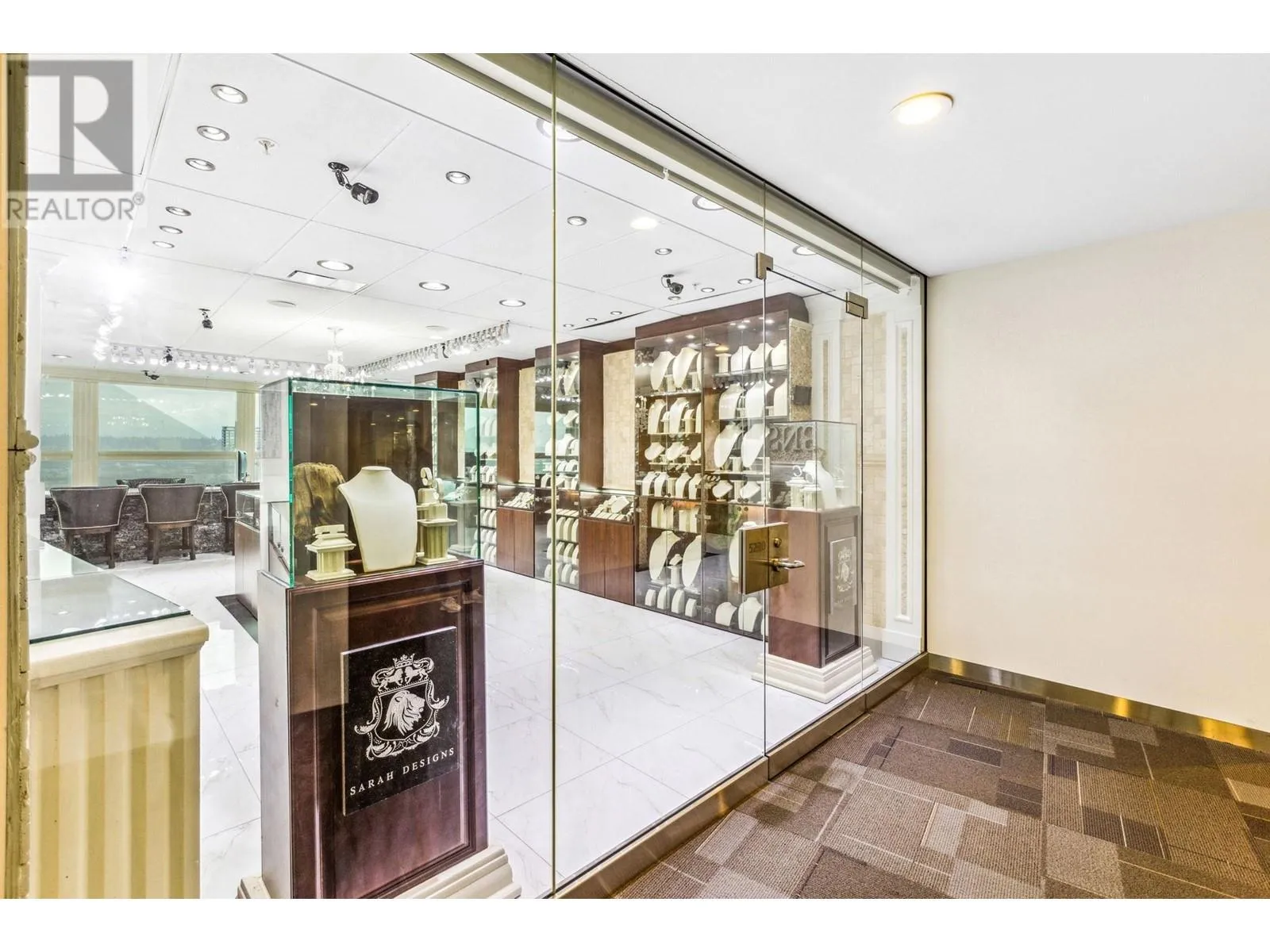 Best and most luxury office/retail space at Aberdeen Square! This exceptional unit offers unblocked panoramic views of the North Shore mountains, cityscape, and water. Meticulously renovated and decorated, it previously served as a customized jewelry showroom. For those seeking more space, an adjacent unit is also available, providing a total floor area of 1479 sq ft. Each unit includes a parking stall pass and enjoys 24-hour security and access to the on-site food court. Connected to Aberdeen SkyTrain station and the Aberdeen Shopping Center, only 2 units in the building has this exceptional view. Call for private viewing. (id:27476)