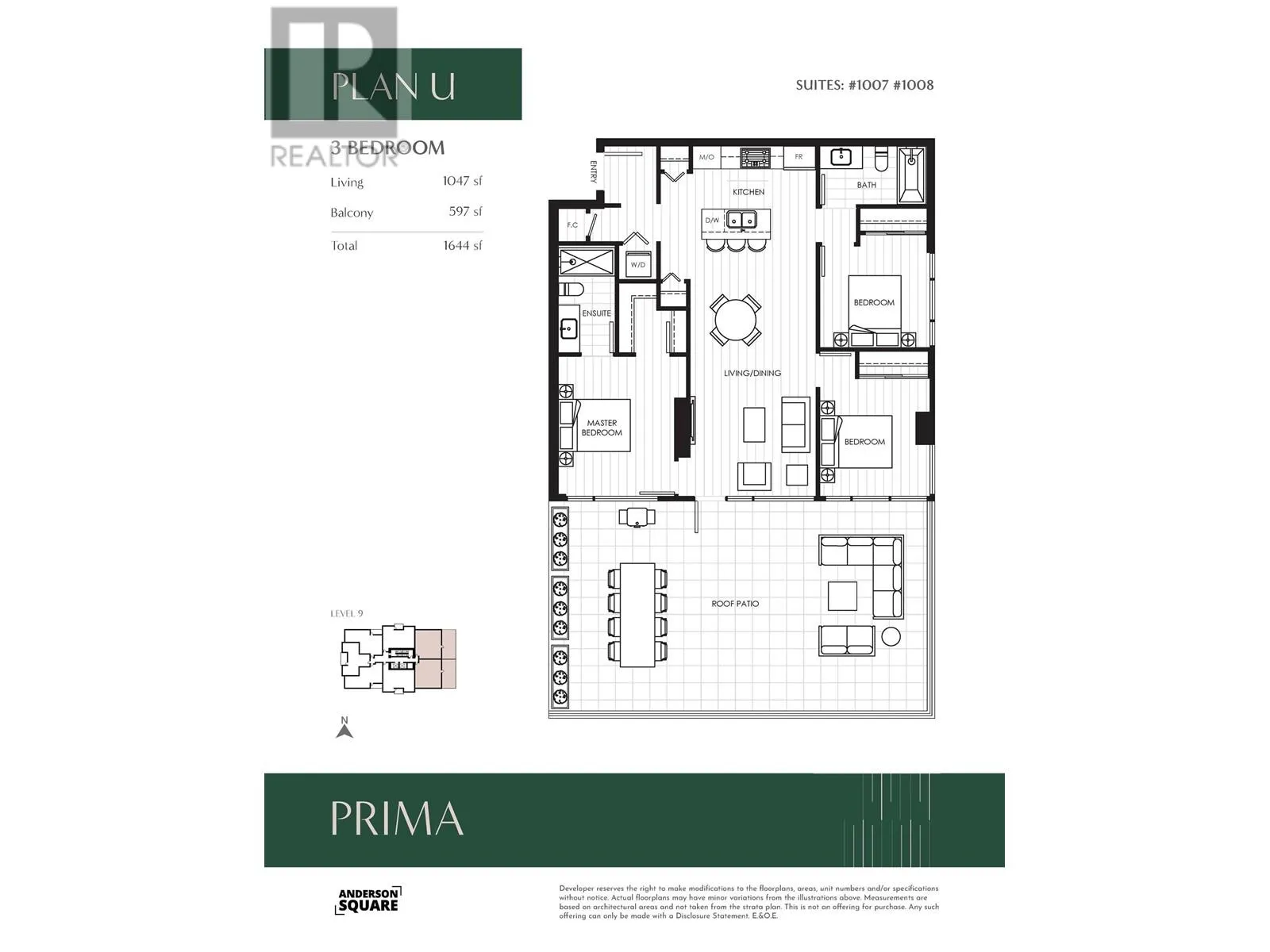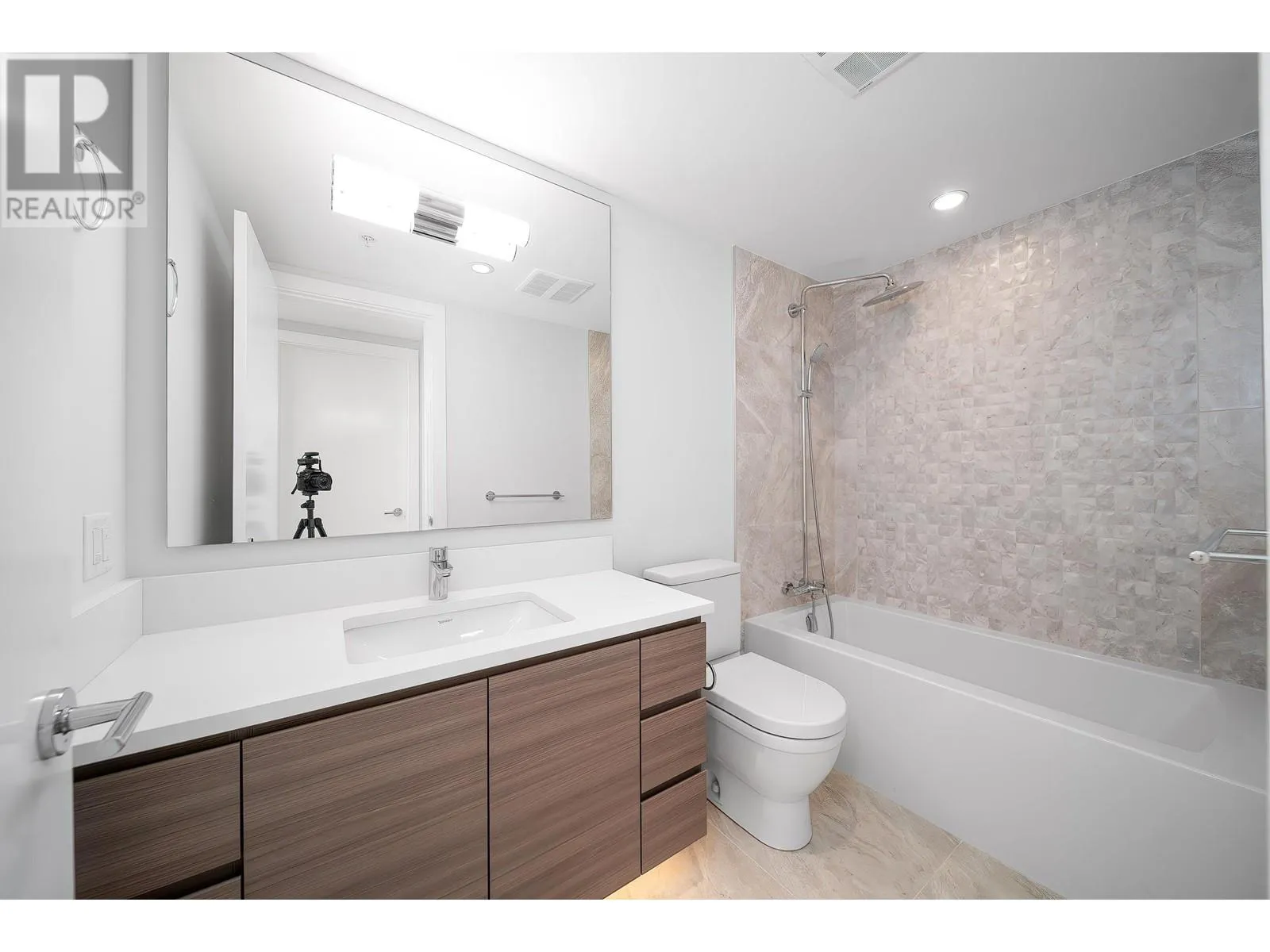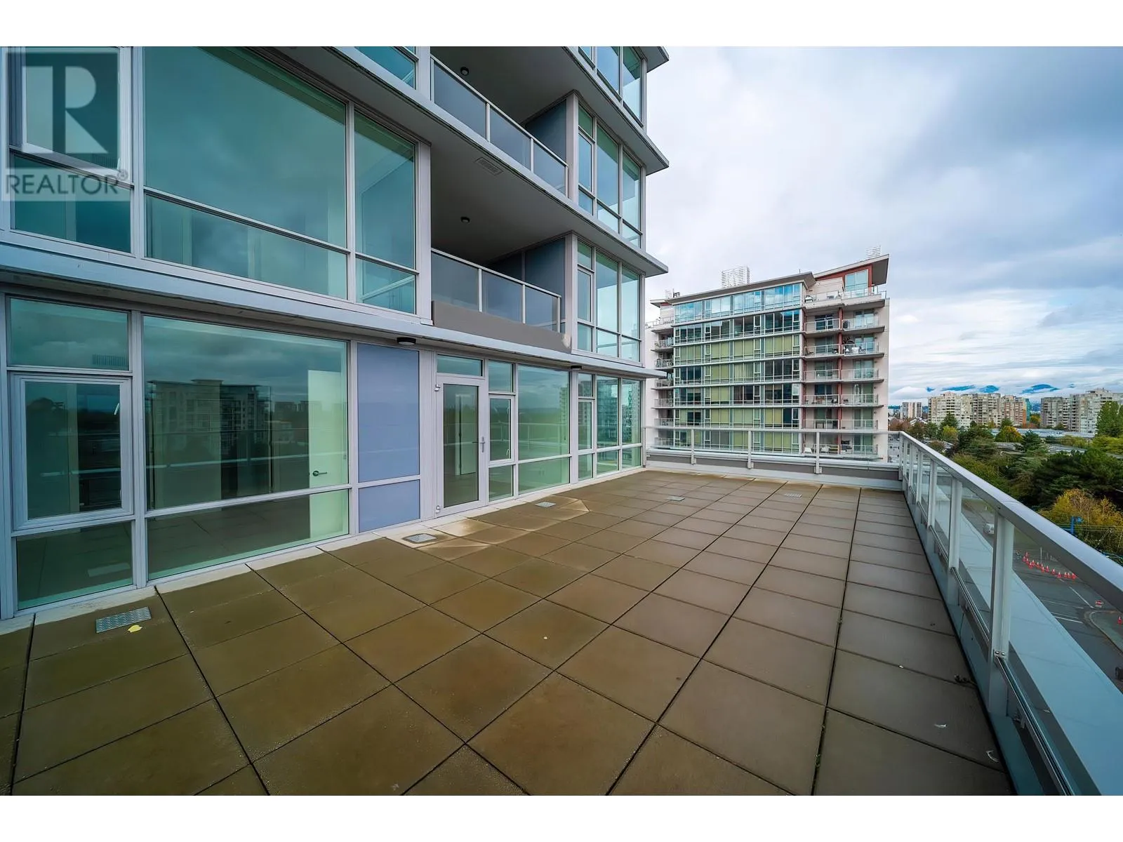 Welcome to PRIMA, a beautifully crafted concrete building in the heart of downtown Richmond. This 10th-floor northeast corner unit offers a spacious layout with a generous 597 sq.ft. outdoor terrace-perfect for entertaining and enjoying stunning mountain views. Inside, the bright open-concept floor plan features 8.5' ceilings, floor-to-ceiling windows, and high-quality finishes throughout. The modern kitchen is equipped with premium brand-name appliances and ample storage. No carpet, just elegant wide-plank laminated wood flooring and sleek tile in the bathrooms. Residents enjoy access to a rooftop garden, fitness center, and multipurpose room. Conveniently located steps away from Richmond Centre, Brighouse Skytrain Station, and Minoru Park. Easy to show! (id:27476)