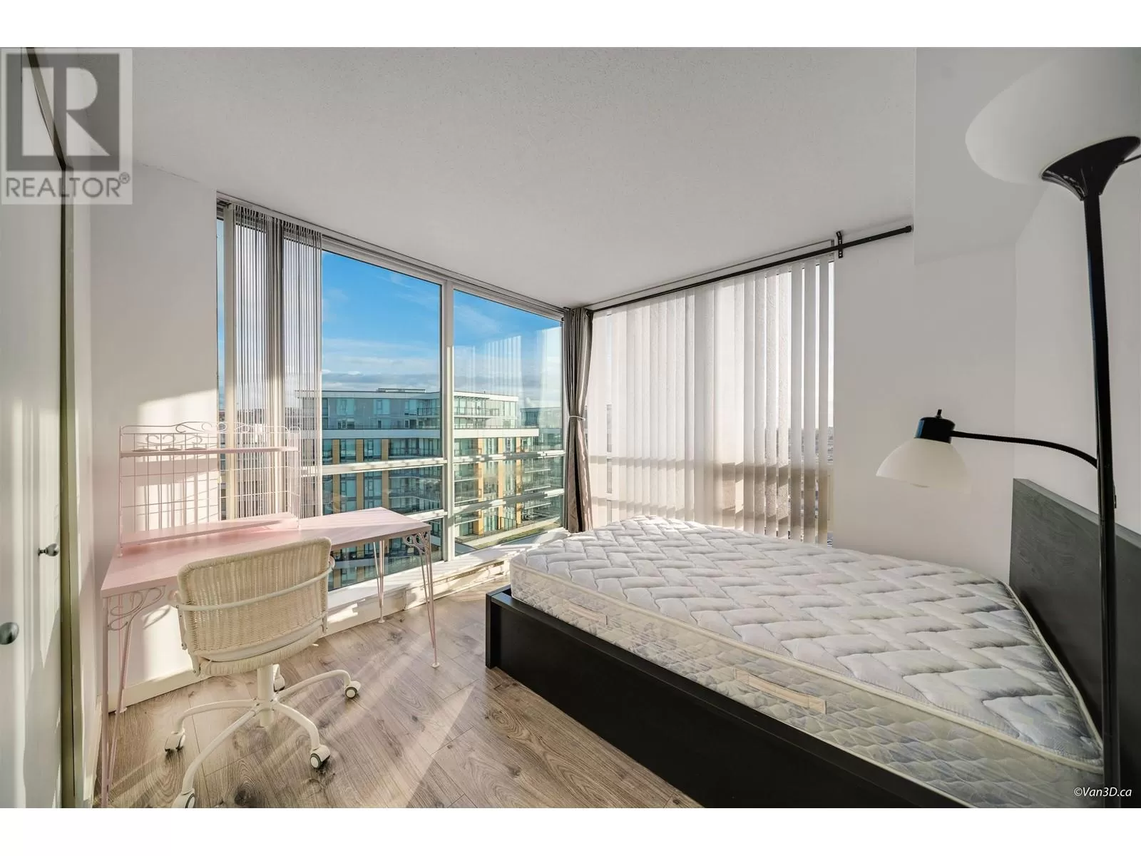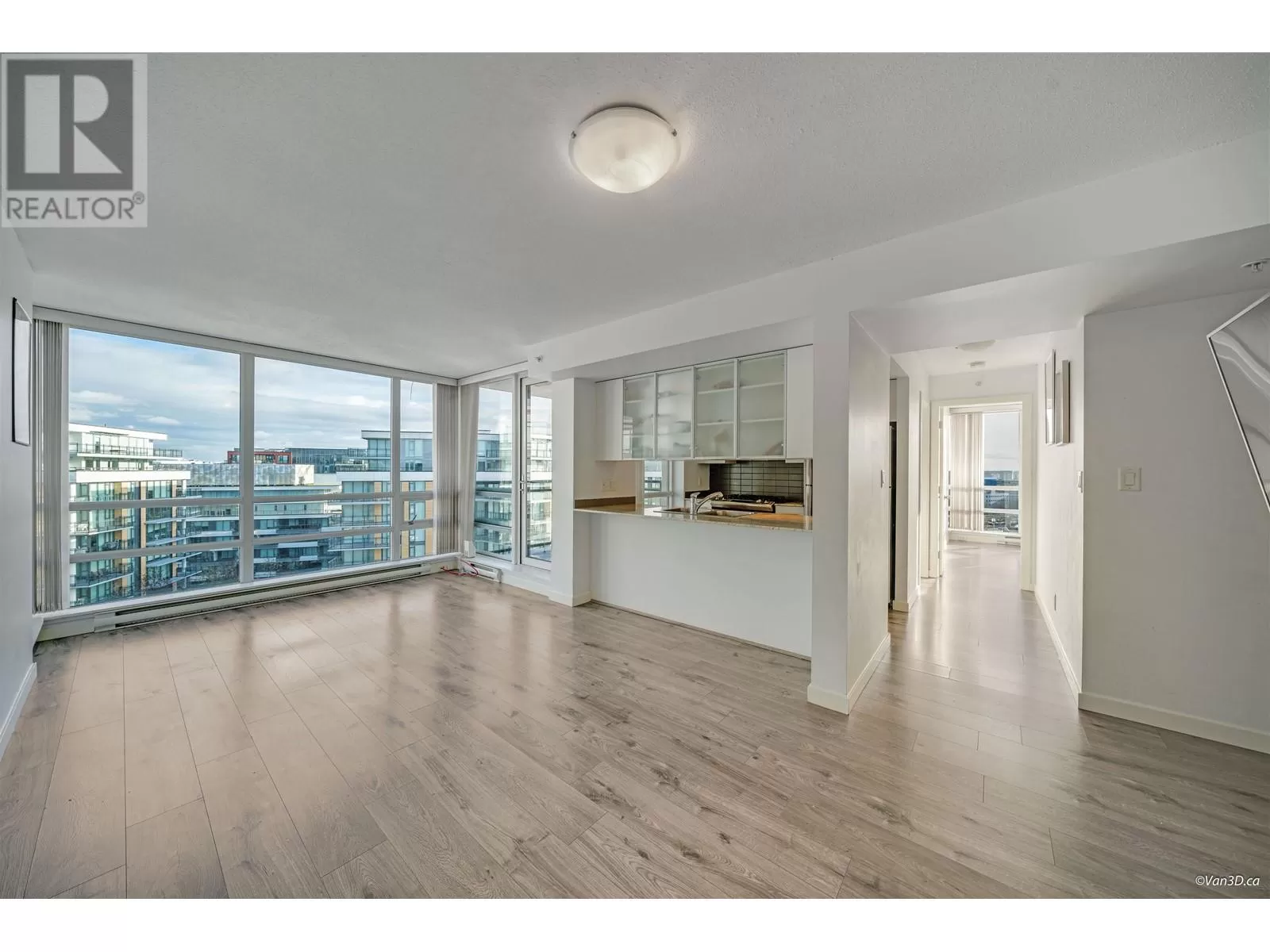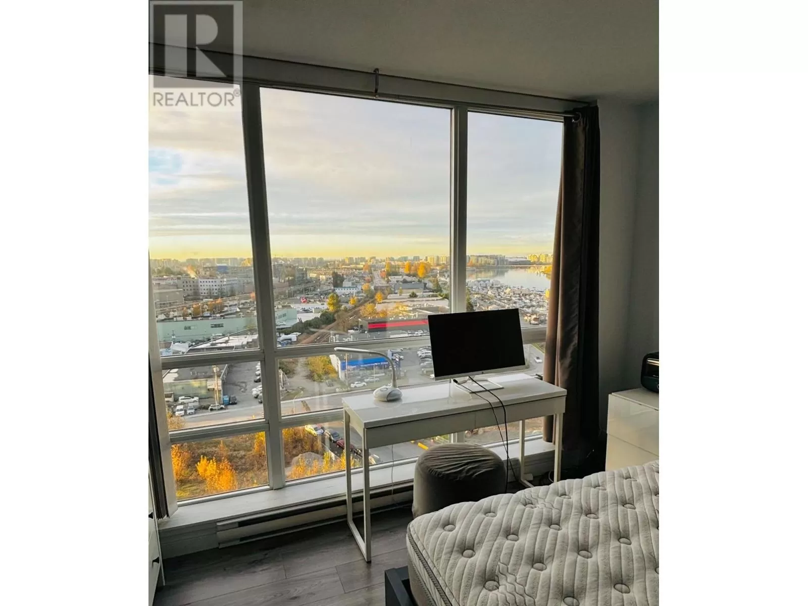 Sub-penthouse,2 bedrooms 2 baths south-east corner unit bright with floor to ceiling windows and stunning views of the city and partial water view. Throughout laminate flooring including bedrooms. Adjacent to 5-star hotel with full amenities. Riverfront dyke trail. Steps from NO. 3 Road shopping, restaurant & Canada Line "Capstan" station. (id:27476)