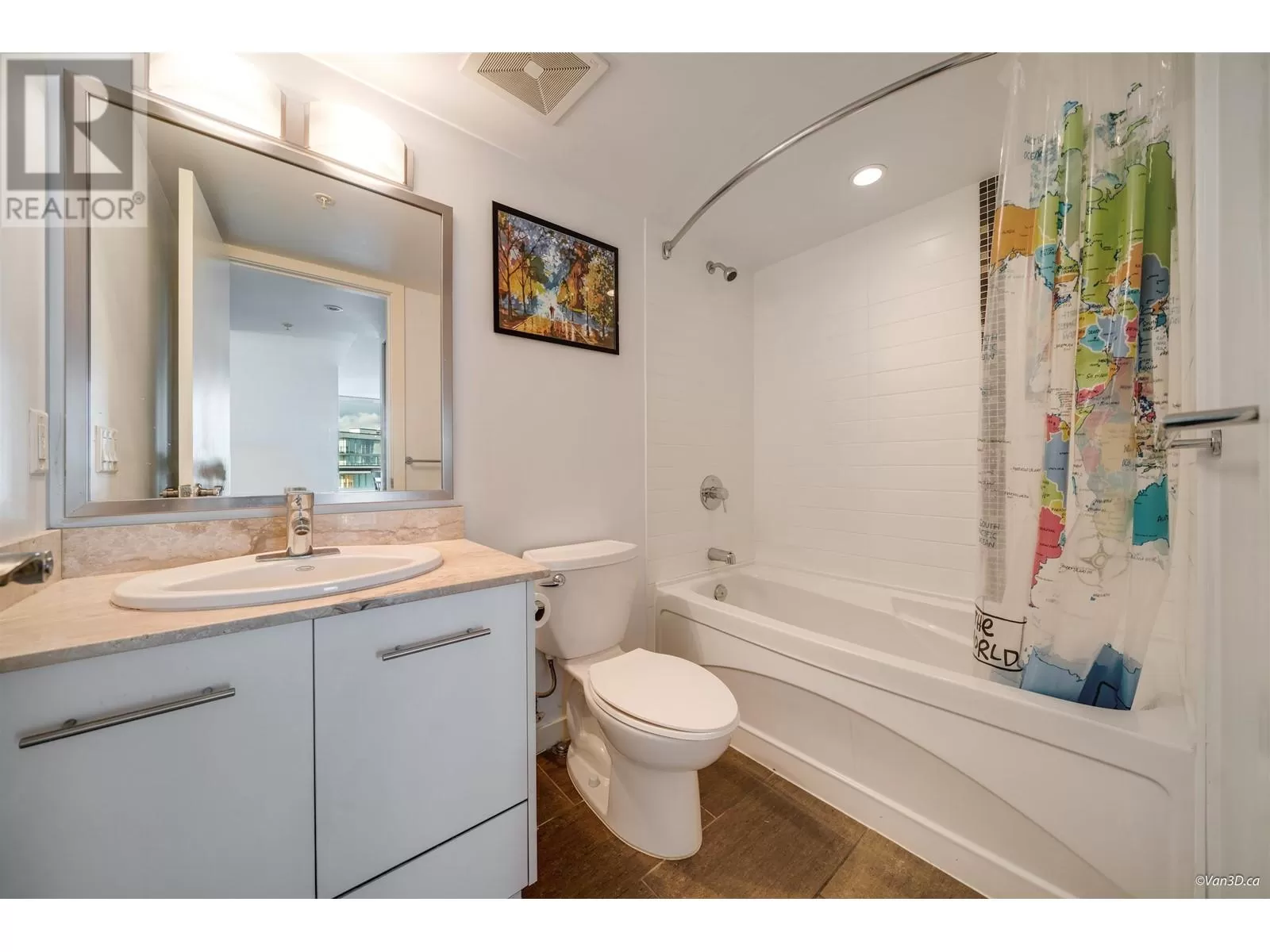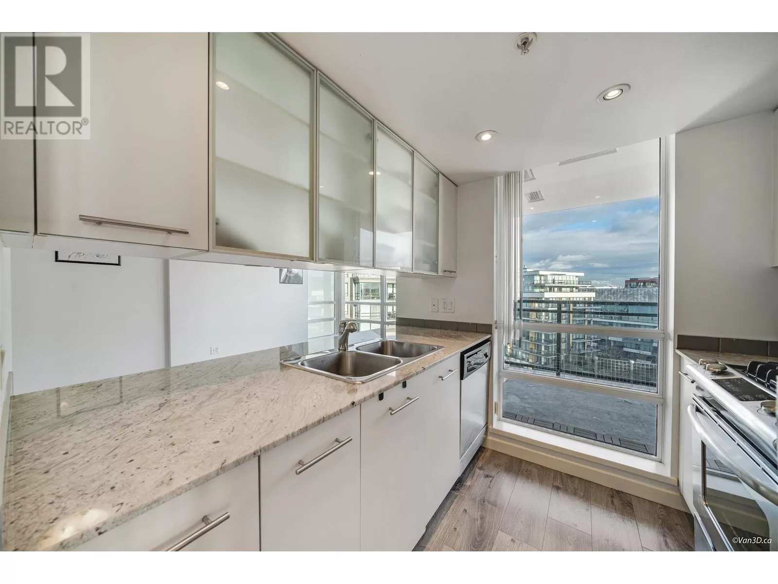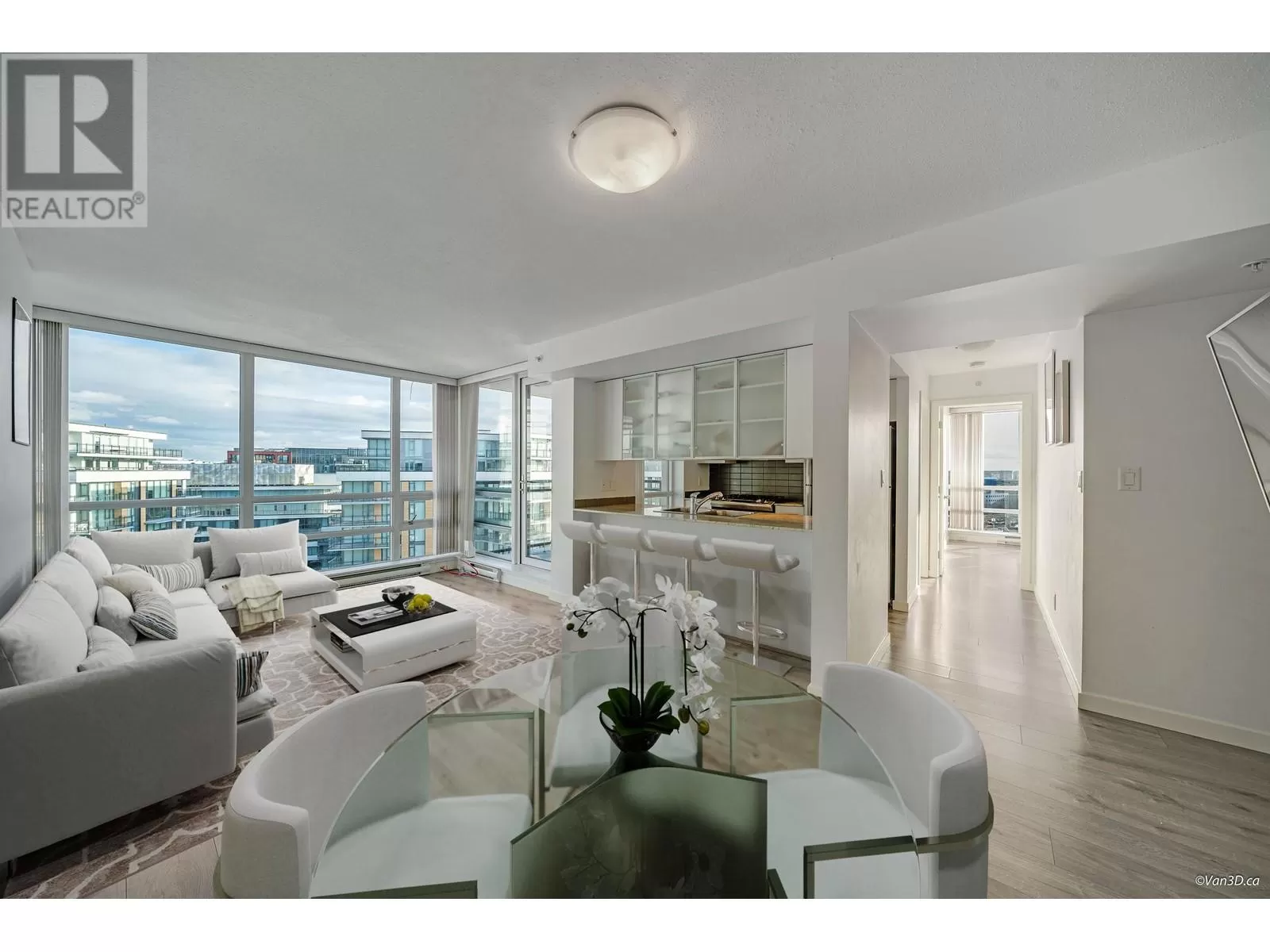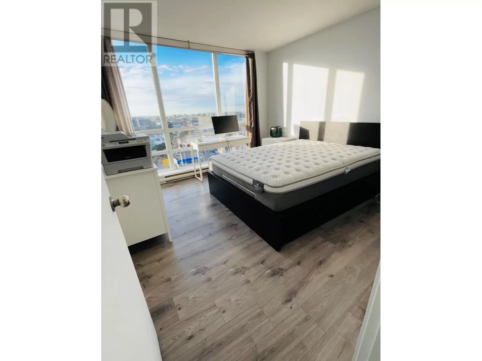 Sub-penthouse,2 bedrooms 2 baths south-east corner unit bright with floor to ceiling windows and stunning views of the city and partial water view. Throughout laminate flooring including bedrooms. Adjacent to 5-star hotel with full amenities. Riverfront dyke trail. Steps from NO. 3 Road shopping, restaurant & Canada Line "Capstan" station. (id:27476)