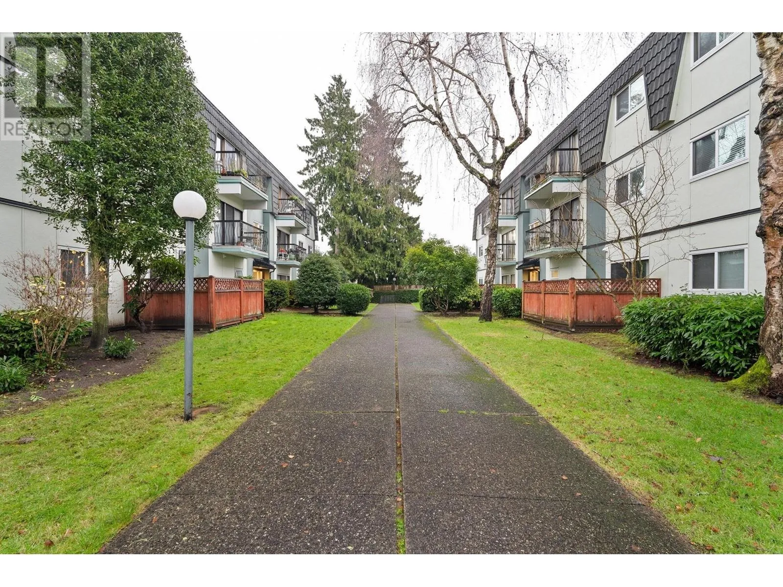 MAYFAIR COURT - This spacious 2-bedroom plus den (or storage room), 1-bathroom unit offers peaceful courtyard views, featuring a garden and greenbelt. Conveniently located with grocery stores, restaurants, Starbucks, and public transit directly across the street. Close to Richlea Shopping Mall, South Arm Community Centre, William Bridge Elementary, and McRoberts Secondary School. The maintenance fee includes property tax, heat, hot water, garbage, gardening, and caretaker services. Rentals are permitted, making it an excellent choice for both investors and first-time homebuyers. Move-in ready with one parking stall included. *photos virtually staged* Lease expires in 2088. (id:27476)