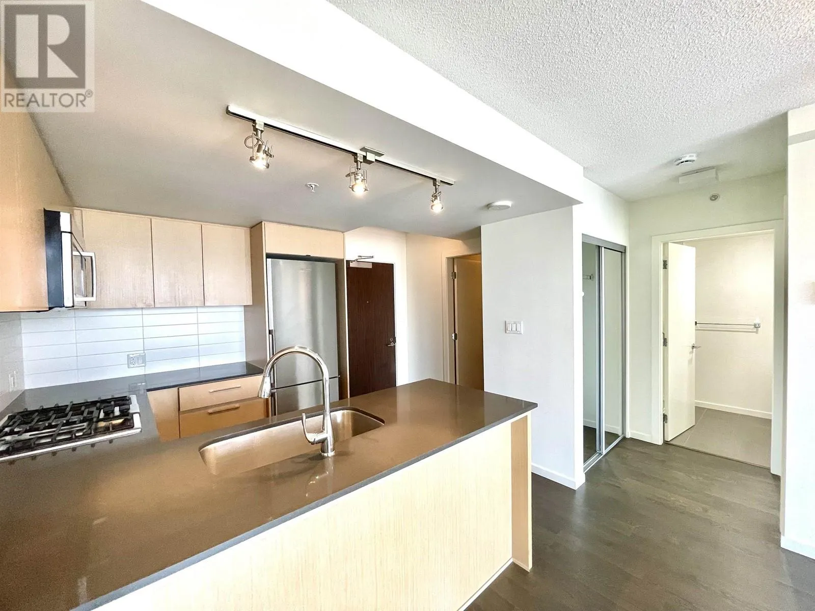 Quintet Tower D concrete highrise condo, unit facing north with mountain view. 2 bedroom, 800sf, 2 baths, one parking, air-conditioning. Functional layout. Spacious gourmet kitchen with stainless steel appliances, engineered hardwood flooring in living and dining room. Great facilities include exercise centre, party room, in-door pool. Brighouse Elementary and Richmond Secondary School catchment. Walking distance to Canada Line skytrain station, bus loop, supermarket, restaurants, bank, and park. (id:27476)