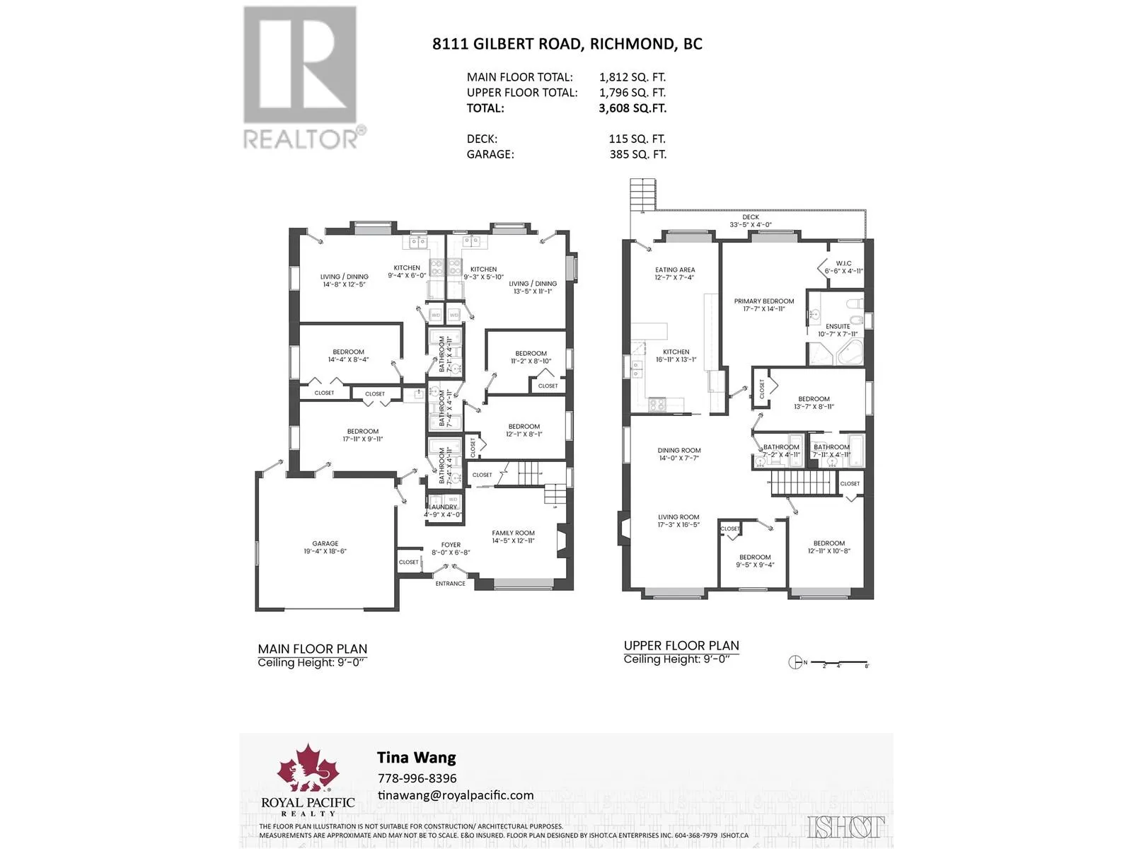 EXCELLENT & Functional Custom built 3,390 spacious living area with 5,249 sq.ft. lot at very desirable 'WOODWARDS' area!! Features with functional 8 bdrms & 6 full baths, 3 bdrms, 2 baths, 9' ceilings, numerous skylights, crown mouldings throughout, cherry wood flooring & kitchen cabinets with stainless steel appliances on the upper level! Main floor has 2 bdrms,1 bath with kitchen, washer & dryer on one side and 1 bdrm, 1 bath with kitchen washer & dryer on other side and 1 ensuite, all Legal suites. Excellent generate rental income in total for investor or mortgage helper. Double garage plus 4 open parking stalls. Radiant heating system, central air conditioning HRV, special windows. New upgrade Fridge, stove etc. Close to Minoru park, recreation centre, Blundell & London School area. Act Now! (id:27476)