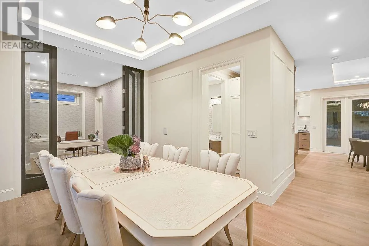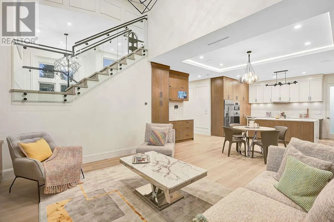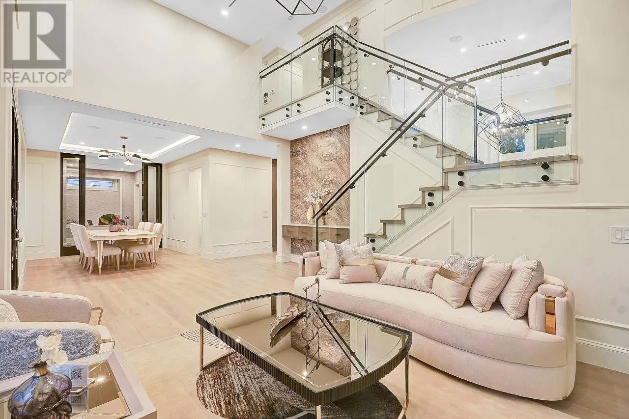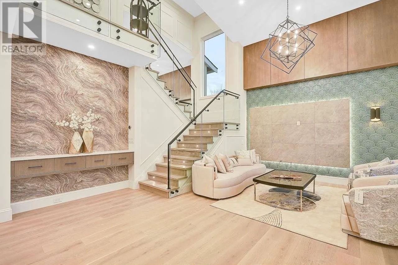 Custom-built home sits on 7019 sf lot with 3,502 SQFT living space in central WOODWARDS NEIGHBORHOOD. This modern style home boosts an open concept,One Bedroom Legal Suite on the main floor, full of exquisite details inside and out. Great open floor plan including 5bdrms + 6 bathrms +3 kitchens+ 2 laundries+3 car garage. built-in speaker system throughout, high end wallpaper, high ceilings in living and family room. One bedroom nanny suite or in-law suite provides independent living space. Spice Kitchen, and Main Kitchen with high-end stainless-steel appliances. Sound surrounding system, A/C, HRV, radiant heat, sprinkler system, etc . .... Walking distance to Blundell center . Close schools, shopping & public transits. School catchment: London Secondary Open House Sun Apr 13 (id:27476)