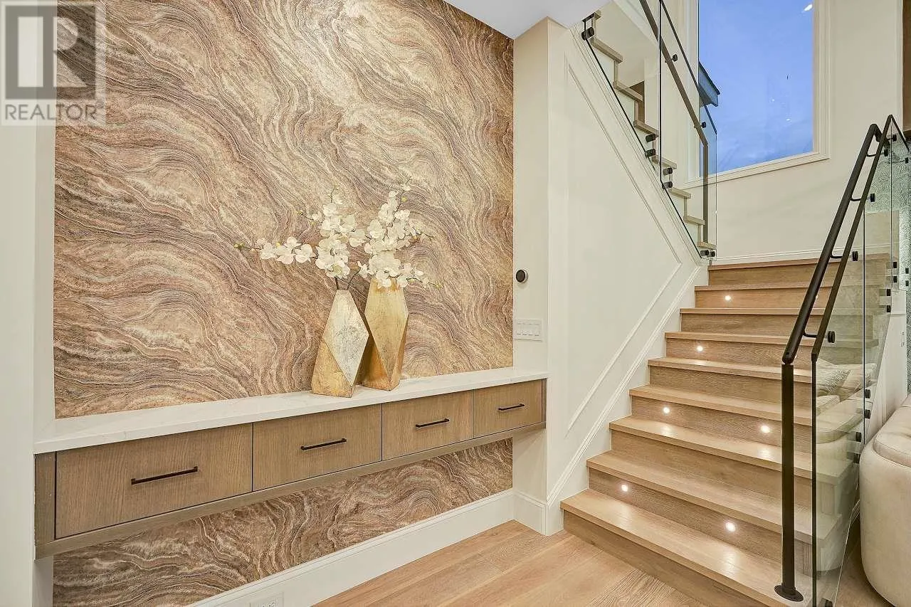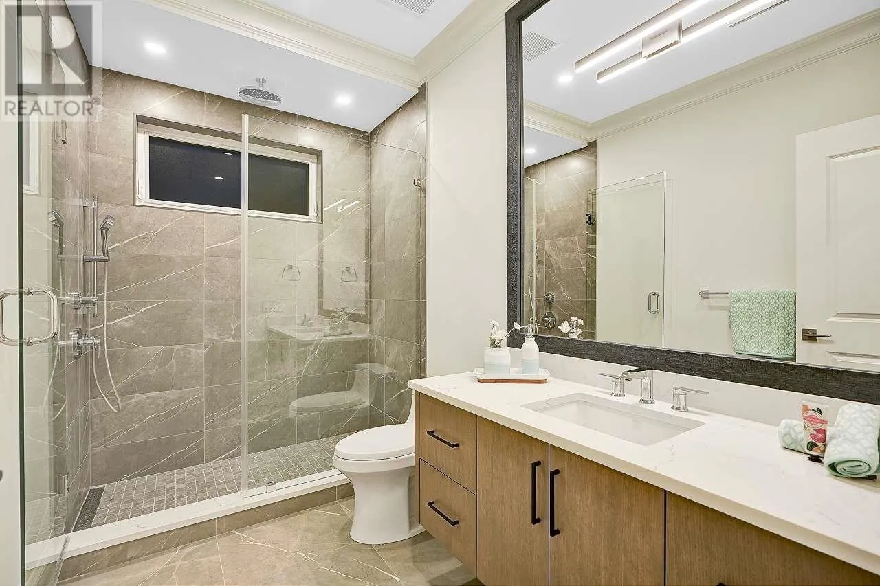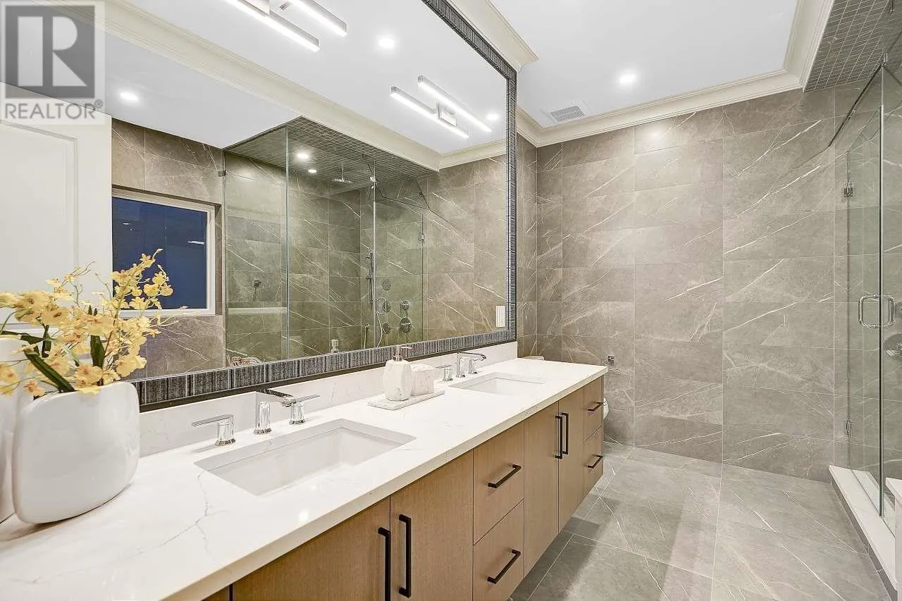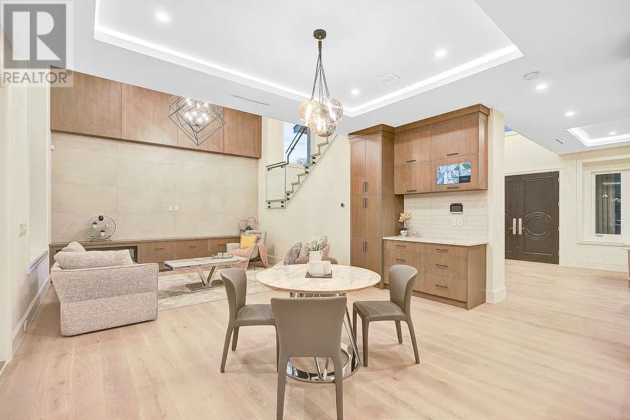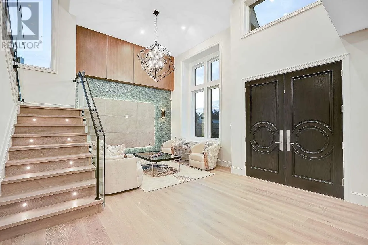 Custom-built home sits on 7019 sf lot with 3,502 SQFT living space in central WOODWARDS NEIGHBORHOOD. This modern style home boosts an open concept,One Bedroom Legal Suite on the main floor, full of exquisite details inside and out. Great open floor plan including 5bdrms + 6 bathrms +3 kitchens+ 2 laundries+3 car garage. built-in speaker system throughout, high end wallpaper, high ceilings in living and family room. One bedroom nanny suite or in-law suite provides independent living space. Spice Kitchen, and Main Kitchen with high-end stainless-steel appliances. Sound surrounding system, A/C, HRV, radiant heat, sprinkler system, etc . .... Walking distance to Blundell center . Close schools, shopping & public transits. School catchment: London Secondary Open House Sun Apr 13 (id:27476)
