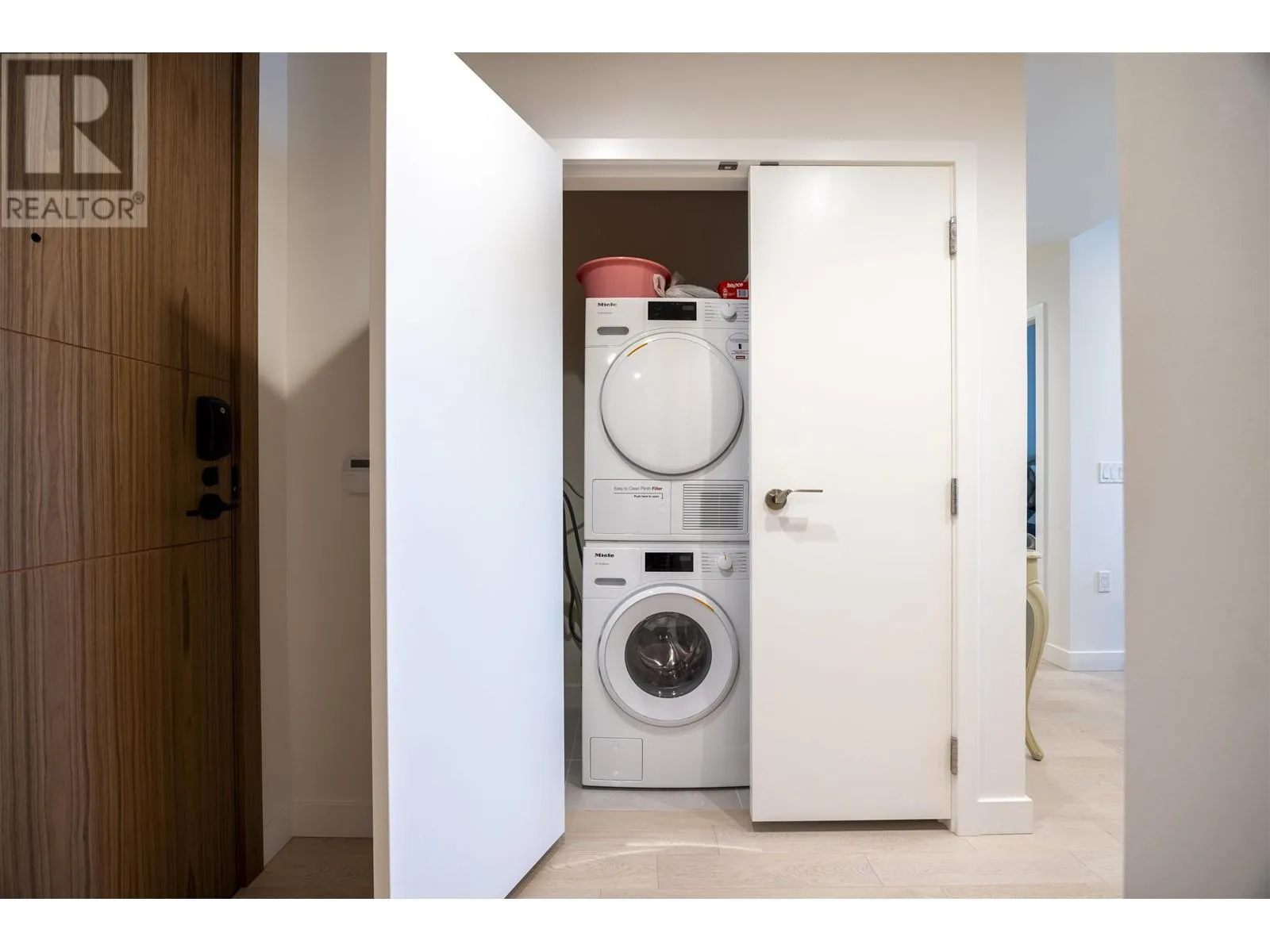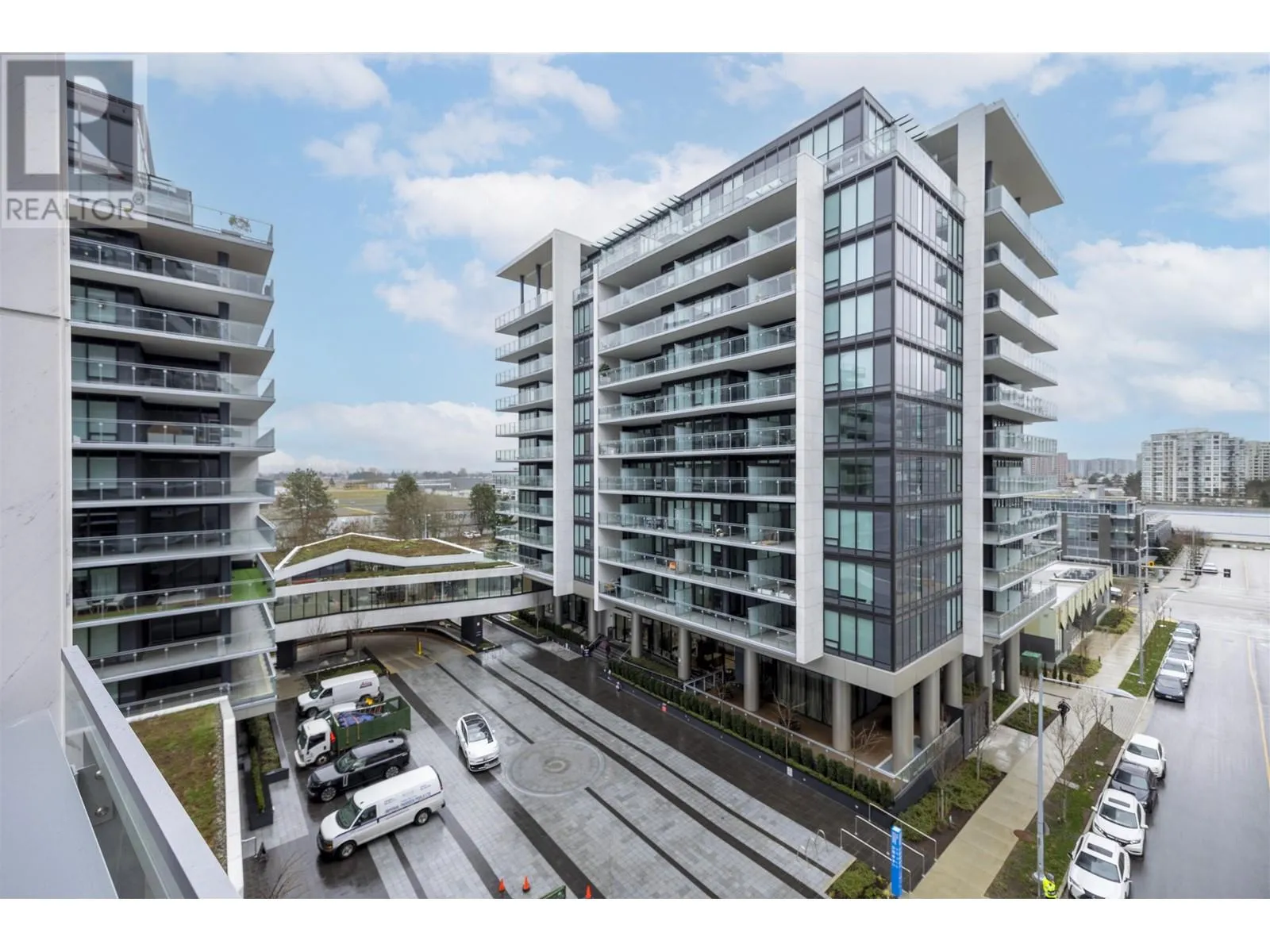 This stunning 1 bed + den unit boasts SOUTH-facing windows, enjoy sophisticated interior features such as premium Italian kitchen cabinetry, high-end countertops, and Miele appliances. The open-concept design is complemented by hardwood floors, air conditioning, and central heating, creating a comfortable and stylish living space. Additional highlights include an EV-ready parking stall and a secure locker for added convenience. Experience amenities with over 20,000 sq. ft. of exclusive space, including a serene green space with a water garden, an indoor swimming pool, sauna/steam room, fitness center, yoga/dance room, club room, music room, and a social/games room, steps to river dyke, Oval, T&T and restaurants. Call your showing today! (id:27476)