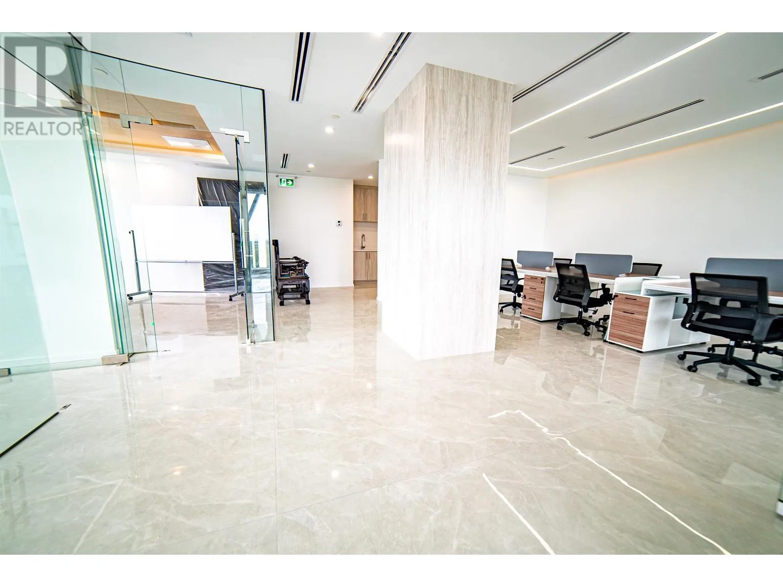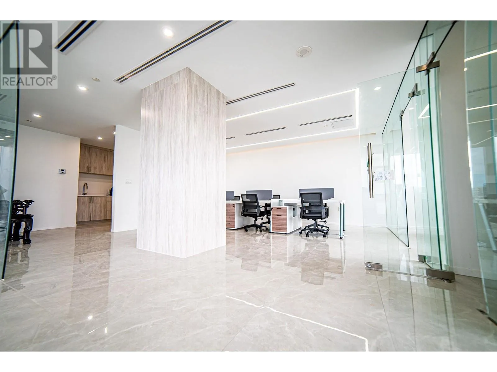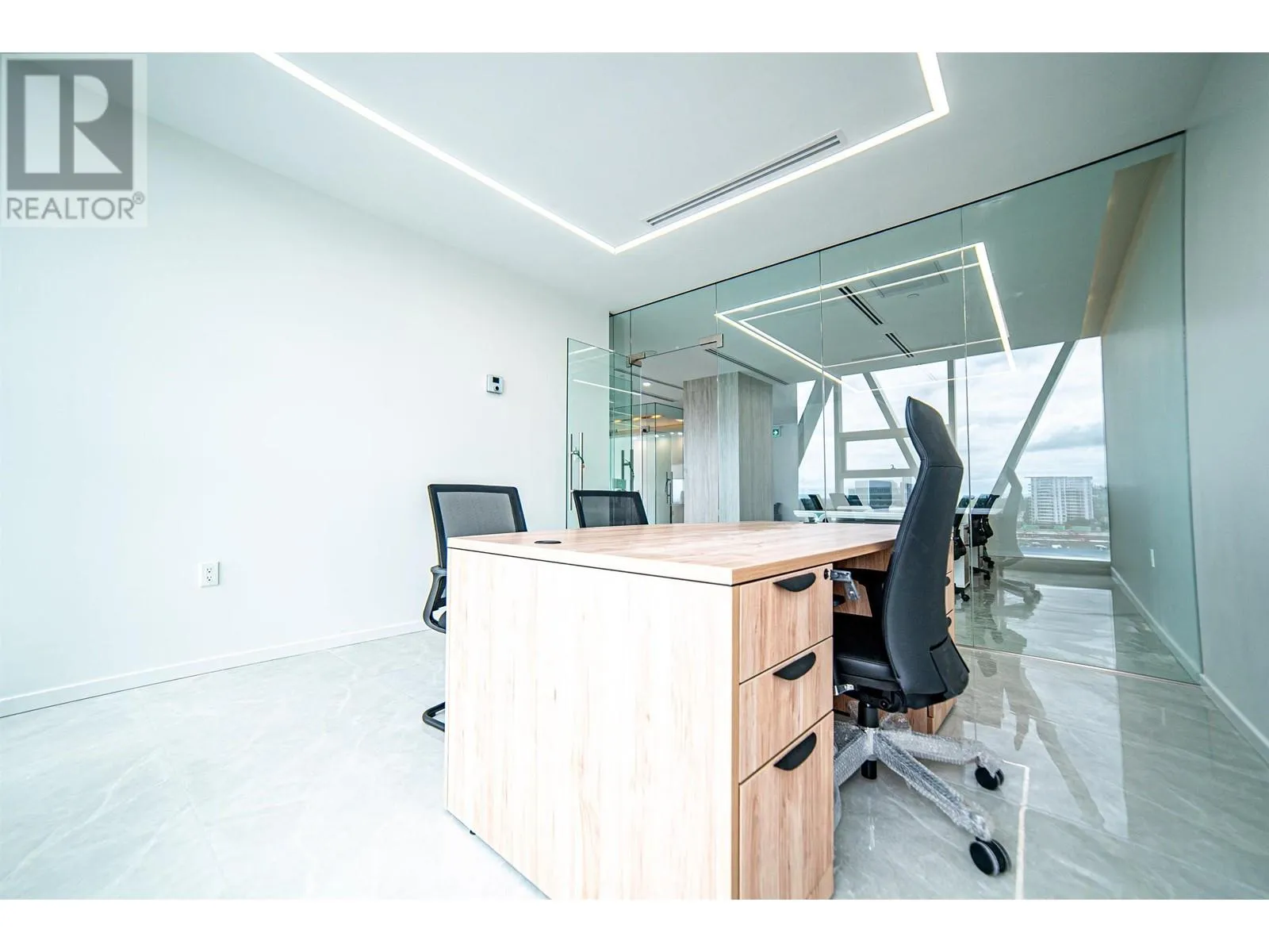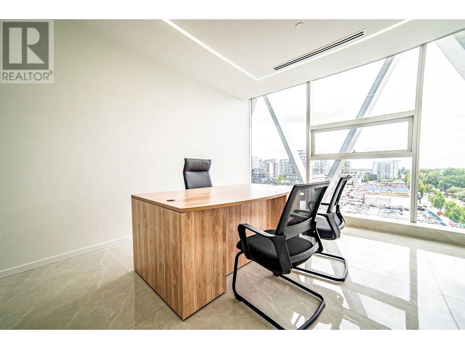 Exquisite office space located across from Richmond Shopping Center, conveniently accessible. Situated on the 9th floor, the 1672sqft office space faces southwest with unobstructed panoramic views. The luxurious flooring features large marble tiles, creating a spacious and bright atmosphere. The office includes three private manager's offices and a meeting room, with a large communal area suitable for 6-8 people to work collaboratively. The office is also equipped with a pantry and storage room. 2 parking stalls included, side by side (id:27476)