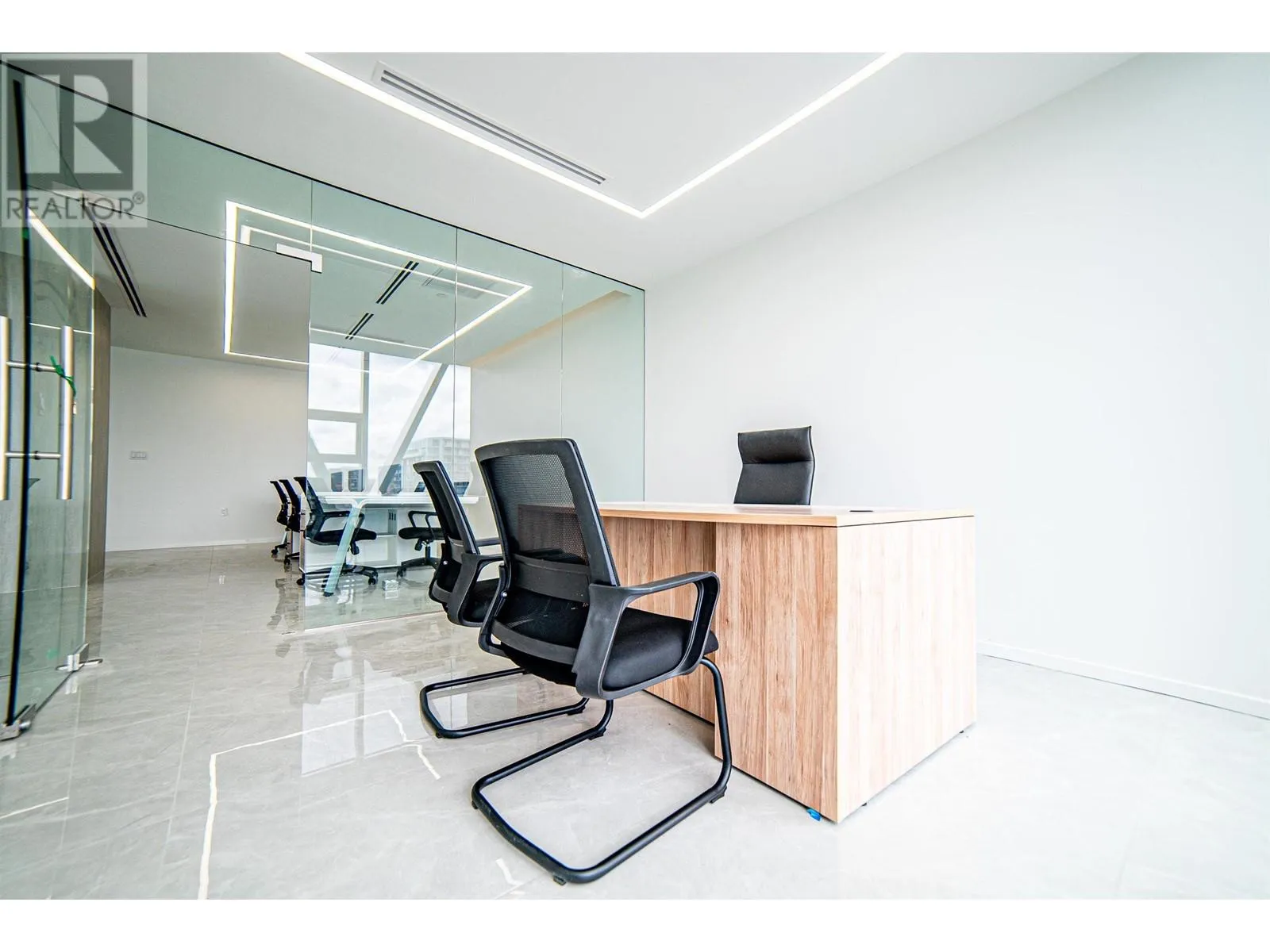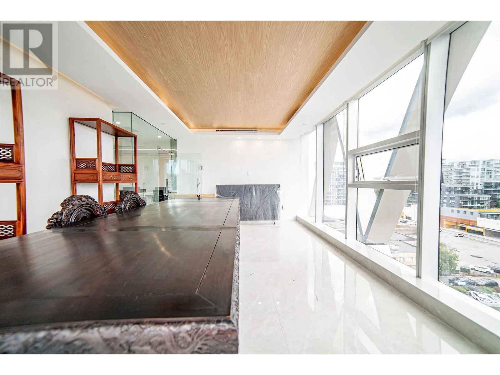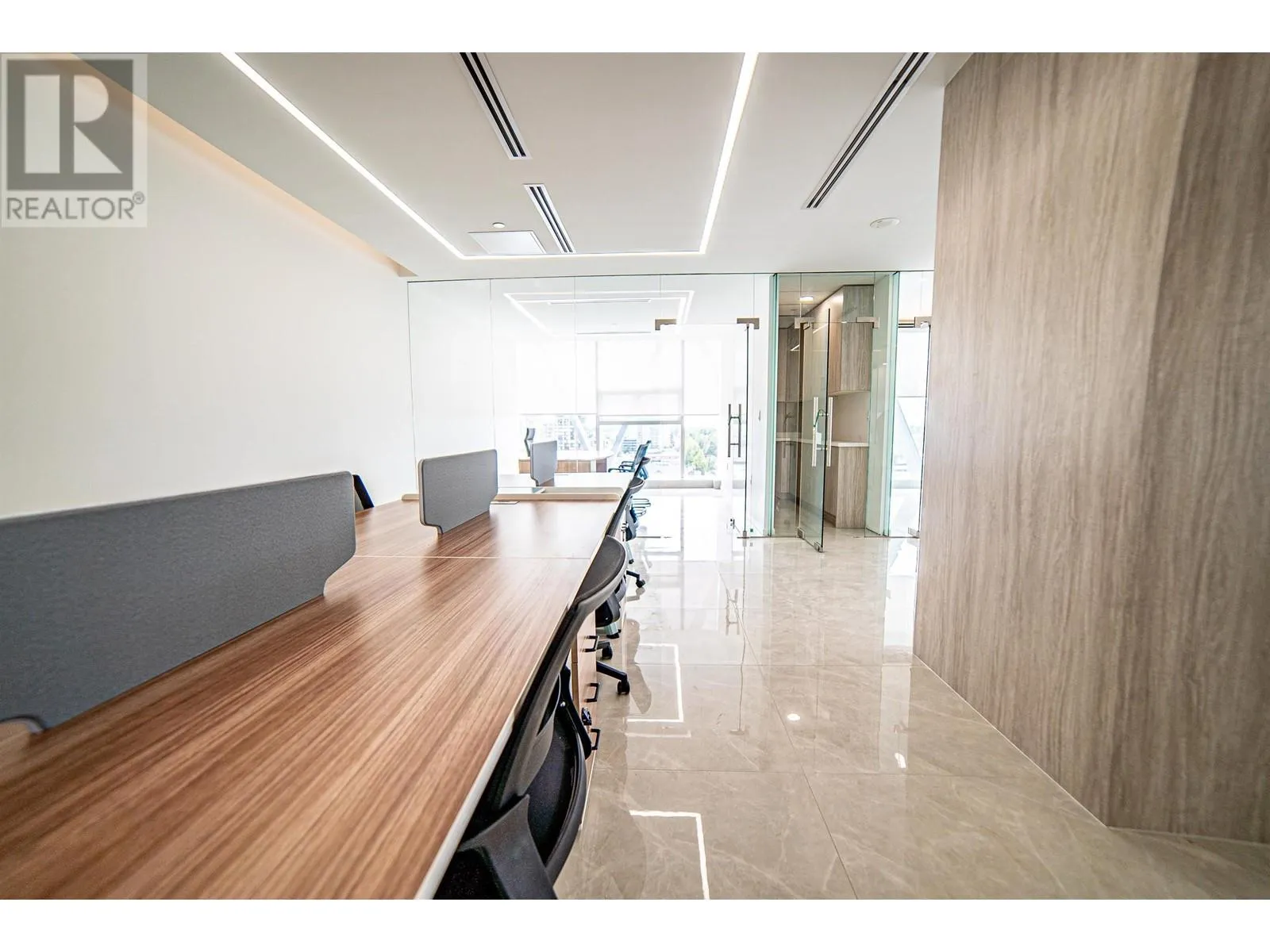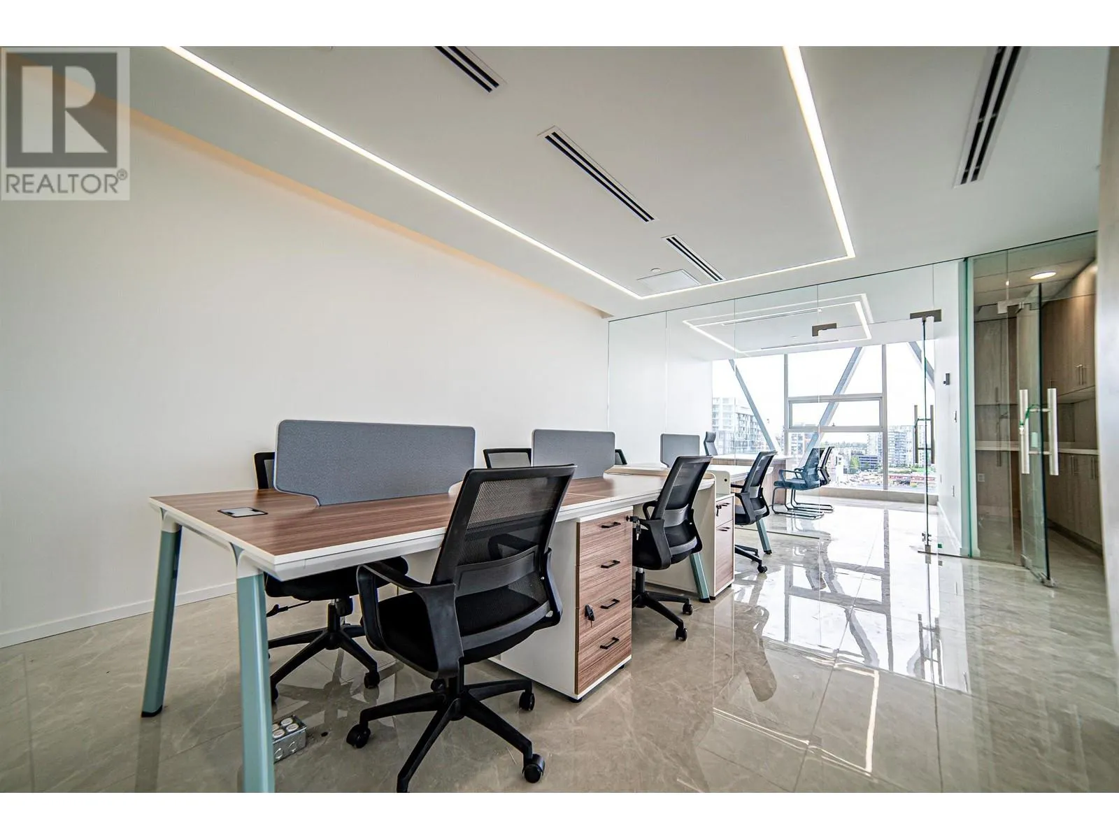 Exquisite office space located across from Richmond Shopping Center, conveniently accessible. Situated on the 9th floor, the 1672sqft office space faces southwest with unobstructed panoramic views. The luxurious flooring features large marble tiles, creating a spacious and bright atmosphere. The office includes three private manager's offices and a meeting room, with a large communal area suitable for 6-8 people to work collaboratively. The office is also equipped with a pantry and storage room. 2 parking stalls included, side by side (id:27476)