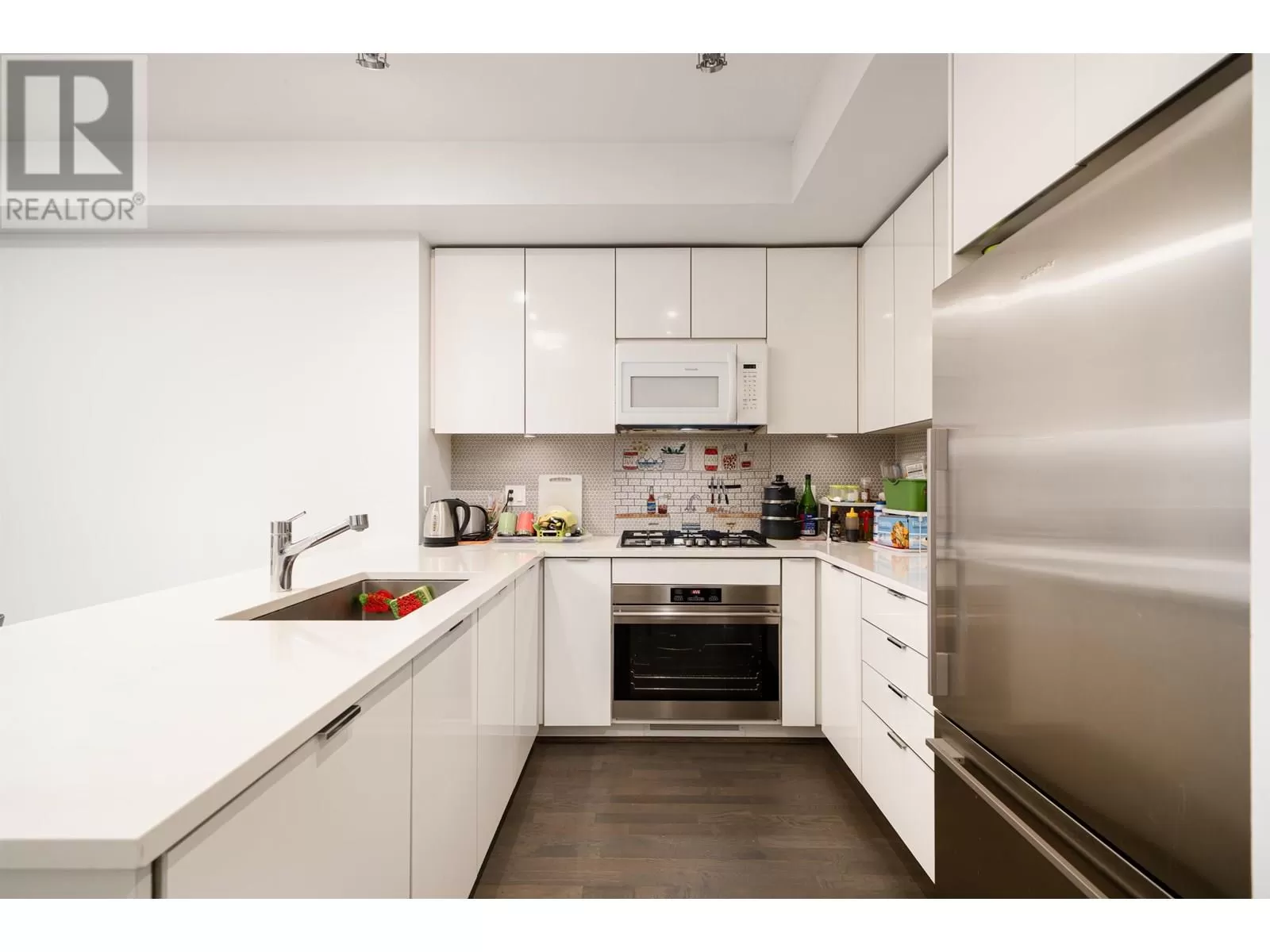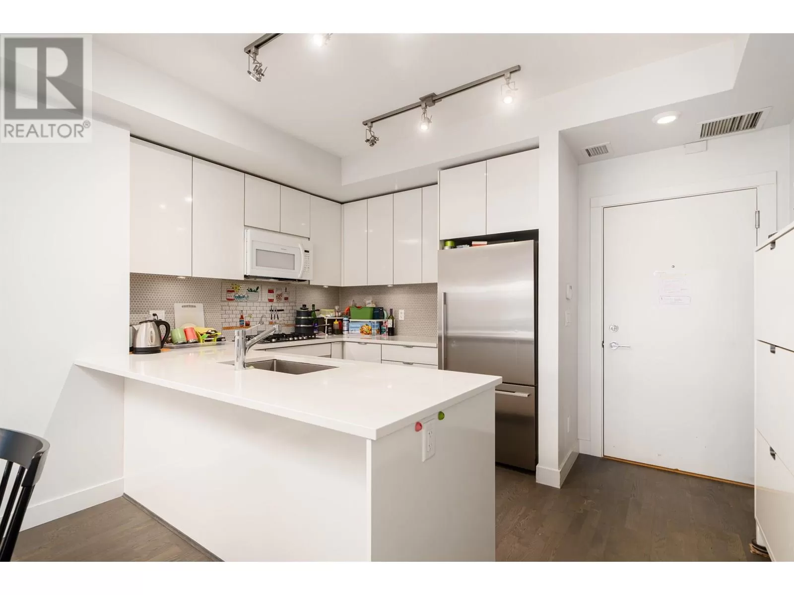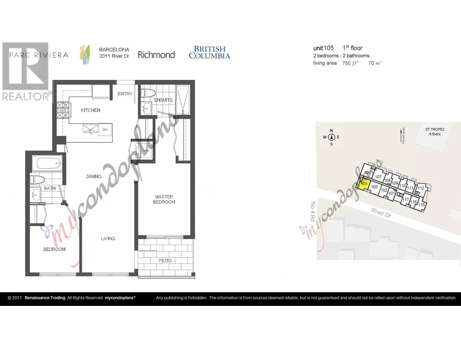 Sep 6~7 Open house Sat~Sun 2-4 pm. Stunning south-facing furnished unit in the desirable Parc Riviera community! This spacious 2-bedroom, 2-batch condo offers a bright, open layout with 9' ceilings, a modern kitchen featuring quartz countertops, stainless steel appliances, and a gas stove. Enjoy engineered hardwood floors in the living and kitchen areas, plus geo-thermal heating and air conditioning for year-round comfort. Large balconies and ample windows bring in plenty of natural light. Includes two parking stalls. Resort-style amenities: indoor pool, gym, hot tub, party room, outdoor BBQ, and more. Steps from parks, riverfront deck, playground, and scenic dyke trails. Just two blocks to an elementary school and a 12-minute walk to Canada Line Bridgeport Station! (id:27476)