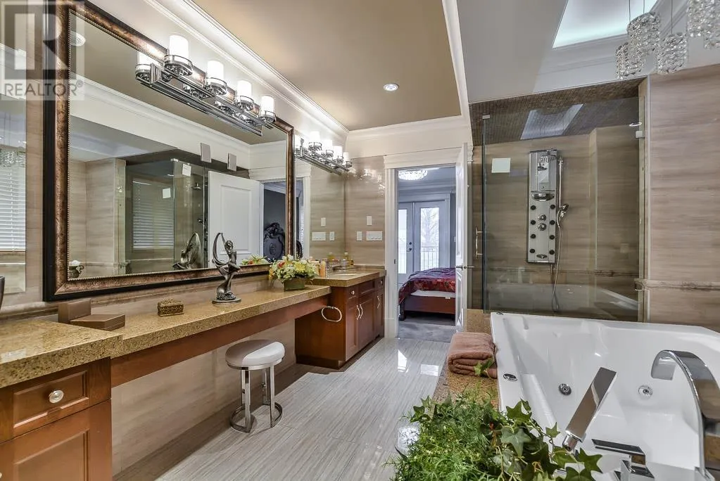 Very Unique outstanding custom built Mediterranean Style home in the most prestige Stevenson North area overlook the ocean. Corner lot, all stoned ecorated 3 level plus a separate accessory building close to 4500sq interior and over 2100sq out door space. Luxury finishing inside & out with 16'4 ceiling in the living and dinning area, custom made library, elevator, dome ceiling, gym, home office, home theater, nanny suite, high tech alarm system, lots of LED color lighting, 900sq huge patio at the back; Every room has its own ensuite and balcony plus roof top deck with fantastic ocean view, total deck area is over 1200sq made this home so unique that you never see in Richmond. School catchment: Steves Elementary &Boyd Secondary and quite, safe & friendly neighborhood walk distance to Ocean. (id:27476)