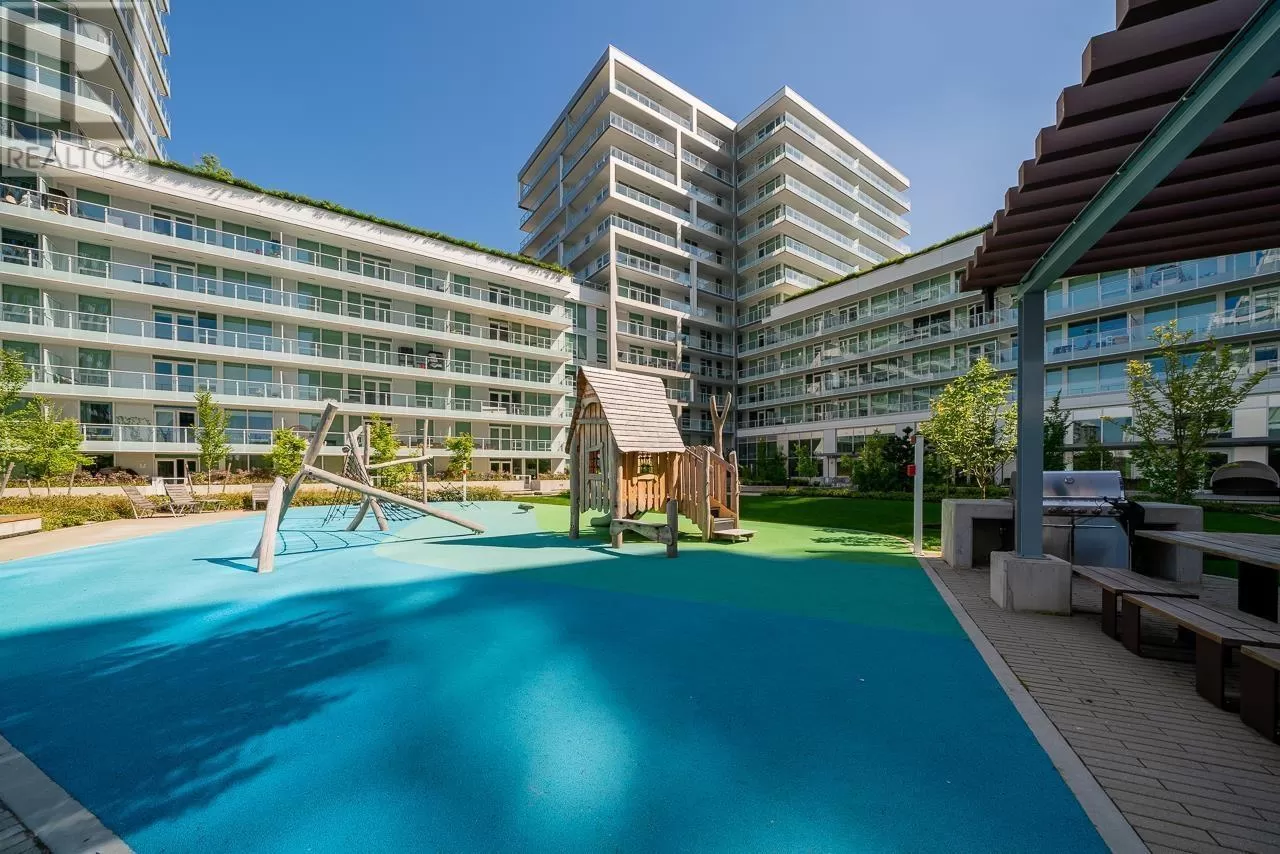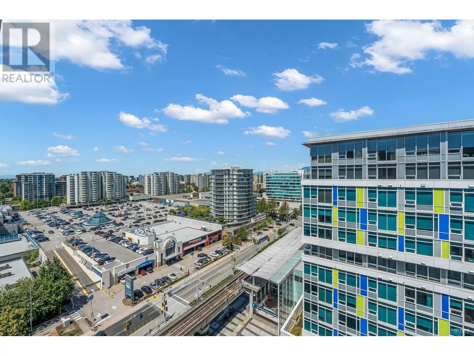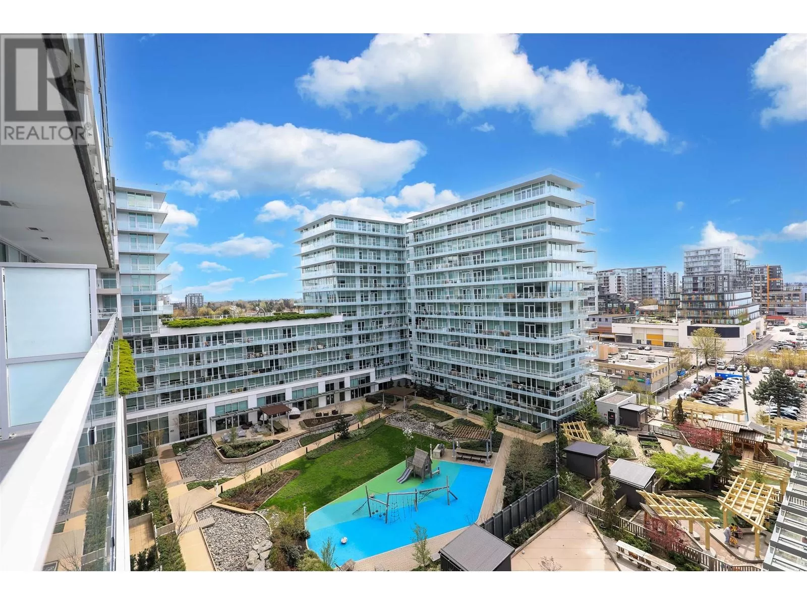 Welcome to The Paramount - Modern Living in the Heart of Richmond! This 3 years old south-facing 1-bedroom + Den unit features an open-concept layout, top-quality finishes, A/C, quartz countertops, 9' ceilings, and a huge south-facing BALCONY with panoramic city views, along with sightlines to the beautifully landscaped roof top playground.. Great layout with bright interiors, large windows, and a functional den for work or storage. Exceptional amenities include a fitness centre, sauna/steam rooms, party room, meeting room, and outdoor play area. Steps to SkyTrain, shopping, restaurants & more. 1 parking included. School catchment: Cook Elementary & MacNeill Secondary. (id:27476)