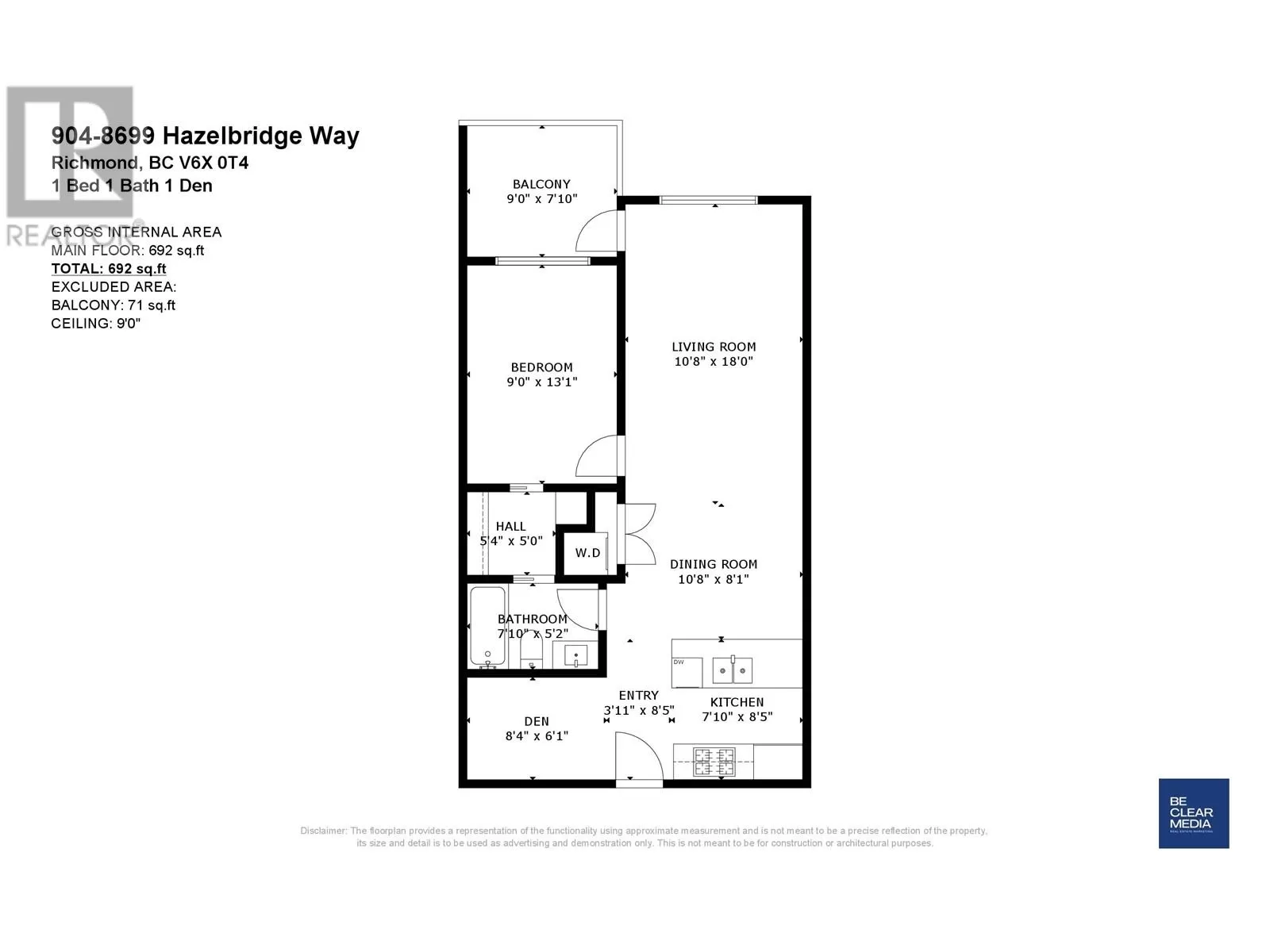 ATTENTION INVESTORS & FIRST TIME HOME BUYERS. Discover this 692 sqft 1 bed + Den condo located in Central Richmond. South facing unit, with Chef's kitchen, 9"ft ceiling, full size appliances, air conditioned, spacious living area, XL bedroom enough for a king size bedroom with a spacious walk in closet. The location is unbeatable; just minutes away from malls, community centres, schools, parks, shopping centres, reactional facilities, etc. 1 Parking Stall. Just 5 minutes walking distance from the Capstan Skytain station. (id:27476)