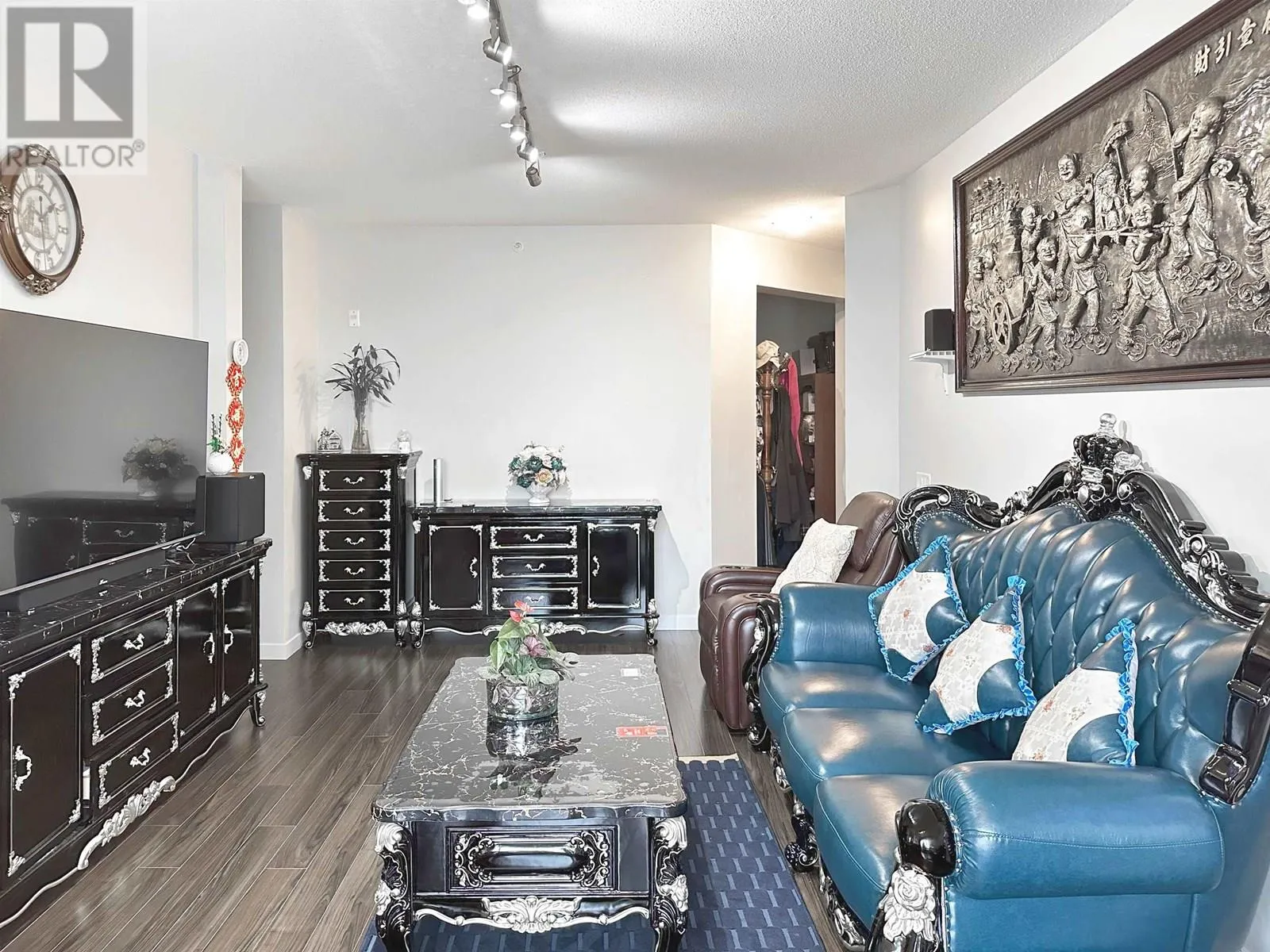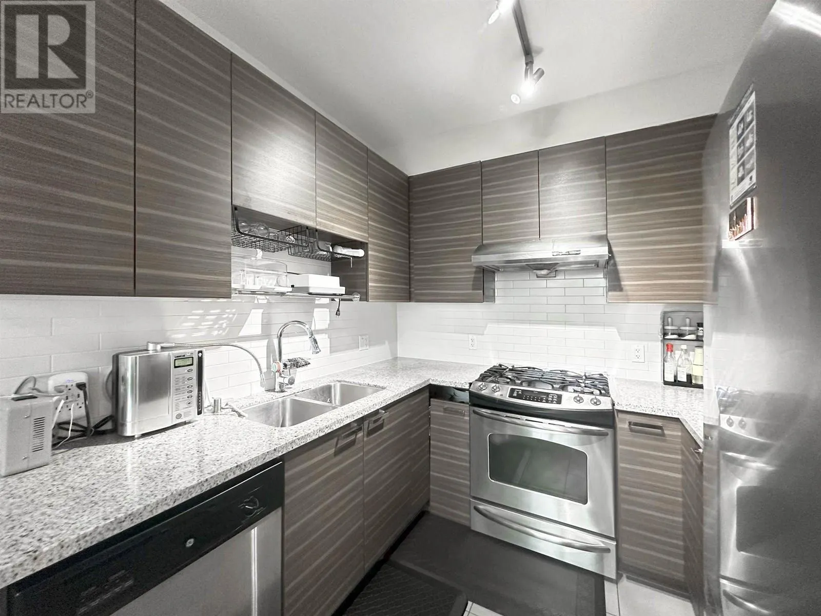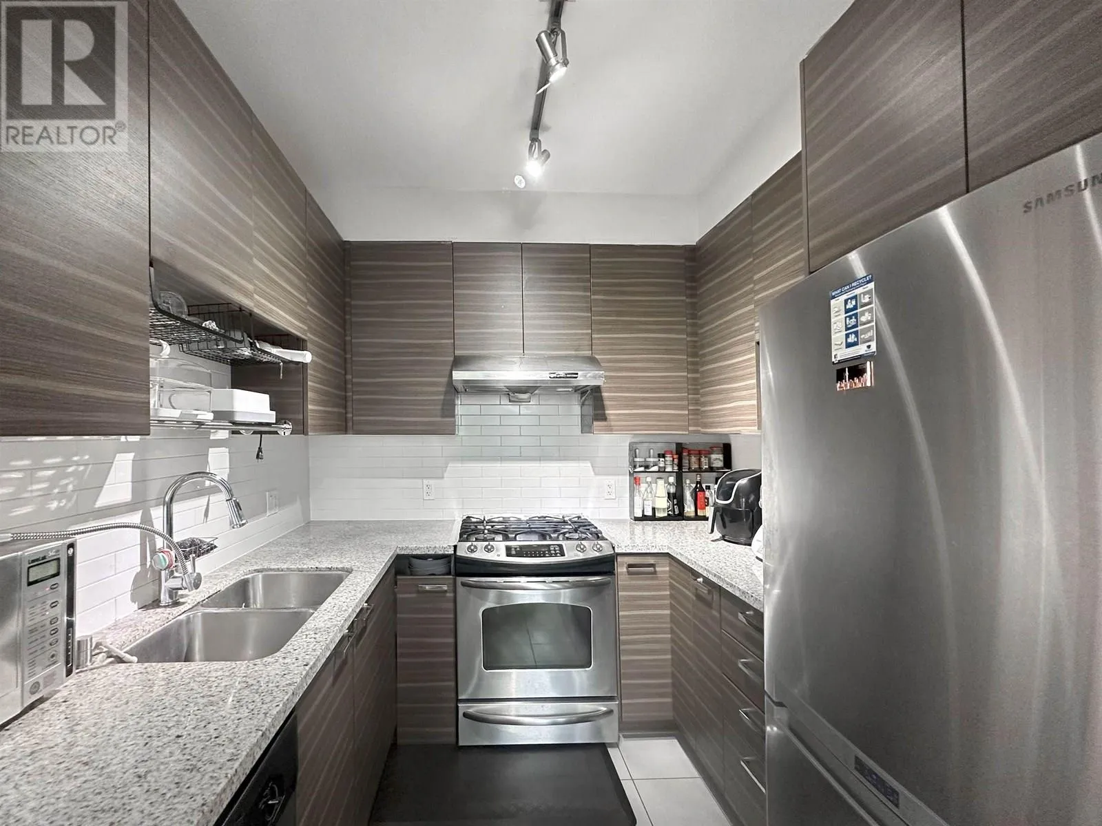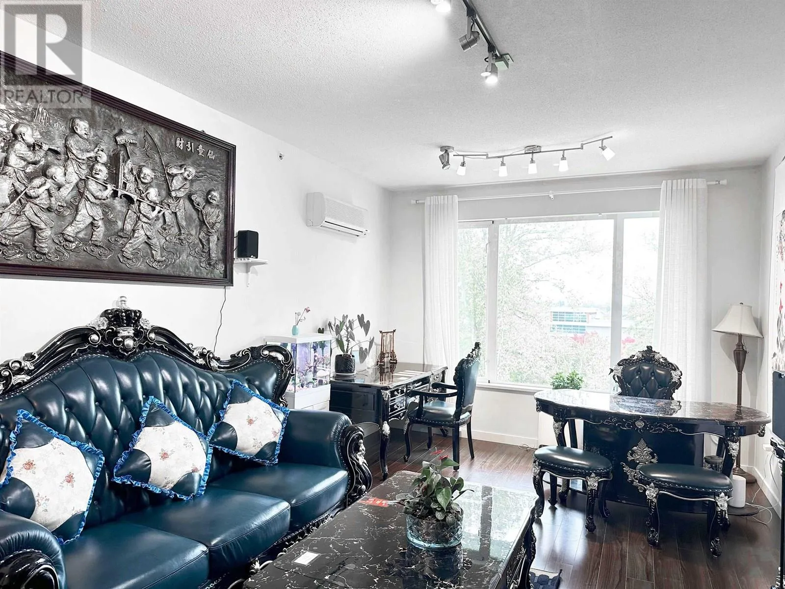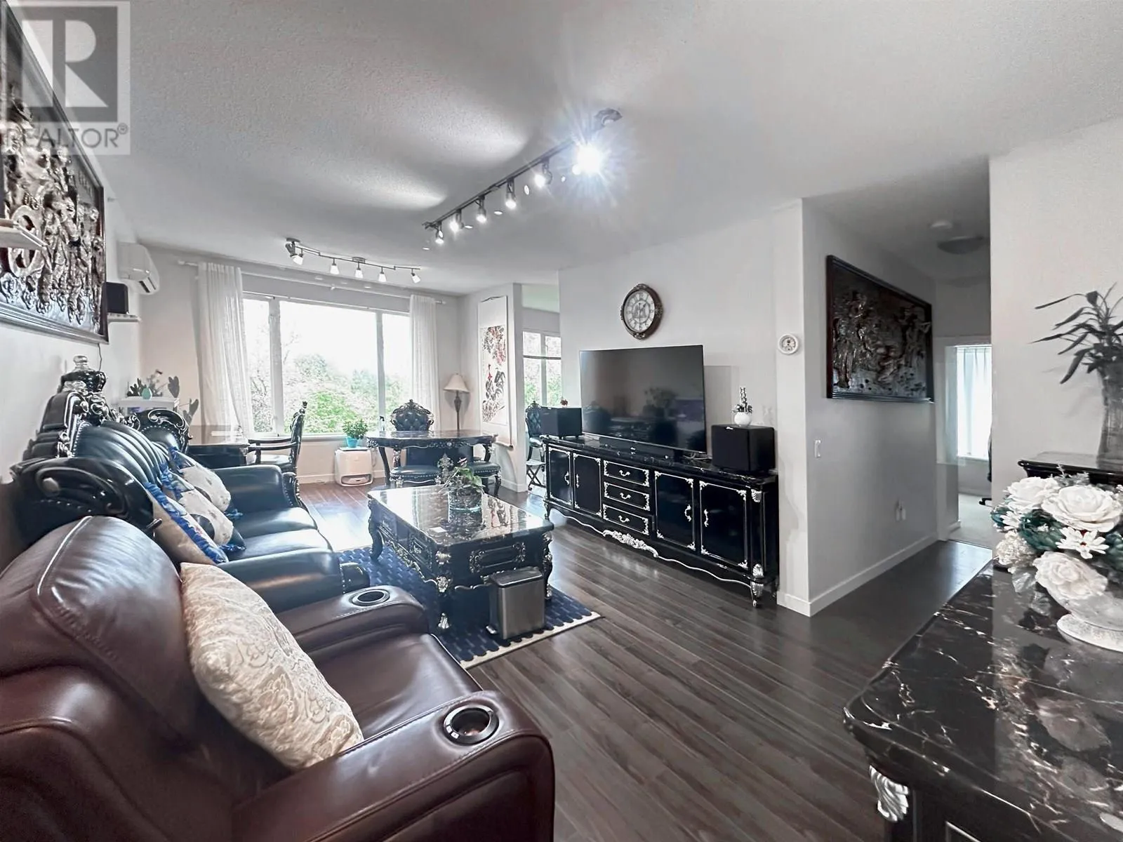 Discover luxury living in this well-maintained South-East corner unit at Mayfair Place by Polygon. With 9' ceilings and air conditioning, this bright, open space perfectly balances comfort and elegance. Enjoy the private clubhouse with great amenities, including an outdoor pool and whirlpool spa-ideal for relaxation and recreation. The unit comes with two adjacent parking spots, providing ample rooms for both vans and pickup trucks. Conveniently located just steps from Tomsett Elementary, transit, restaurants, Aberdeen Centre, and Walmart. Warm water car washing equipment, vacuum and pump available year-around. Make this exceptional place your new home today! (id:27476)