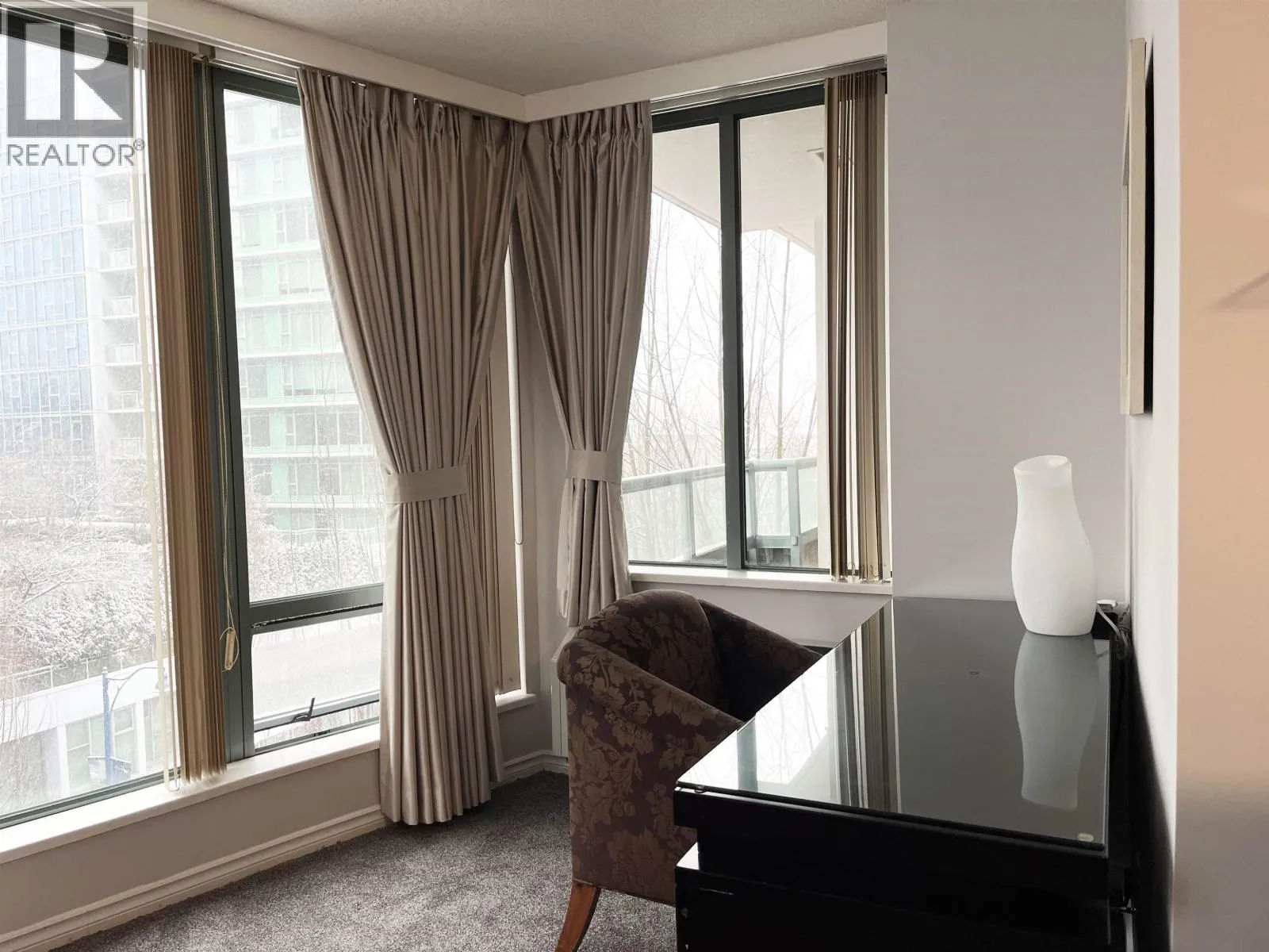 Unique hotel Strata, Executive Tower in Richmond Minoru Lake & Park. Fantastic air-conditioned 1 bedroom plus Den boasts spacious living and dining room, ceiling-to-floor window, in-suite Laundry, Secure Parkade & Storage Locker. Upgrade in Dec 2022 with new curtain, carpet, washer/dryer, dishwasher, stove,hood vent. Amenities include Indoor Swimming Pool/Hot Tub/Gym/Garden Terrace on the 8th Floor. Step out your front door & Eat/Shop/Play. A few minutes walk to Richmond Centre, skytrain station, T&T, and public transit. Nothing to do but move in. 1 parking on 6.5th floor and 1 locker. Ideal for first-time home buyers or investors . (id:27476)