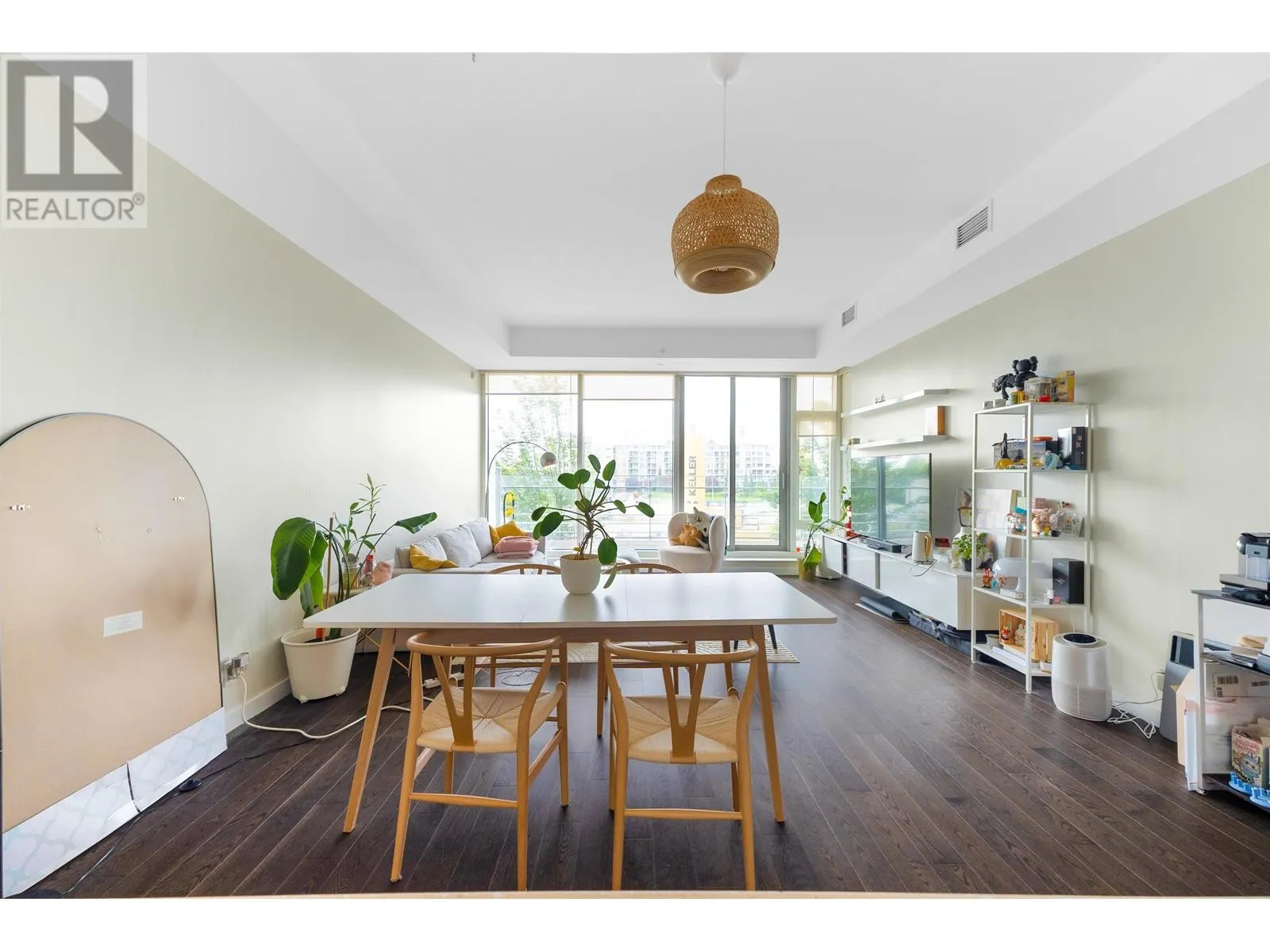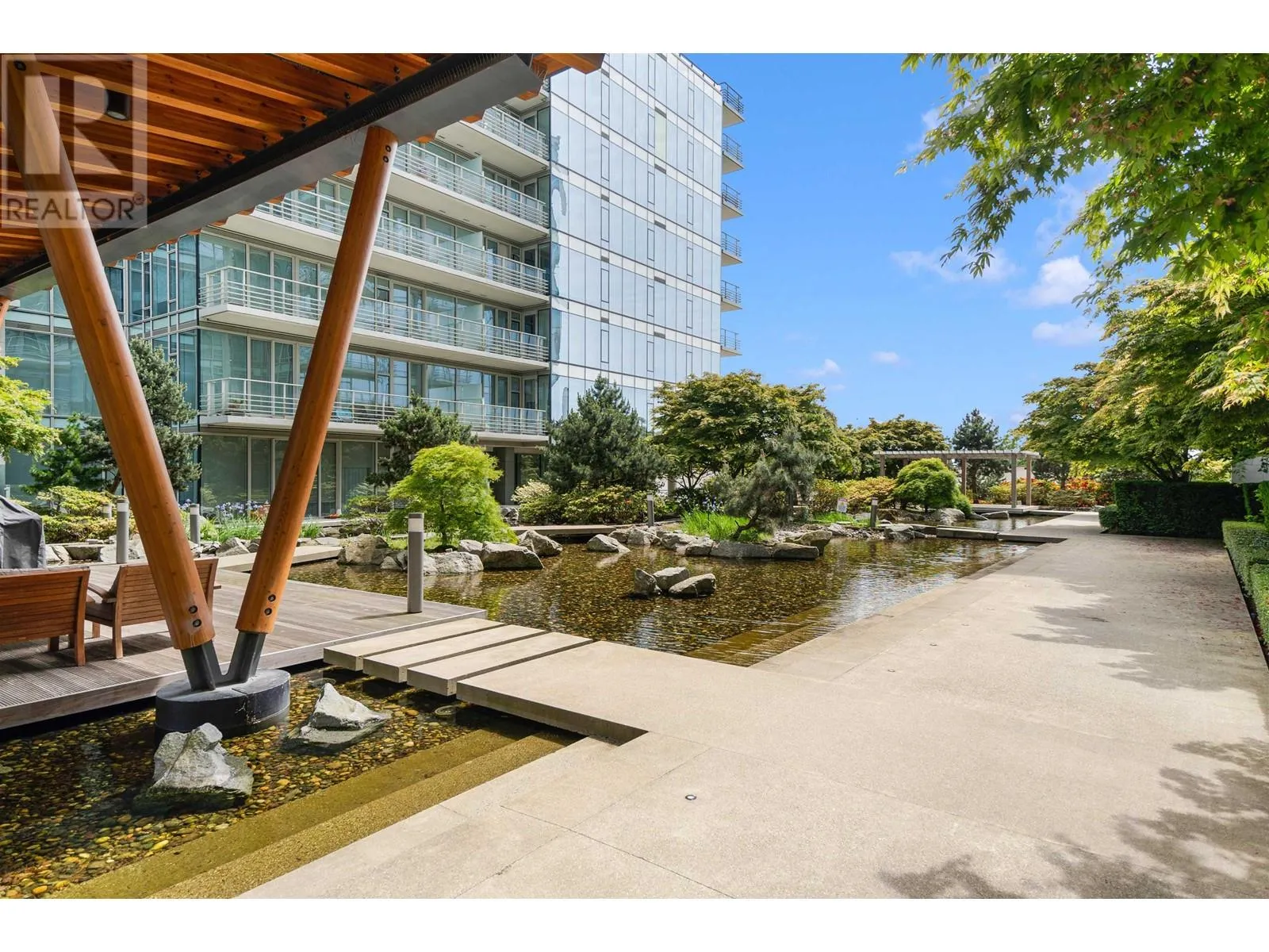 Discover luxury living at River Green, Richmond's premier waterfront residence near the Olympic Oval. This spacious 1,283 square ft 2-bedroom + den home offers an airy, open layout with soaring 10-foot ceilings and a generous 309 square ft private patio. Enjoy top-of-the-line Miele appliances, central A/C, and elegant finishing throughout. Indulge in world-class amenities including a 25-meter indoor pool, steam & sauna rooms, private theatre, virtual golf, fully equipped gym, music & study rooms, billiards lounge, and more. 24-hour concierge service ensures convenience and security. Located within walking distance to T&T Supermarket and local dining. Book your private showing today! (id:27476)