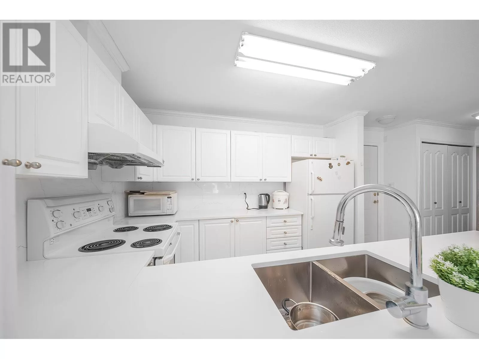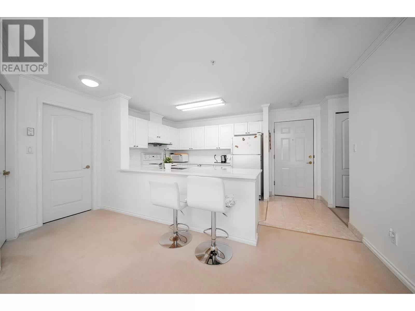 Enjoy Waterside Dover Crescent! This East Facing bright, partially renovated, and spacious 2-bedroom, 2-bath condo is perfect for your dream home, surrounded by cherry flowers. This home has been kept in mint condition. Its layout has an open kitchen with quartz countertop, gas fireplace, in-suite laundry, 2 large bathrooms with upgraded quartz countertop, and a covered balcony with great water and mountain view. 1 secured under building parking, 1 storage locker. A very well-maintained complex with a steel Roof, a Party room, a gym, tennis courts and a basketball court. Steps to the dyke, trails, shopping plaza at Terra Nova, and Richmond oval. Only 1 cat allowed, no dogs allowed. (id:27476)