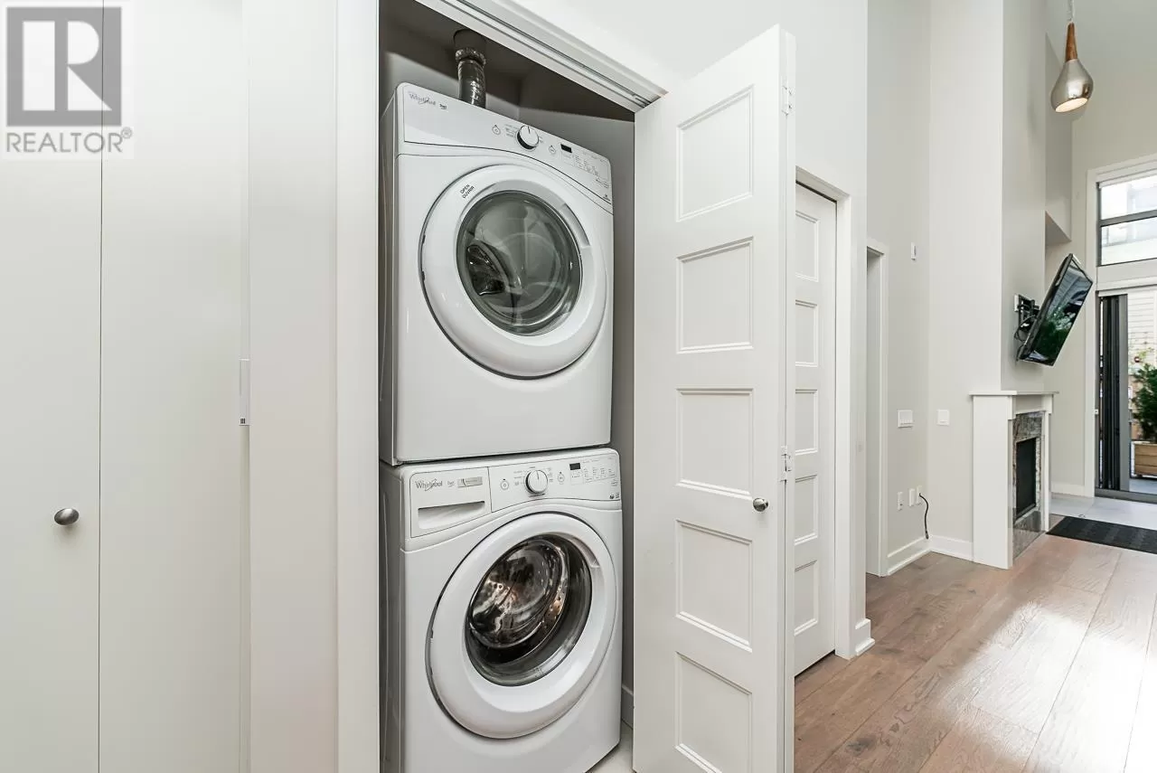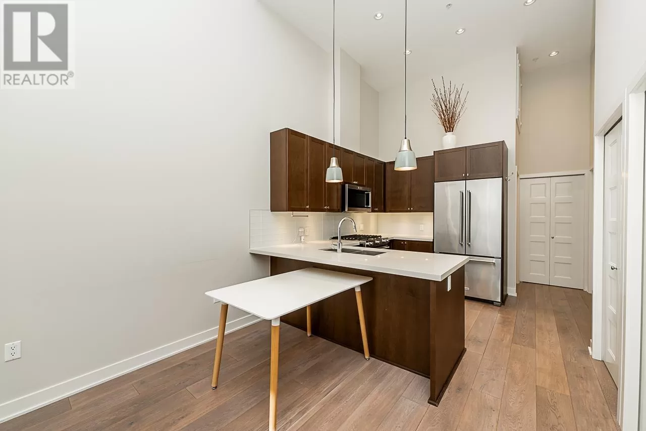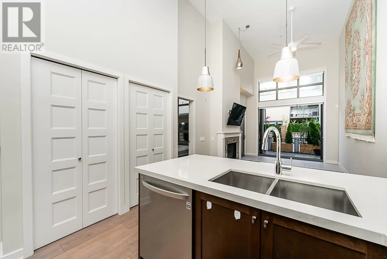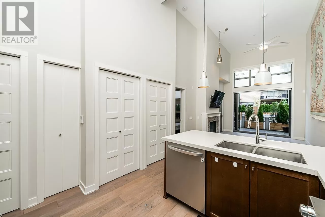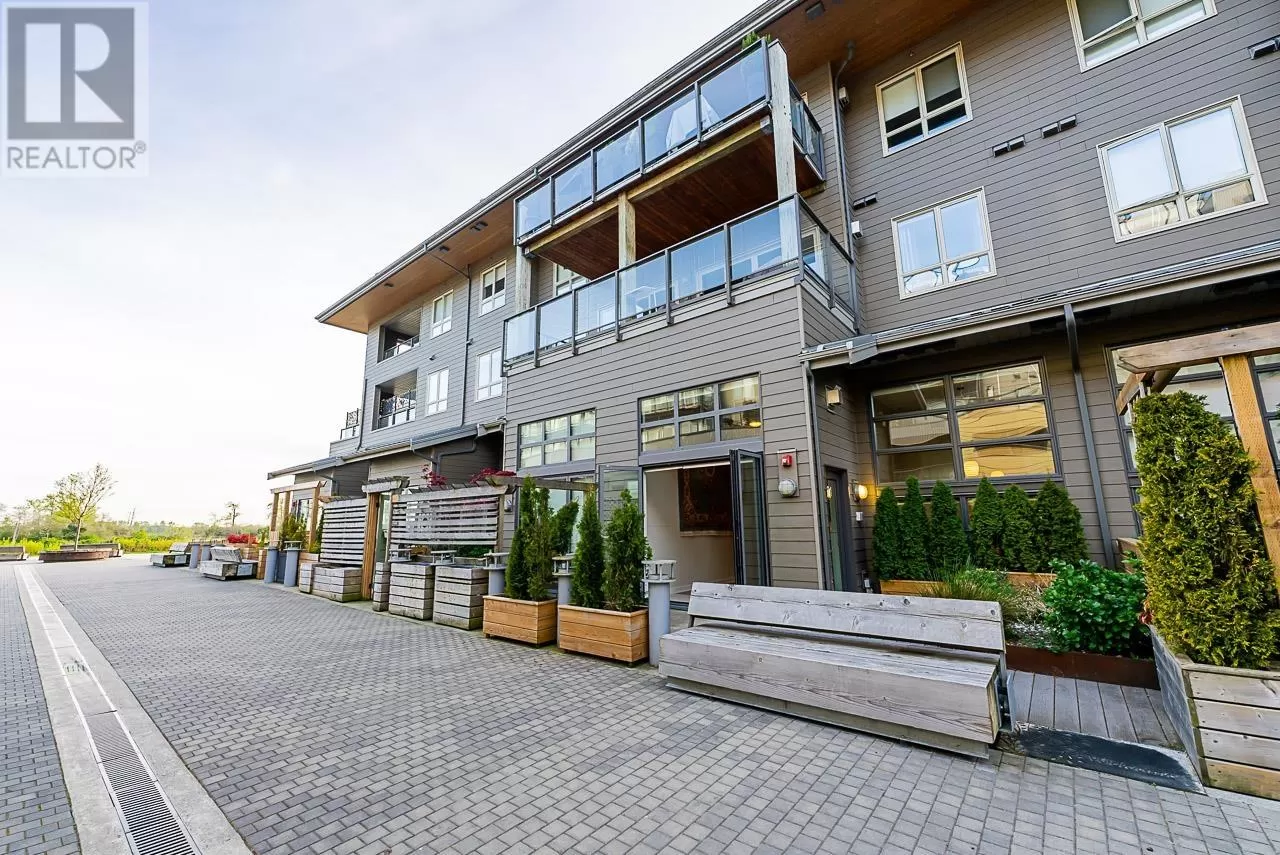 Welcome to "The Pier" in Steveston´s rarely available London Landing! This east-facing ground-level 1 bed + den unit features soaring 15´ ceilings and floor-to-ceiling windows that flood the space with natural light. With just under 750 sq ft, it offers 2 full bathrooms, a beautiful kitchen, and a versatile den that can be used as a 2nd bedroom or office. Enjoy seamless indoor-outdoor living with large bi-fold doors leading to your spacious garden patio, complete with a gas hookup. Steps from scenic dyke trails and a brand new waterfront park. Includes 1 parking and 1 locker. Rentals and pets allowed. A truly special home-don´t miss out! (id:27476)
