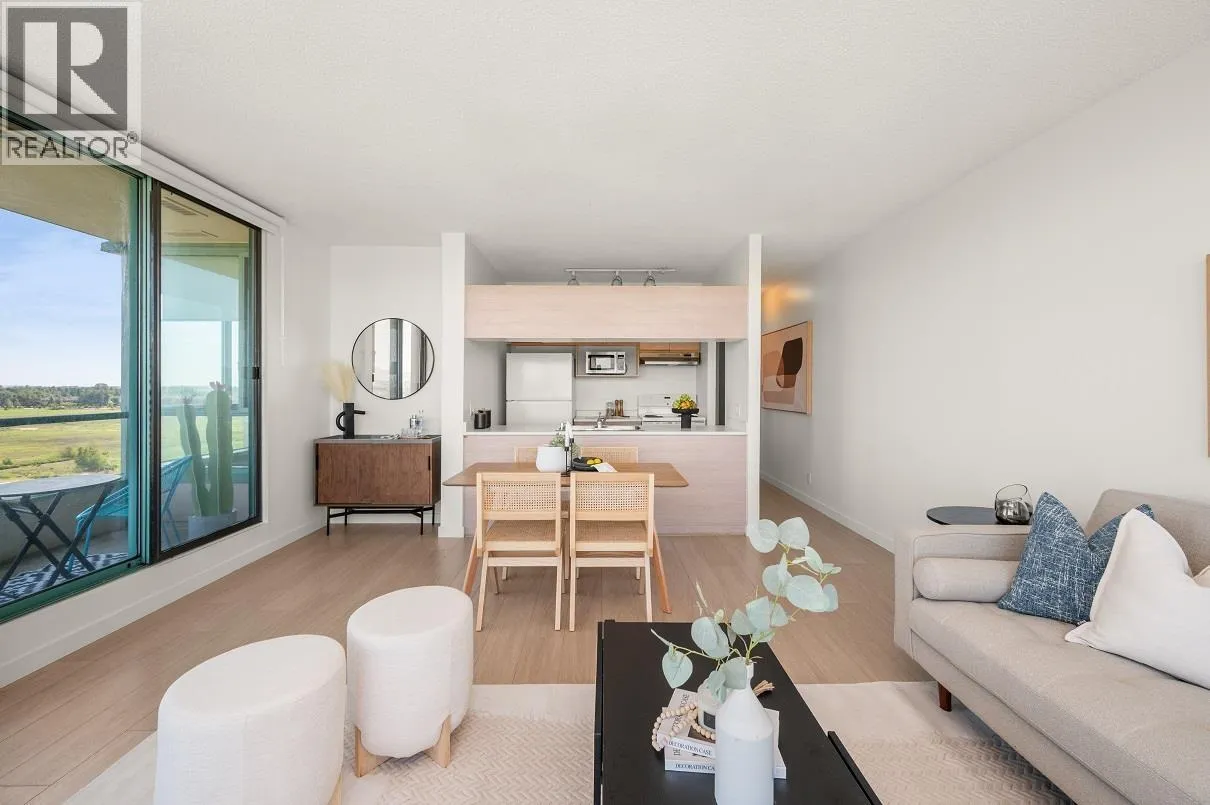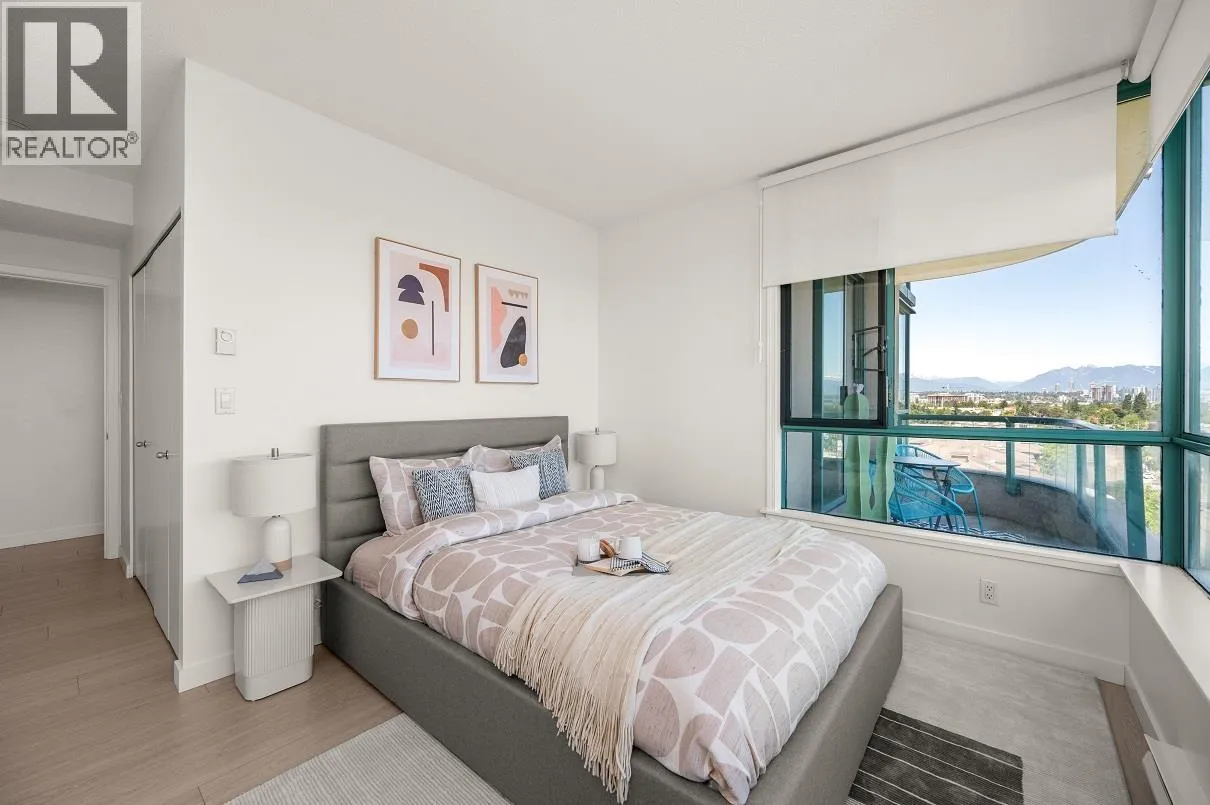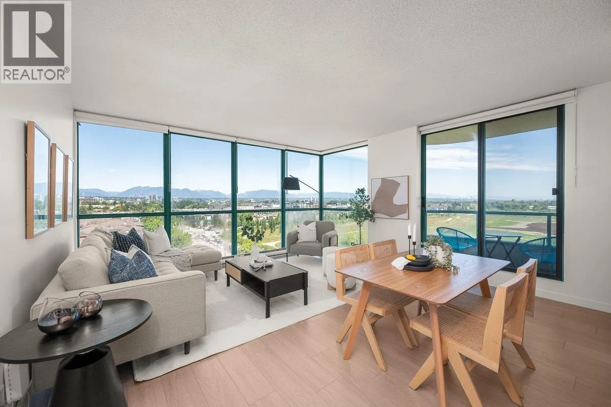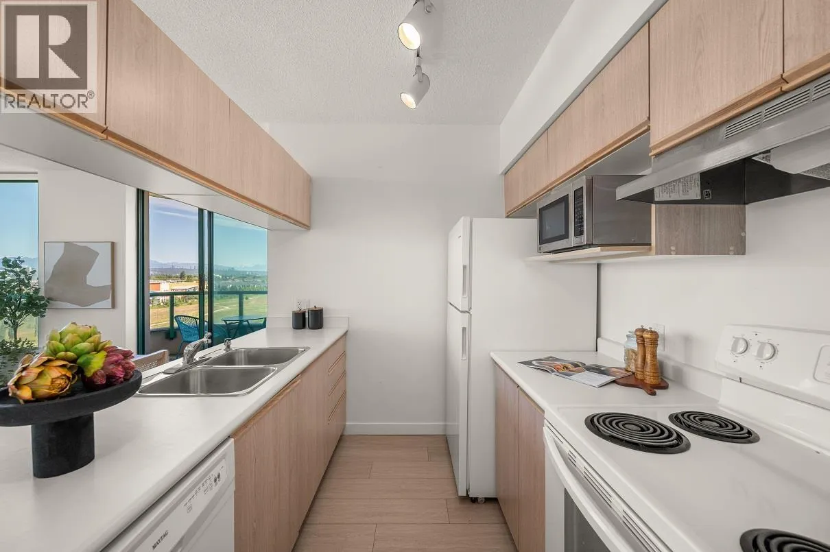 Spacious 1-Bedroom with Park and City Views in the Heart of Richmond Welcome to this beautifully updated one-bedroom home at Centre Pointe, offering 737 square feet of thoughtfully designed living space. Featuring new wood flooring & blinds, and freshly painted throughout making it move-in ready. Expansive windows frame stunning views of downtown Vancouver, Oakridge, Metrotown, & beyond. Ideally located within walking distance of T&T Supermarket, Walmart, and a wide variety of restaurants along Alexandra Rd. You´re also close to the shops at Central at Garden City, Lansdowne SkyTrain Station, and Kwantlen Polytechnic University, a perfect location for both convenience & lifestyle. Offering a full suite of amenities including pool, hot tub, sauna, fitness room & games area. Includes 1 parking & 1 locker, with the option to rent a 2nd parking spot if needed. By appointment only (id:27476)