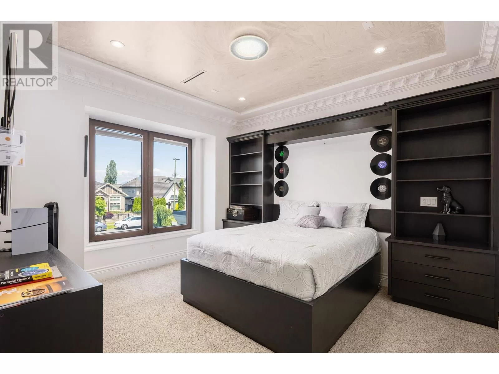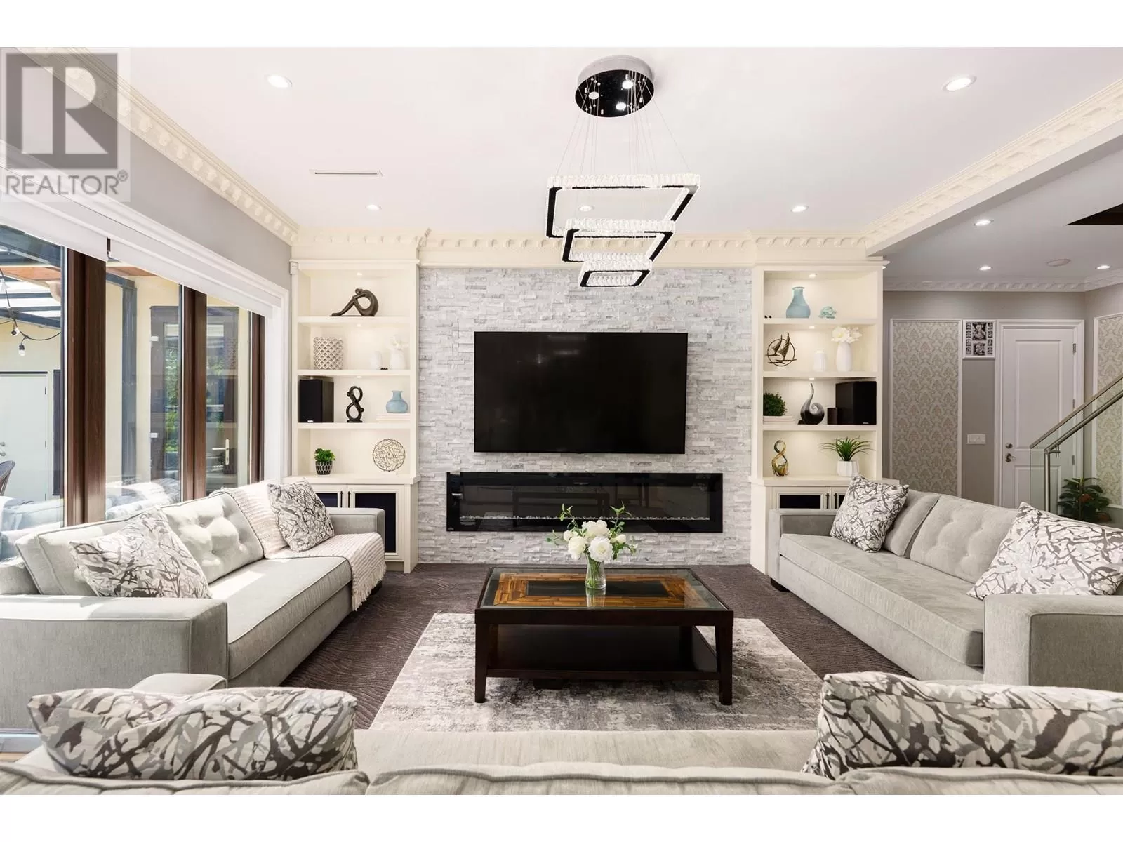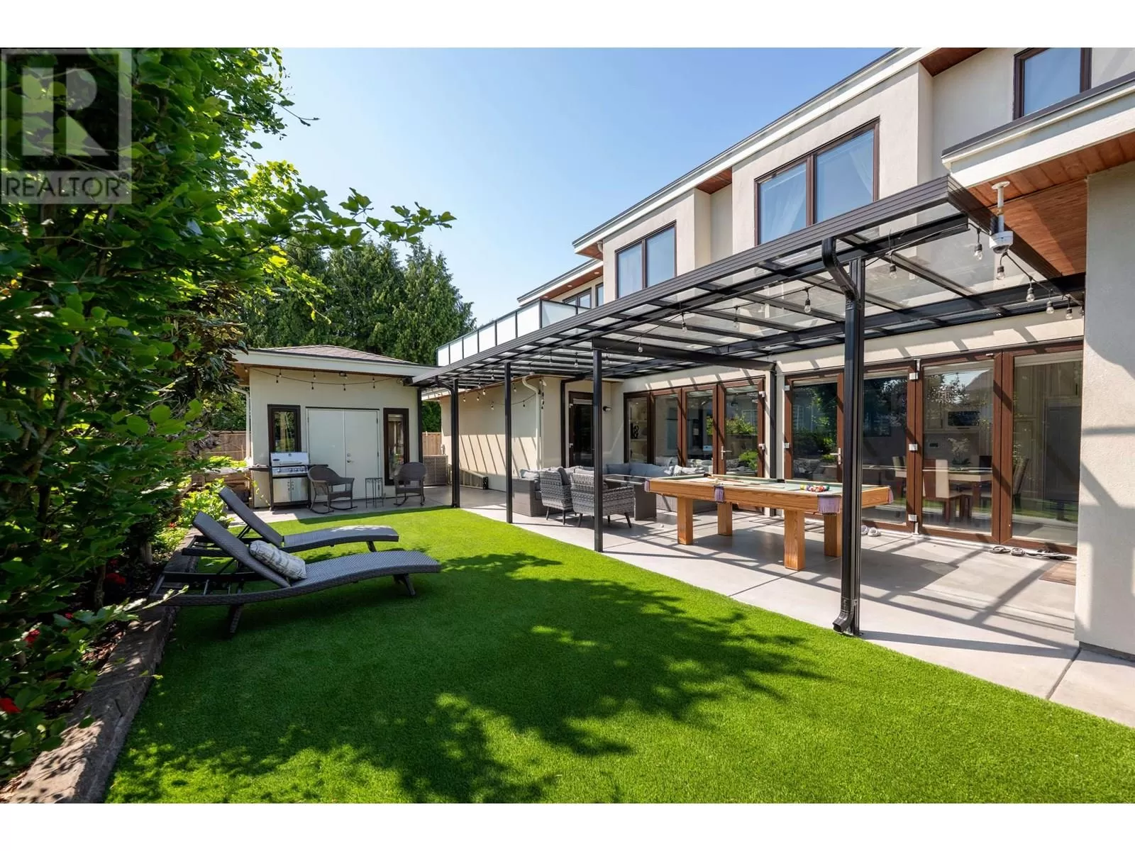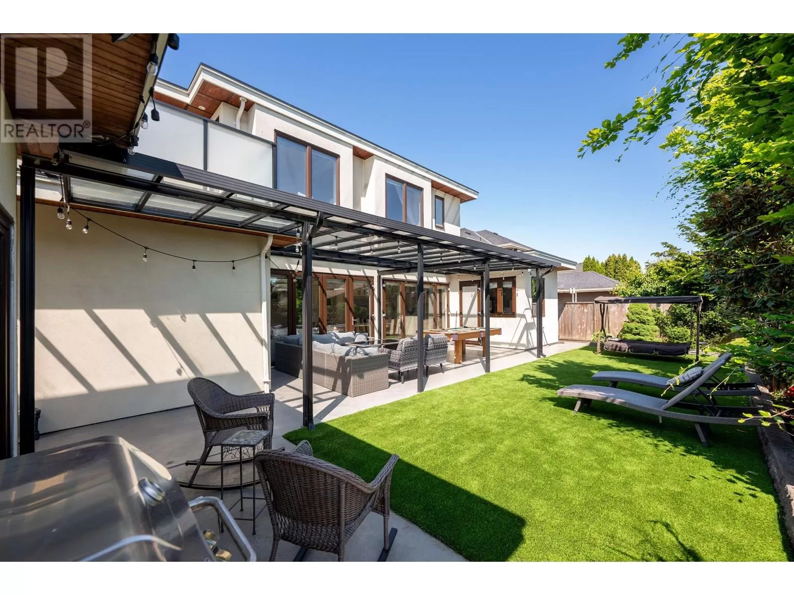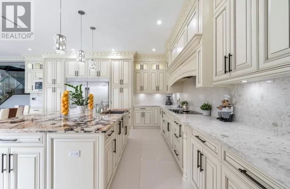 Better than new! This stunning south-facing custom home sits on an 8,713 sqft lot on a quiet street, featuring top-quality craftsmanship throughout. Soaring ceilings in the living and dining areas. Bright and cozy south-facing family room with large German folding patio doors. Main floor media room with full bath can be converted to an ensuite. Legal suite offers great mortgage helper potential. Upstairs boasts four spacious ensuite bedrooms. Equipped with intercom, built-in speakers, and security system. Close to shops, banks, restaurants, schools, transit, and more. A must-see! (id:27476)