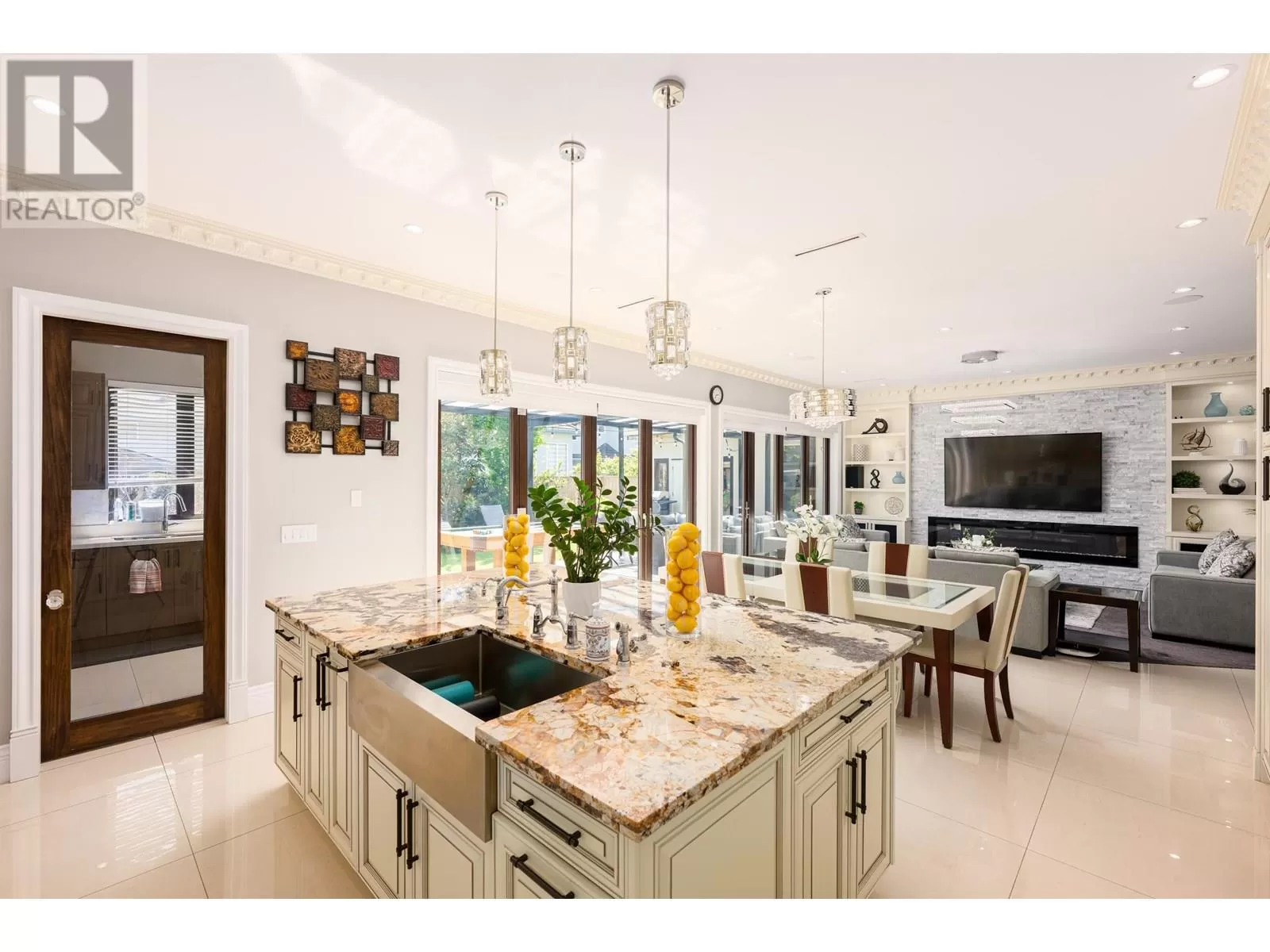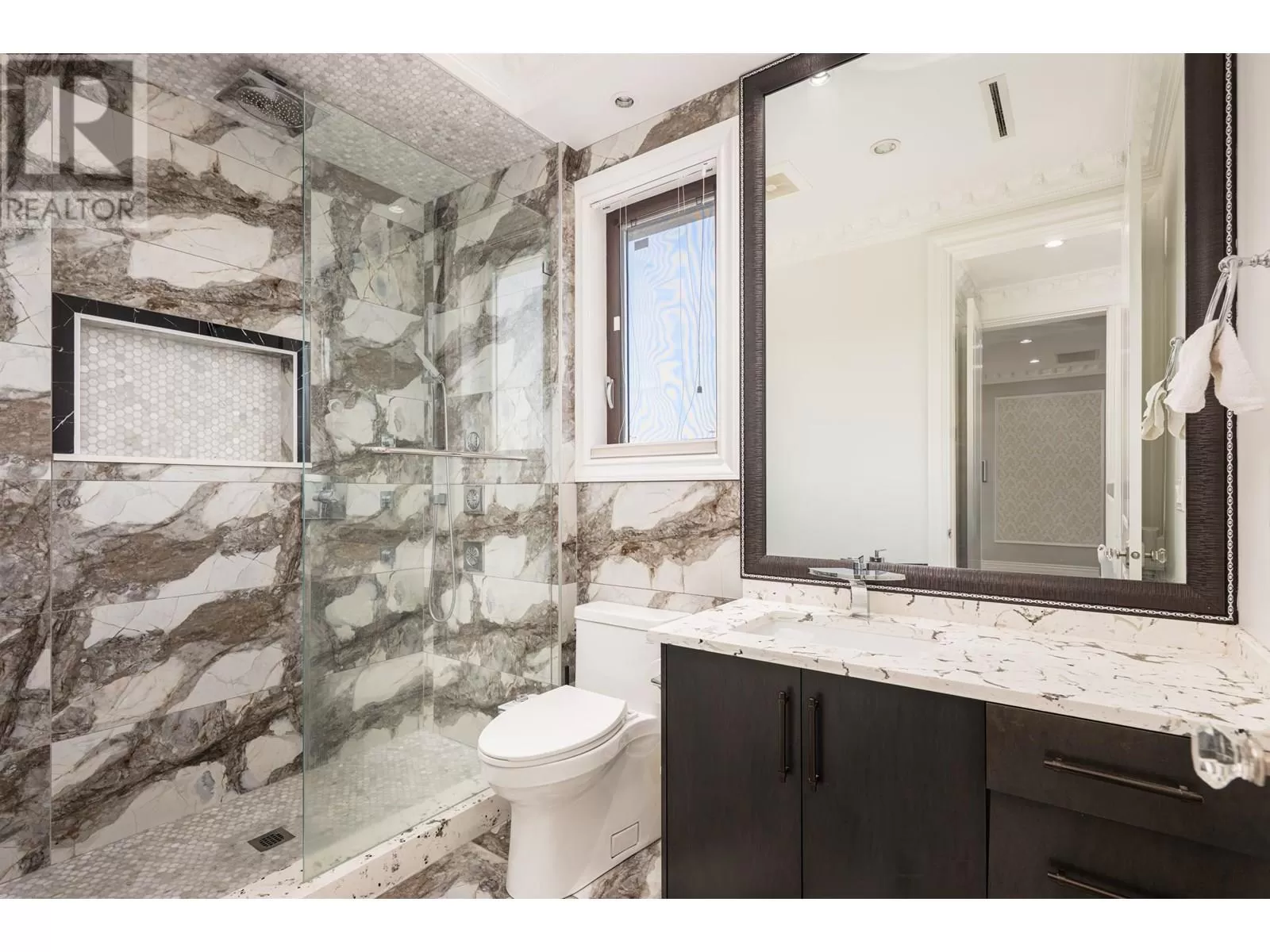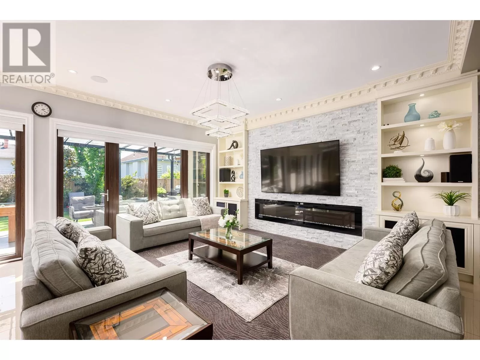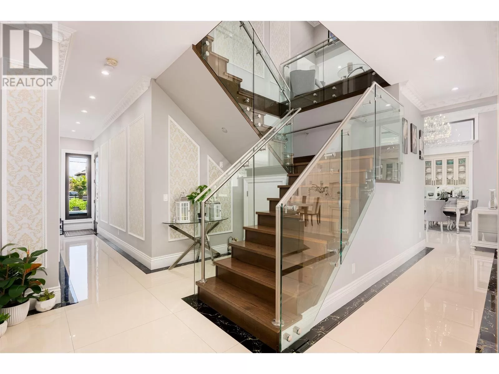 Better than new! This stunning south-facing custom home sits on an 8,713 sqft lot on a quiet street, featuring top-quality craftsmanship throughout. Soaring ceilings in the living and dining areas. Bright and cozy south-facing family room with large German folding patio doors. Main floor media room with full bath can be converted to an ensuite. Legal suite offers great mortgage helper potential. Upstairs boasts four spacious ensuite bedrooms. Equipped with intercom, built-in speakers, and security system. Close to shops, banks, restaurants, schools, transit, and more. A must-see! (id:27476)