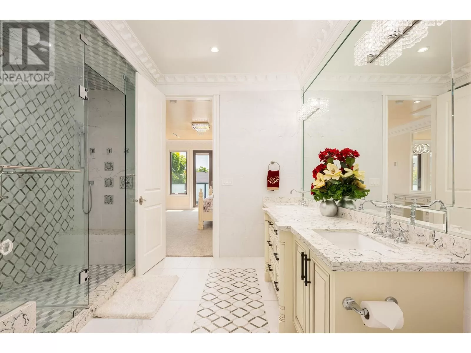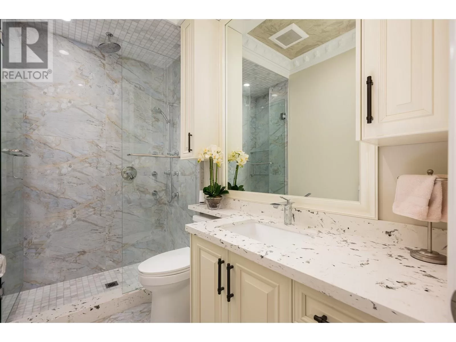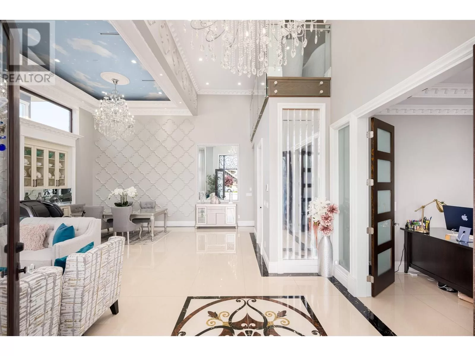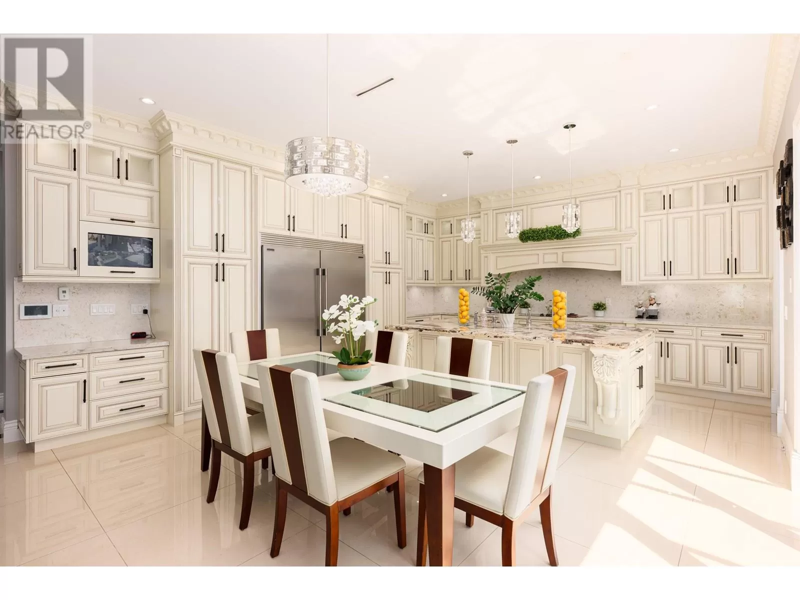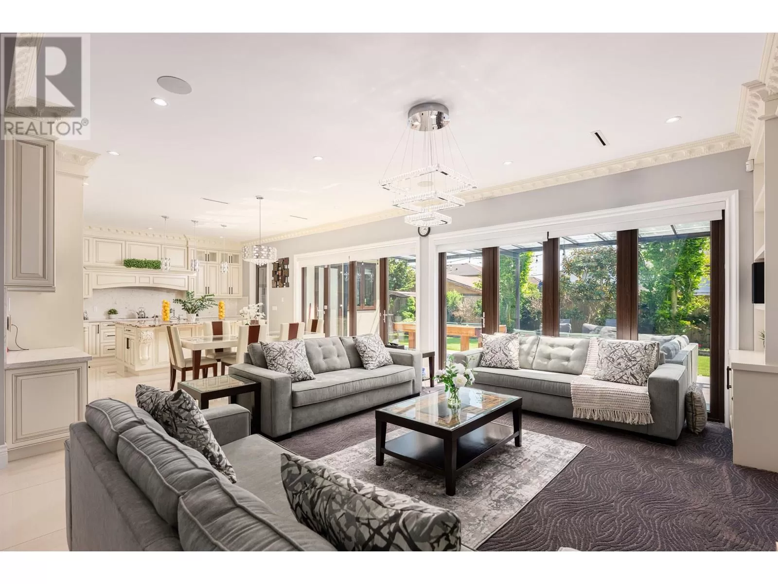 Better than new! This stunning south-facing custom home sits on an 8,713 sqft lot on a quiet street, featuring top-quality craftsmanship throughout. Soaring ceilings in the living and dining areas. Bright and cozy south-facing family room with large German folding patio doors. Main floor media room with full bath can be converted to an ensuite. Legal suite offers great mortgage helper potential. Upstairs boasts four spacious ensuite bedrooms. Equipped with intercom, built-in speakers, and security system. Close to shops, banks, restaurants, schools, transit, and more. A must-see! (id:27476)