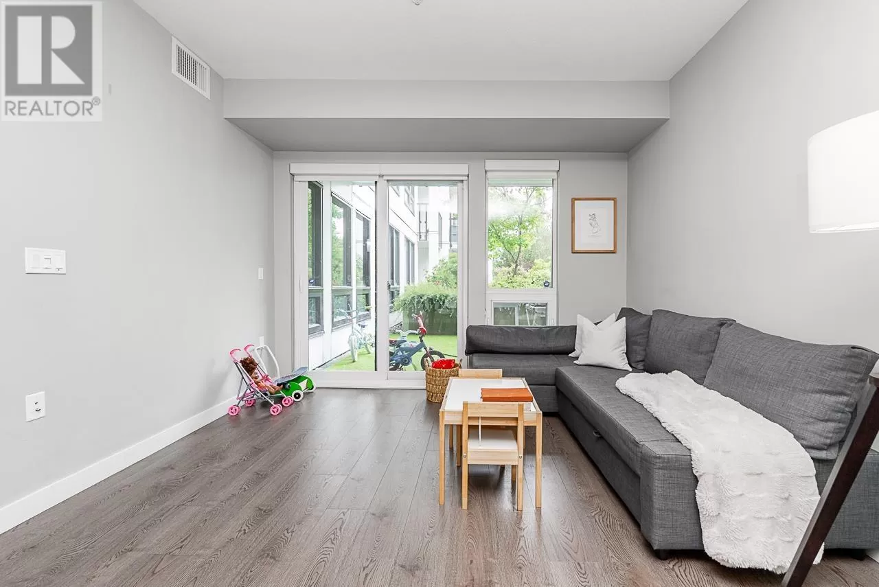 Omega by Concord Pacific Ground-floor. Luxury 2 Bed + Den with Custom California Closet Office. Thoughtfully designed with no wasted space, featuring 9´ ceilings, triple-pane windows, wide-plank laminate floors, a gourmet kitchen, Geothermal heating and cooling. Enjoy a spacious private patio overlooking the landscaped courtyard. Amenities include a fitness centre, lounge, concierge, garden, playground, and more. Steps to Walmart, restaurants, shopping, and parks. (id:27476)