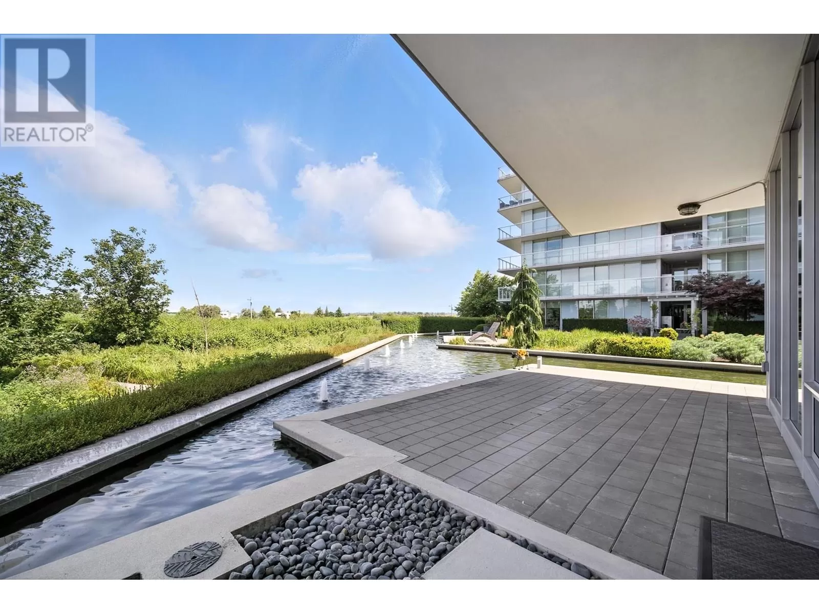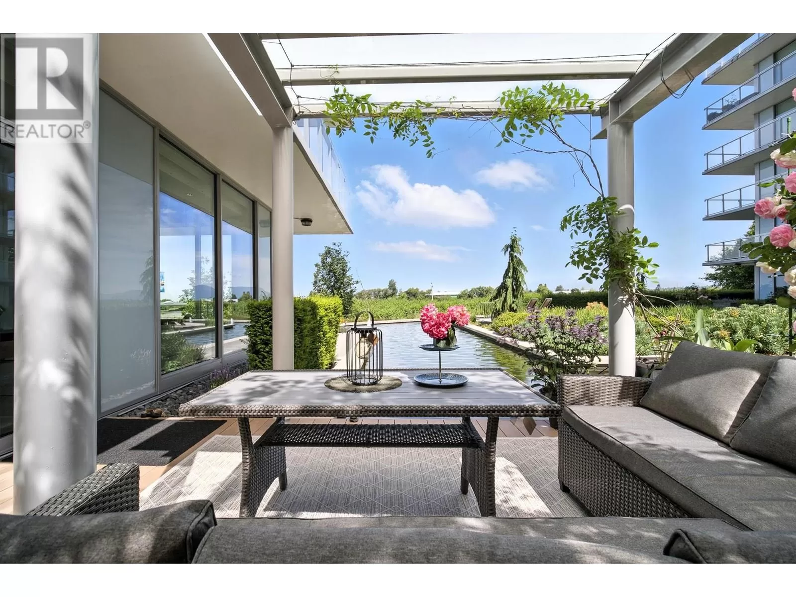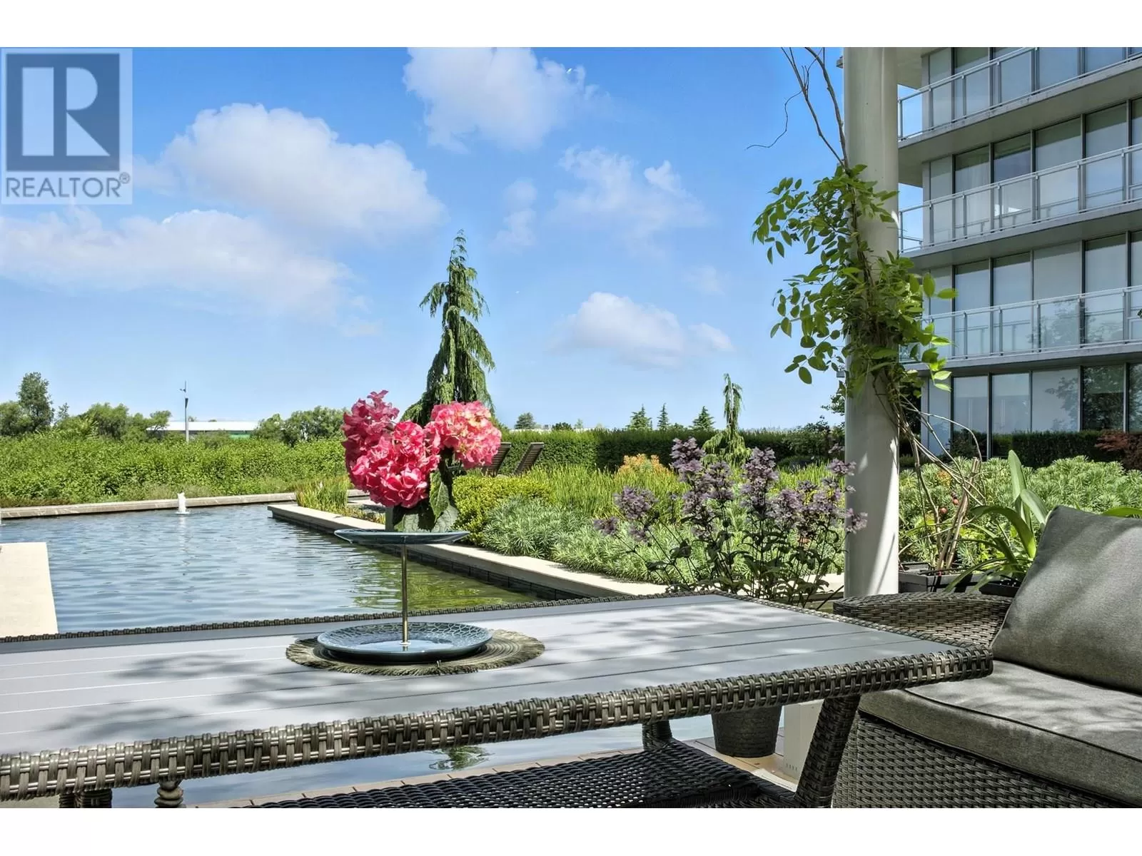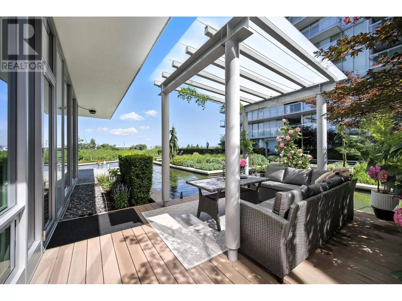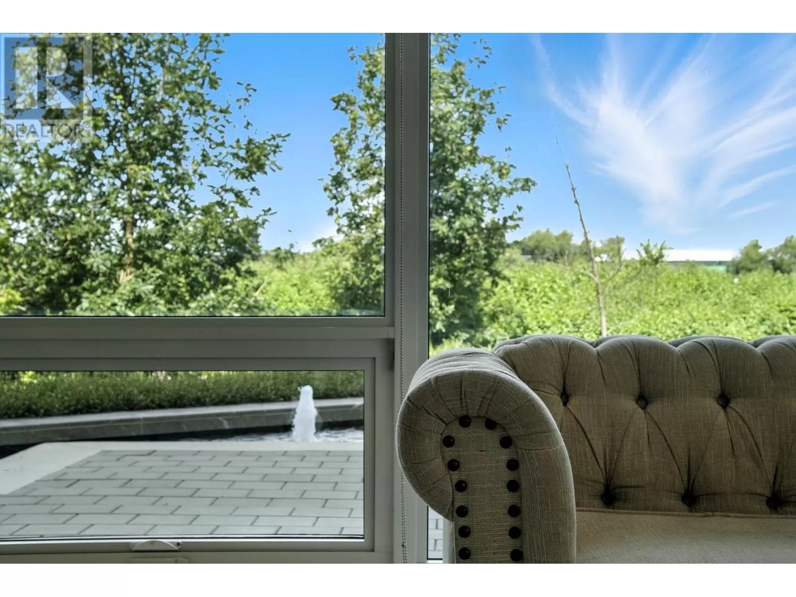 A timeless residence in the prestigious River Green community, renowned for its exceptional craftsmanship and luxury materials. This is the most desirable 3-bed corner unit, featuring a spacious den that comfortably fits a queen bed. One of the few homes offering a private Gazebo on the tranquil waterside patio, overlooking the serene inner garden. The expansive 677sf patio is perfect for entertaining and gardening. Inside, enjoy soaring 11-ft ceilings that amplify light and space. Interiors boast Italian cabinetry and Miele appliances. World-class amenities include a 24-hour concierge, indoor pool, club lounge, and a private cinema. Breathtaking views of the lush garden with fountain, Fraser River, mountains, and spectacular sunsets. (id:27476)