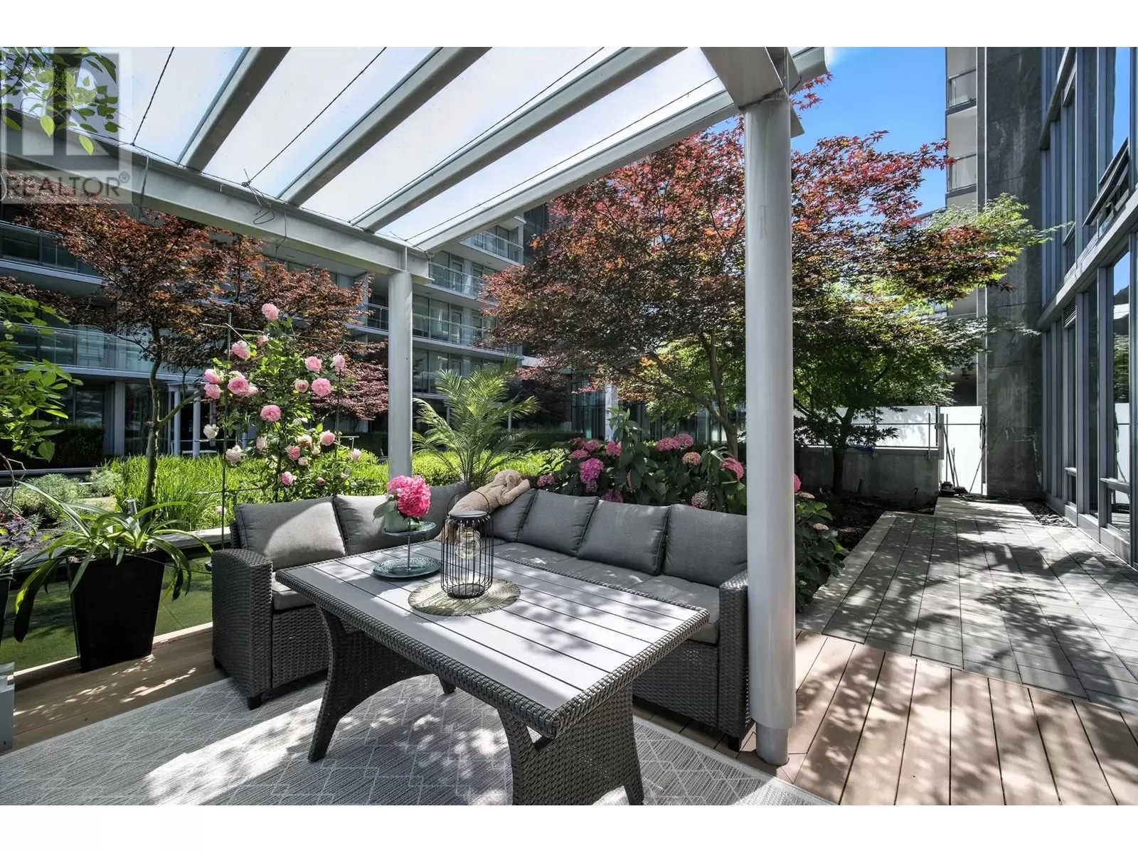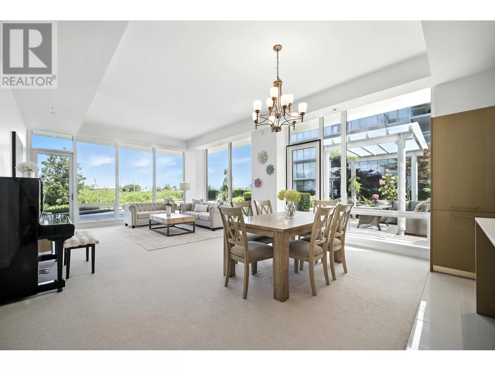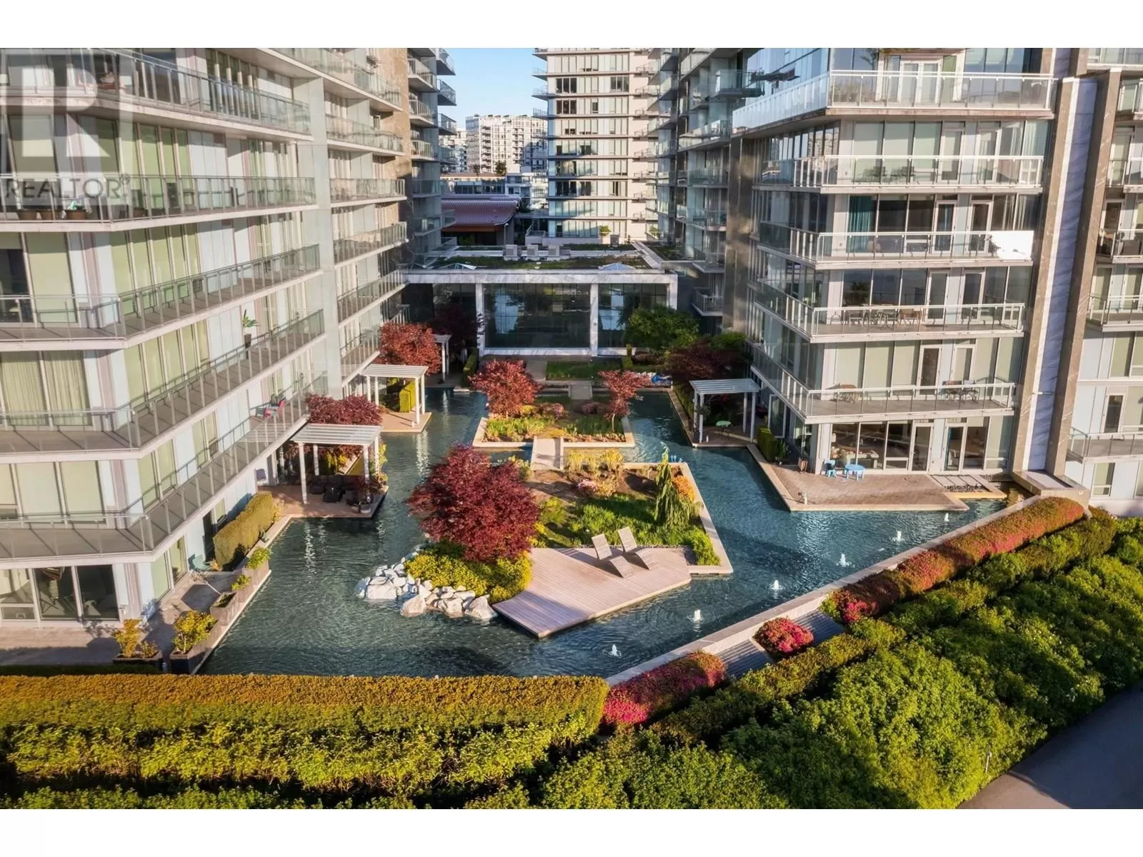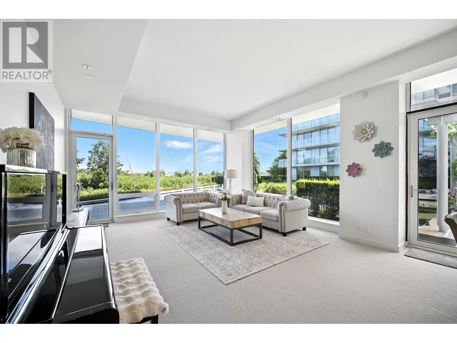 A timeless residence in the prestigious River Green community, renowned for its exceptional craftsmanship and luxury materials. This is the most desirable 3-bed corner unit, featuring a spacious den that comfortably fits a queen bed. One of the few homes offering a private Gazebo on the tranquil waterside patio, overlooking the serene inner garden. The expansive 677sf patio is perfect for entertaining and gardening. Inside, enjoy soaring 11-ft ceilings that amplify light and space. Interiors boast Italian cabinetry and Miele appliances. World-class amenities include a 24-hour concierge, indoor pool, club lounge, and a private cinema. Breathtaking views of the lush garden with fountain, Fraser River, mountains, and spectacular sunsets. (id:27476)