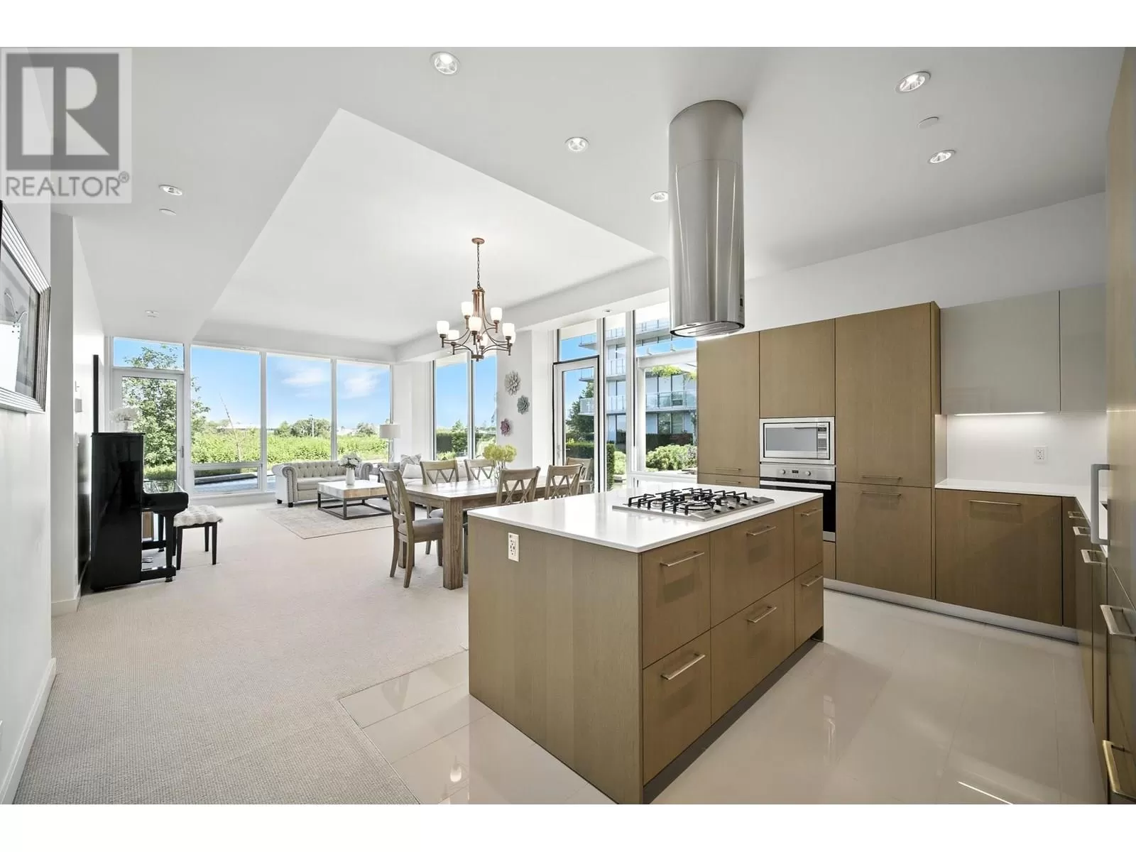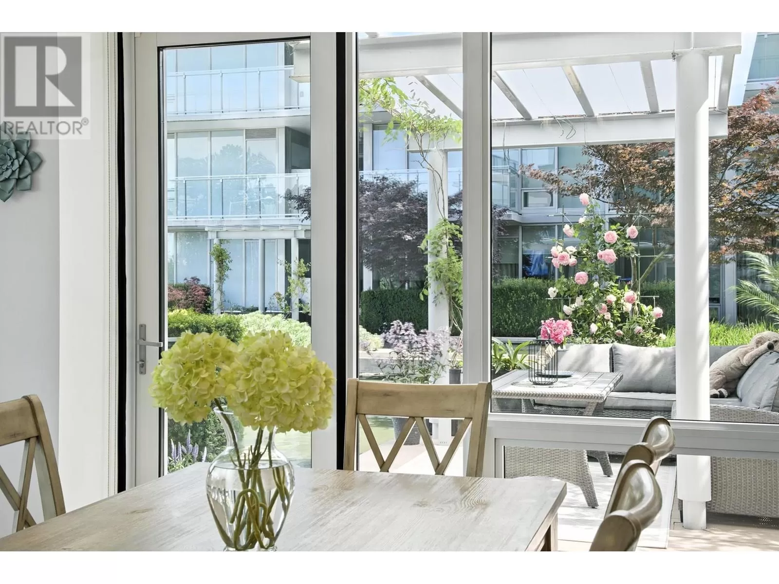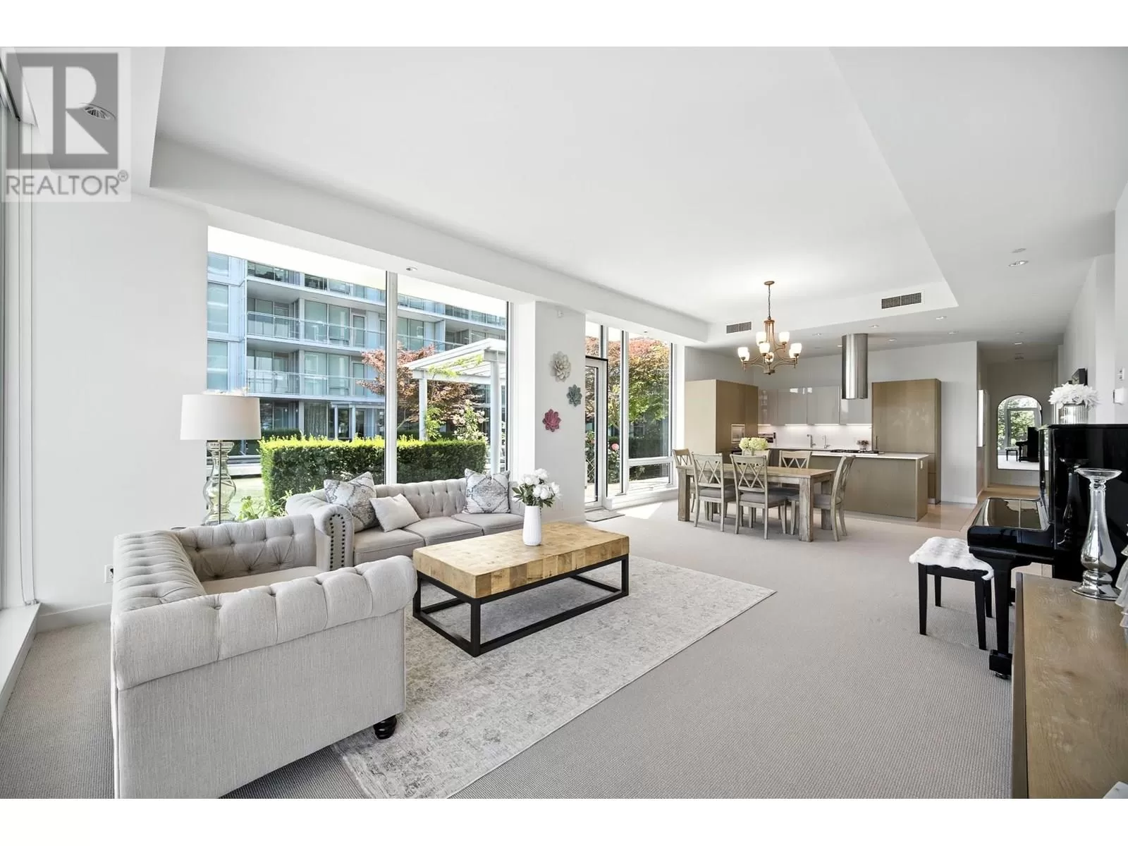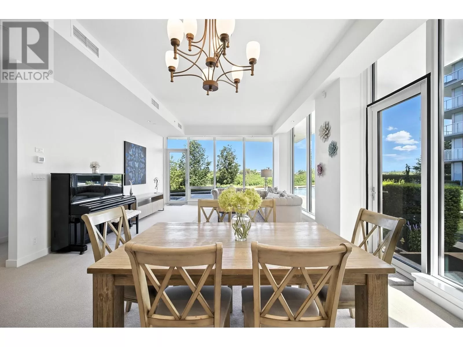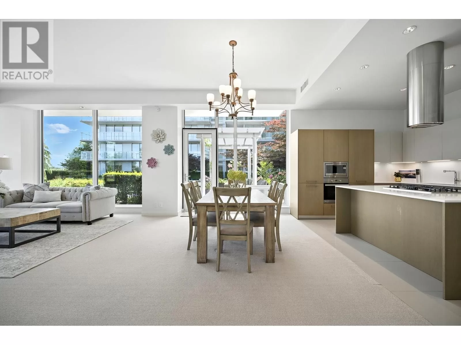 A timeless residence in the prestigious River Green community, renowned for its exceptional craftsmanship and luxury materials. This is the most desirable 3-bed corner unit, featuring a spacious den that comfortably fits a queen bed. One of the few homes offering a private Gazebo on the tranquil waterside patio, overlooking the serene inner garden. The expansive 677sf patio is perfect for entertaining and gardening. Inside, enjoy soaring 11-ft ceilings that amplify light and space. Interiors boast Italian cabinetry and Miele appliances. World-class amenities include a 24-hour concierge, indoor pool, club lounge, and a private cinema. Breathtaking views of the lush garden with fountain, Fraser River, mountains, and spectacular sunsets. (id:27476)