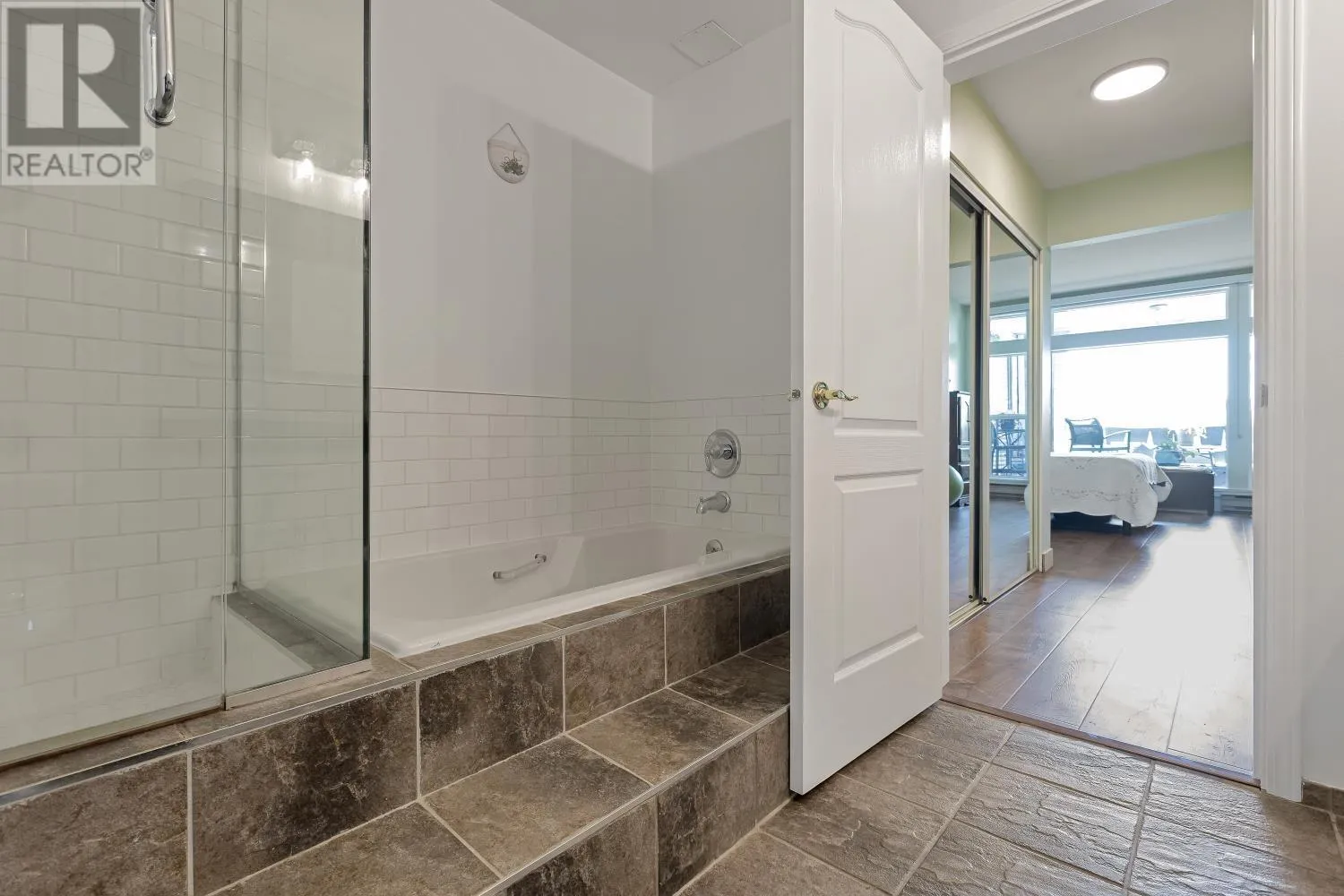 Beautifully Updated 2-Bedroom, 2-Bathroom Home in Westwater Views!This spacious main-floor residence has been tastefully renovated and is move-in ready. The stunning new kitchen features sleek white flat-panel cabinetry, under-cabinet lighting, quartz countertops, a breakfast bar, and stainless steel appliances-all complemented by new tile flooring. The open-concept living and dining area is perfect for entertaining, highlighted by a cozy gas fireplace and large picture windows with serene views of the park. The primary bedroom offers dual walk-through closets leading to a luxurious ensuite, complete with an updated vanity, glass rain shower, and soaker tub. New hardwood flooring throughout, a huge covered walk-out patio, and two secure underground parking stalls. Ideally located in a highly desirable area-don´t miss this opportunity. Call today to schedule your private viewing! (id:27476)