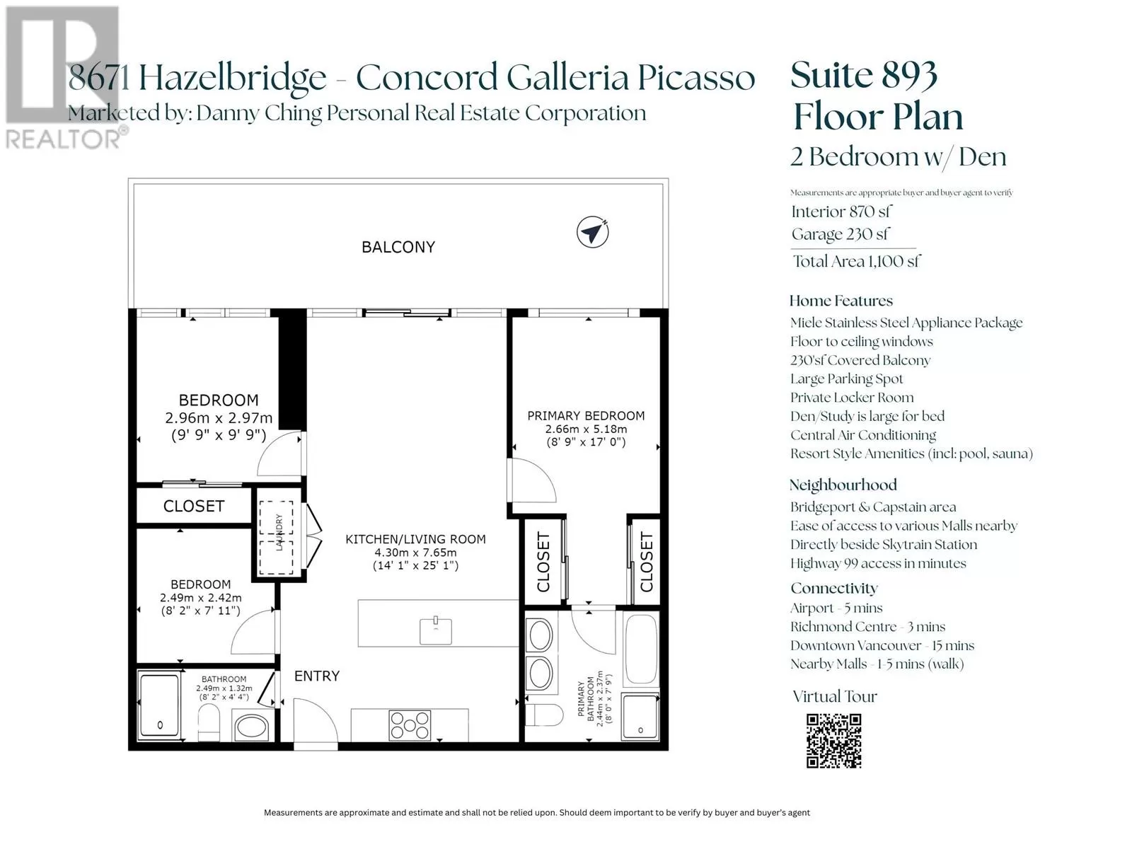 Premium West Coast living at its best at Galleria Picasso by renowned builder Concord Pacific. Indoor fully air conditioned, Outdoor enjoys a 230sqf covered balcony. River & Mountain view. Top notch European kitchen Miele Stainless Steel appliances. Spa quality baths & a den/guest room fits a bed! Picasso is not under the flight path and this home is situated at the far end quiet corner, best unit of tower. Unmatched location walking minutes to Skytrain, 5 nearby malls, restaurants and park. Luxurious concierge lobby crystal lights marble floor. Resort amenity w/pool hot tub saunas hot-stone entertainment lounge theatre room etc. Upgraded sized EV-parking & rare private enclosed locker room with electrical outlet, no wire mesh cage! Full 2-5-10 home owner warranty. GST Paid. MOVE-IN READY (id:27476)