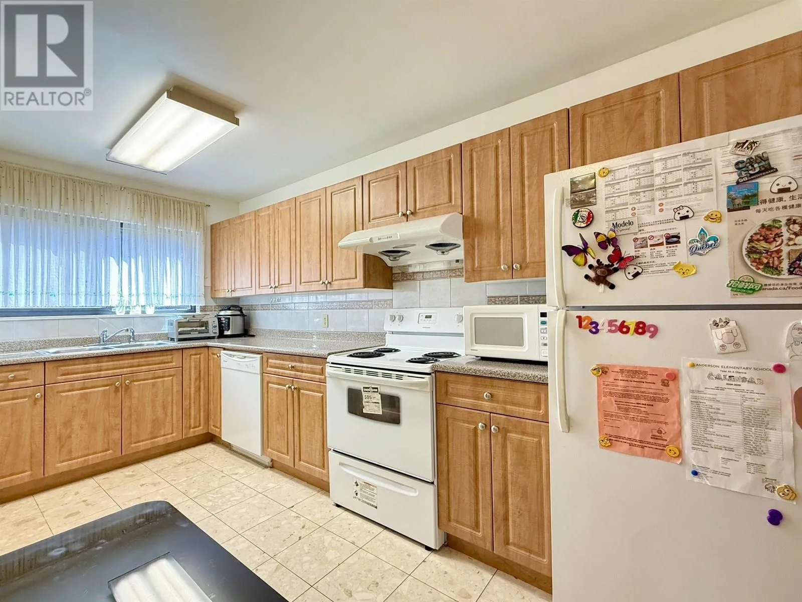 Richmond Centre Location! Updated 3-bedroom end-unit townhouse in a quiet, family-friendly neighbourhood. Bright living room with cozy fireplace, dining area opens to private fenced backyard-directly connected to Cook Elementary´s playground. Upstairs has 3 spacious bedrooms with beautiful North Shore Mountain views. Updates: appliances, hot water tank, bathroom vanity, painting, and laminate flooring. Roof replaced in 2011. Walk to Richmond Centre, SkyTrain, bus, schools, parks, and more. School catchments: Cook Elementary & MacNeill Secondary. (id:27476)