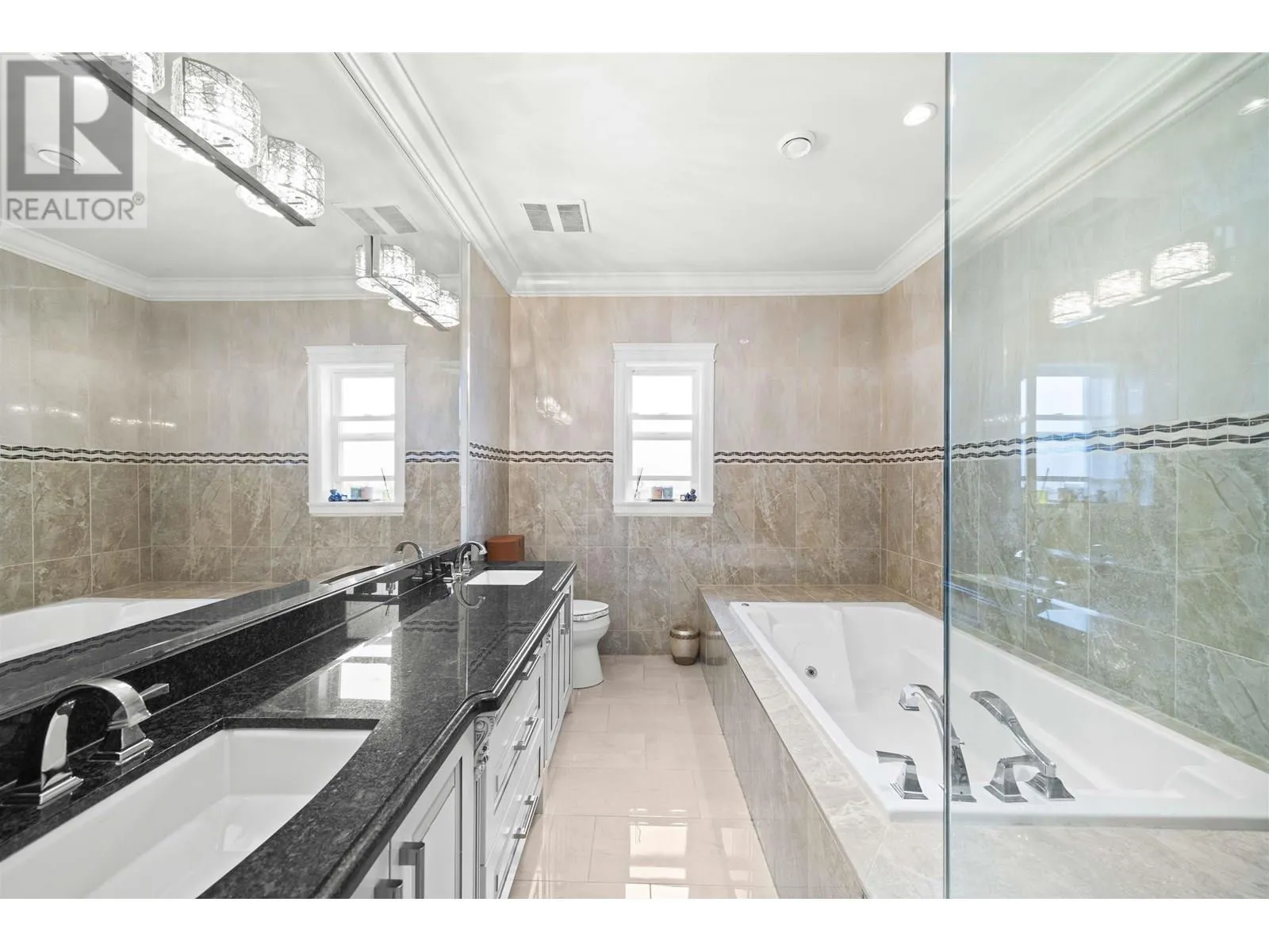 Luxurious custom-built home located in one of Richmond´s most desirable & quiet neighbourhoods-Woodwards! Sitting on a 7,200 sqft lot, features 5 ensuite bed, 6 baths plus a media room or private office. Main-floor media room can convert into a private rental suite-ideal mortgage helper with separate entrance. It features double-height ceilings, grand marble foyer, crown moulding, crystal chandeliers, hardwood floors, radiant heating, HRV, & A/C throughout. Open-concept layout with gourmet and wok kitchens, equipped with premium Miele appliances. Enjoy a fenced private garden, 3-car garage, and powered gate. 10-min walk to top-ranked public & private schools including Errington Elementary ,Steveston-London Secondary & Richmond Christian School. Only a 5-min drive to Richmond Centre. (id:27476)
