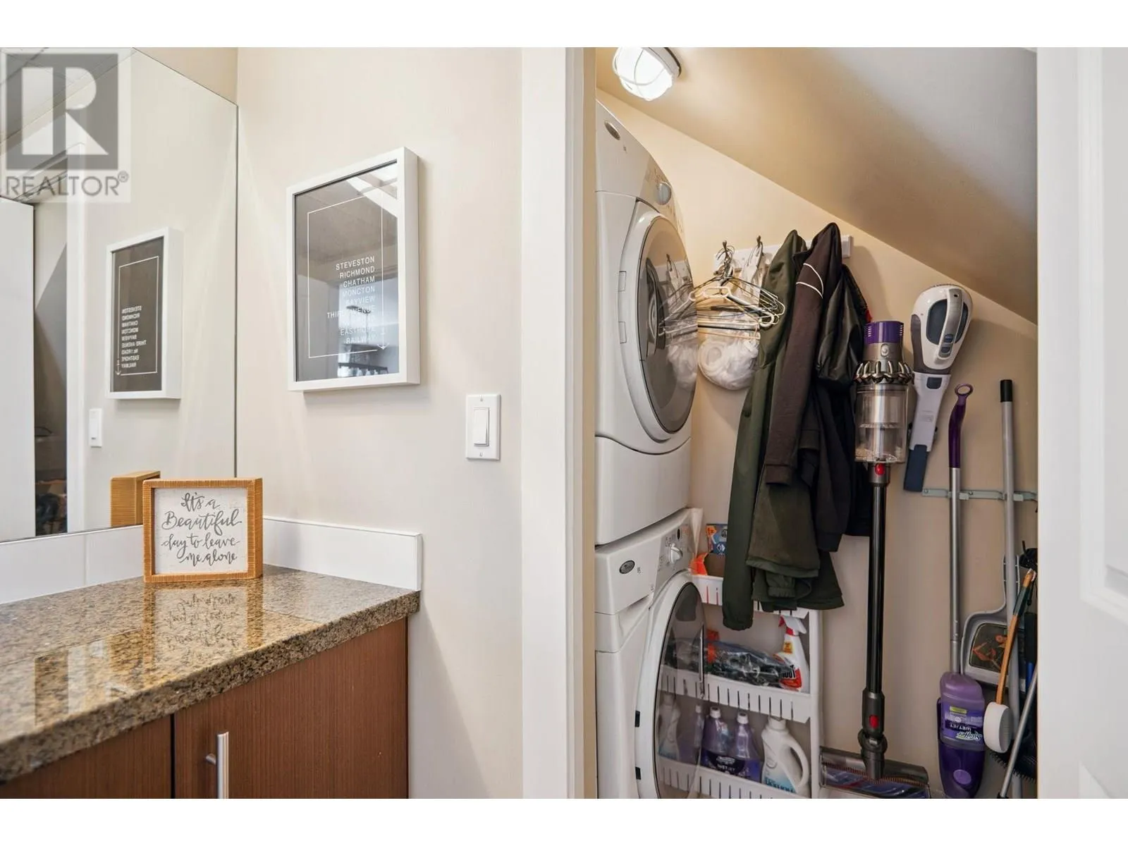 London Station II. A spacious & open 2-storey Penthouse located in the highly desirable Steveston area of Richmond. Built with quality finishes including polished granite stone countertops throughout, bamboo floors, wine fridge, gas fireplace & stainless steel appliances. 9' ceiling on main with 105sf large balcony plus incredible 406sf rooftop deck with panoramic views of river, mountains & farmland. An entertainer's delight! This home is steps away from Steveston dyke trail, marina, restaurants, groceries, shopping & transit. . Enjoy geothermal forced air conditioning and heating throughout the home. 2 side by side parking spots & 1 one storage locker is included. Make this your home today. A definite must see! (id:27476)