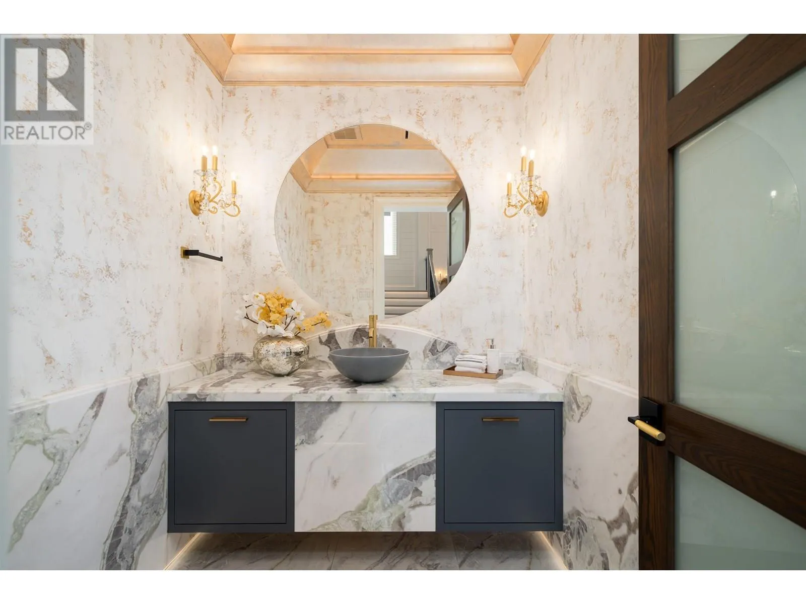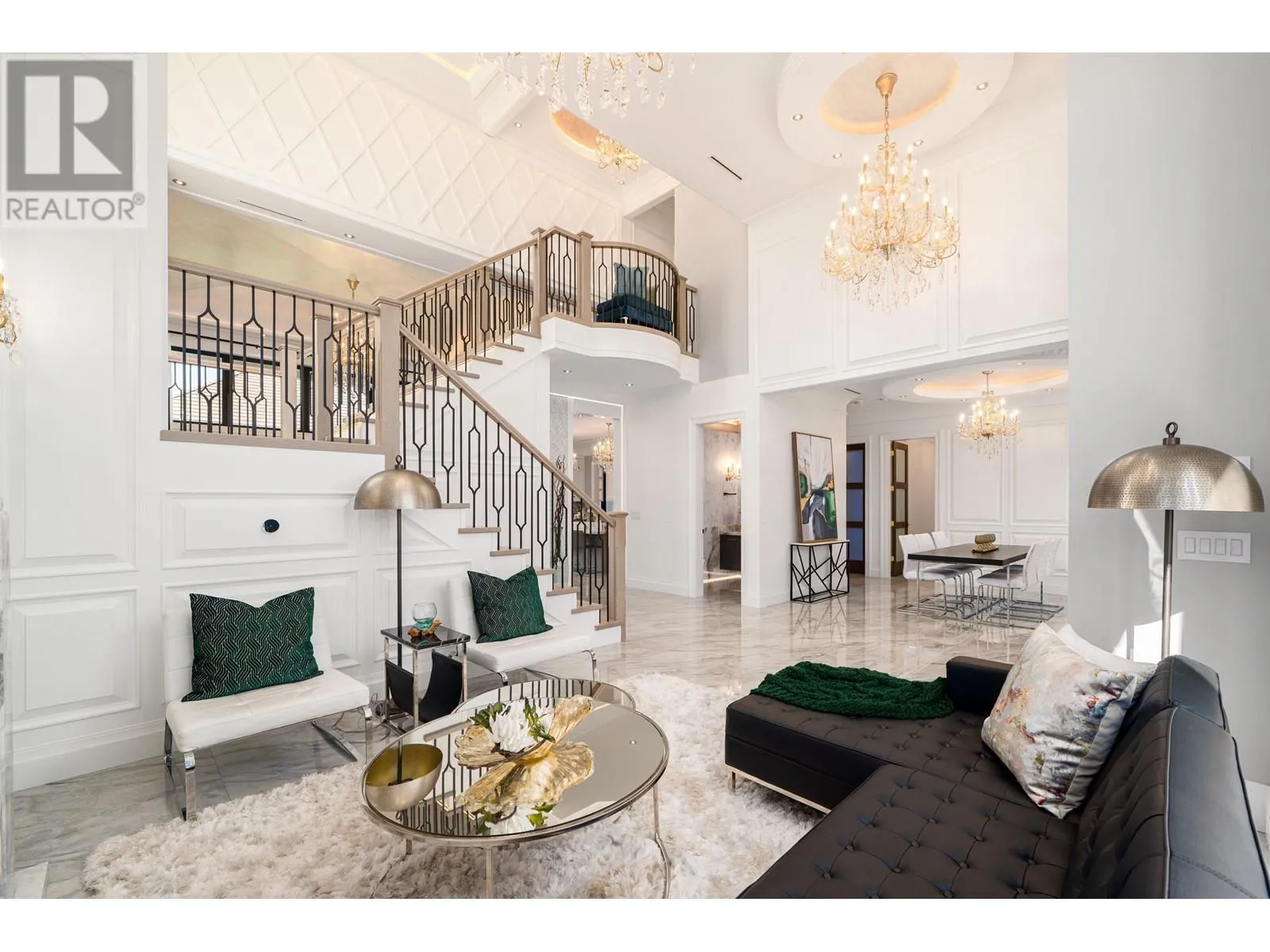 Elegant and luxurious custom home in prestigious Granville area! North-South facing with a grand foyer featuring a stunning circular ceiling design and artistic wall accents. Italian marble flooring throughout, adorned with dazzling chandeliers. Spacious family room boasts a soaring vaulted ceiling, custom marble wall panel, and a warm fireplace. Gourmet kitchen with European marble countertops, top-tier Miele appliances, and premium cabinetry. Two master bedrooms, one with an expansive sundeck; all four upstairs bedrooms include walk-in closets. Legal suite below. Smart home system with motorized curtains, A/C, HRV, Hikvision intercom. Enjoy a fully equipped media room with wet bar, plus a private sauna. A true masterpiece for the discerning buyer! (id:27476)