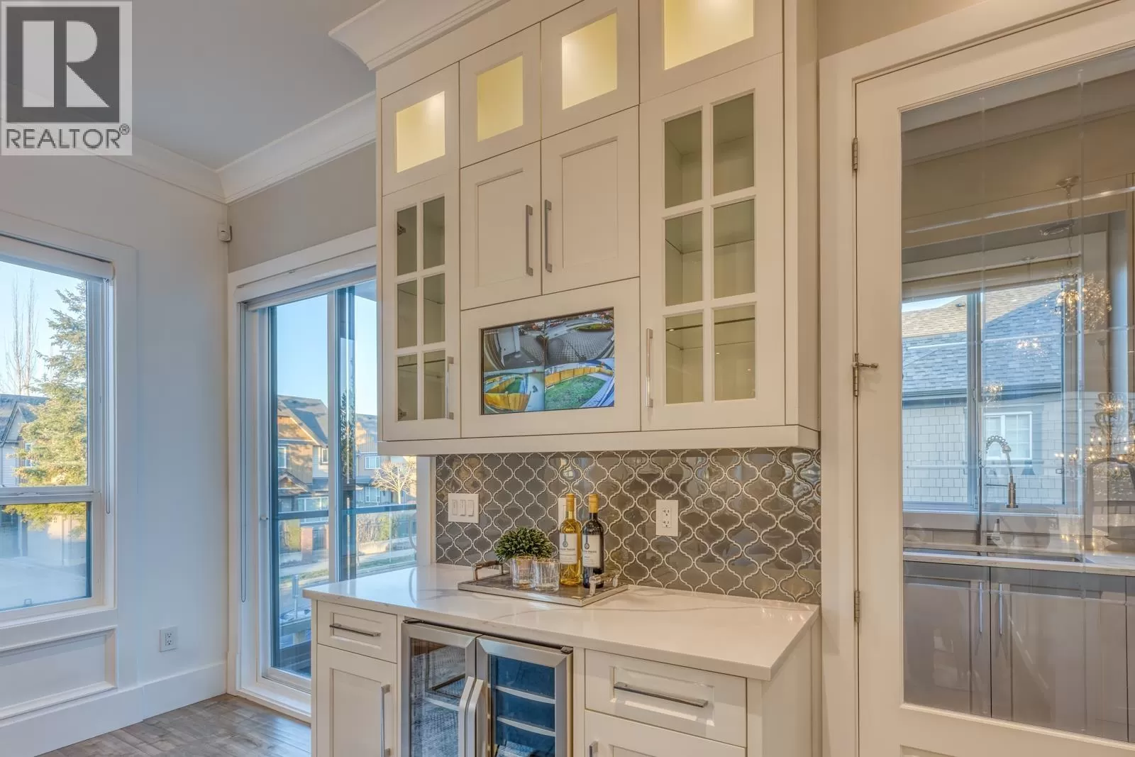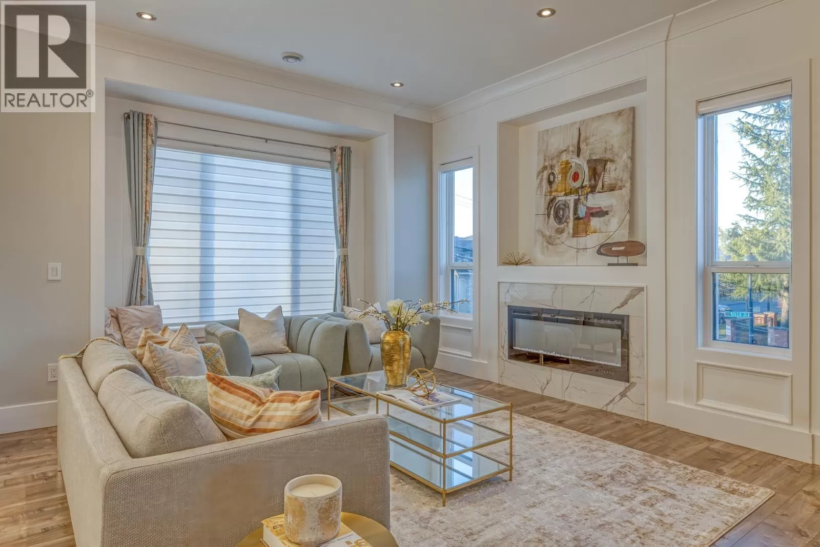 PRICE TO SELL! Gorgeous Like New home in a desirable Central location. Boasts 3516 SF of living space on a bright corner 5933 SF lot. Upper floor has 4 bdrms 3.5 baths. 10ft ceiling, Open floor plan with Spacious living, dining, family room and 2 fireplaces. Gourmet kitchen w/Huge island, High End Appliances and Wok kitchen. Two decks for outdoor living. Primary bedroom has own walk-in closet, Spa-inspired ensuite with steam shower. Lower floor has a self contained 2 bedroom Legal suite. Plus 2 bedroom Nanny suite. Both has own laundry/Separate entrance. Radiant Heating, HRV, Airconditioning, Crown Moulding, superior finishing and materials are used throughout the house. Located within minutes to all levels of schools, parks, shopping, transit & City Centre. (id:27476)