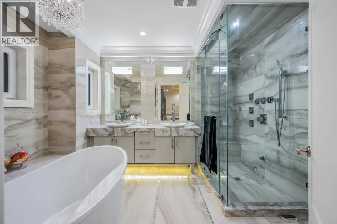 Truly Legendary of Top Luxury!The Best of all true masterpieces! Stunning custom home built by High Reputation Luxury house builder, Situated with 3976 sqft house on 7340 sqft lot well known beautiful Broadmoor SUNNYMEDE Area.Centre of Richmond. Favorable North-facing back garden with fantastic landscaping, Spacious living spaces with 5 en-suited bedrooms and 5.5 bathrooms. It offers functional media room, gourmet kitchen with Top High-end Appliances Gaggenau, Fusion and avalanche Italy real Marbel, Versace tile, Nice Cabinetry, Swarovski crystal light. 3-car Garage, A/C,smart security system, HRV, 2-5-10 Warranty.Walking distance to schools, shopping center, community center. School: Ferris Ele, Richmond Sec. A pleasure to Show! (id:27476)