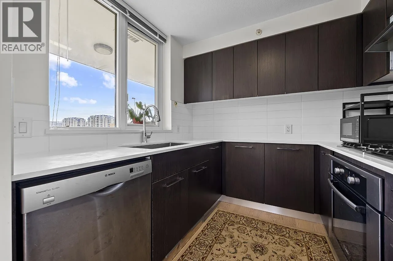 Quintet Tower B. Concrete highrise, corner unit facing south and east with city view. 2 bedrooms, 905sf, 2 baths, two balconies, one parking, air-conditioning, functional layout. Spacious gourmet kitchen with window, stainless steel appliances, engineered hardwood flooring in living and dining room. Great facilities include exercise centre, party room, in-door pool. Brighouse Elementary and Richmond Secondary School catchment. Walking distance to Canada Line skytrain station, bus loop, supermarket, restaurants, bank, and park. (id:27476)