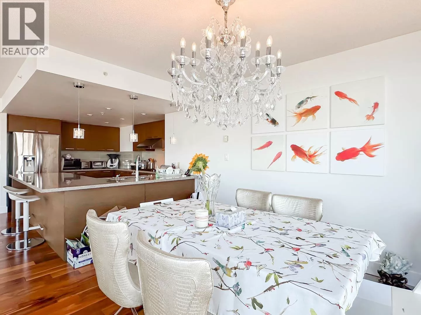 Acqua - Experience luxury living in this two-level Penthouse at the iconic Bosa-built Landmark building in Richmond. Spanning 2,493 sq ft, this rare gem offers breathtaking 180° panoramic views of the water and North Shore mountains, facing North, East, and West. Featuring 3 spacious bedrooms-all with ensuite baths-a large den, 3.5 bathrooms, a family room, and two-sided fireplace. Enjoy over 500 square ft of private patio space. First-class amenities include pool, hot tub, steam room, gym, clubhouse, media room, and concierge. Comes with 2 side-by-side parking stalls and a storage locker. Prime location: steps to Richmond Centre, Canada Line, Price Smart, and Kwantlen University. It is a one of a kind layout that is hard to see elsewhere. (id:27476)